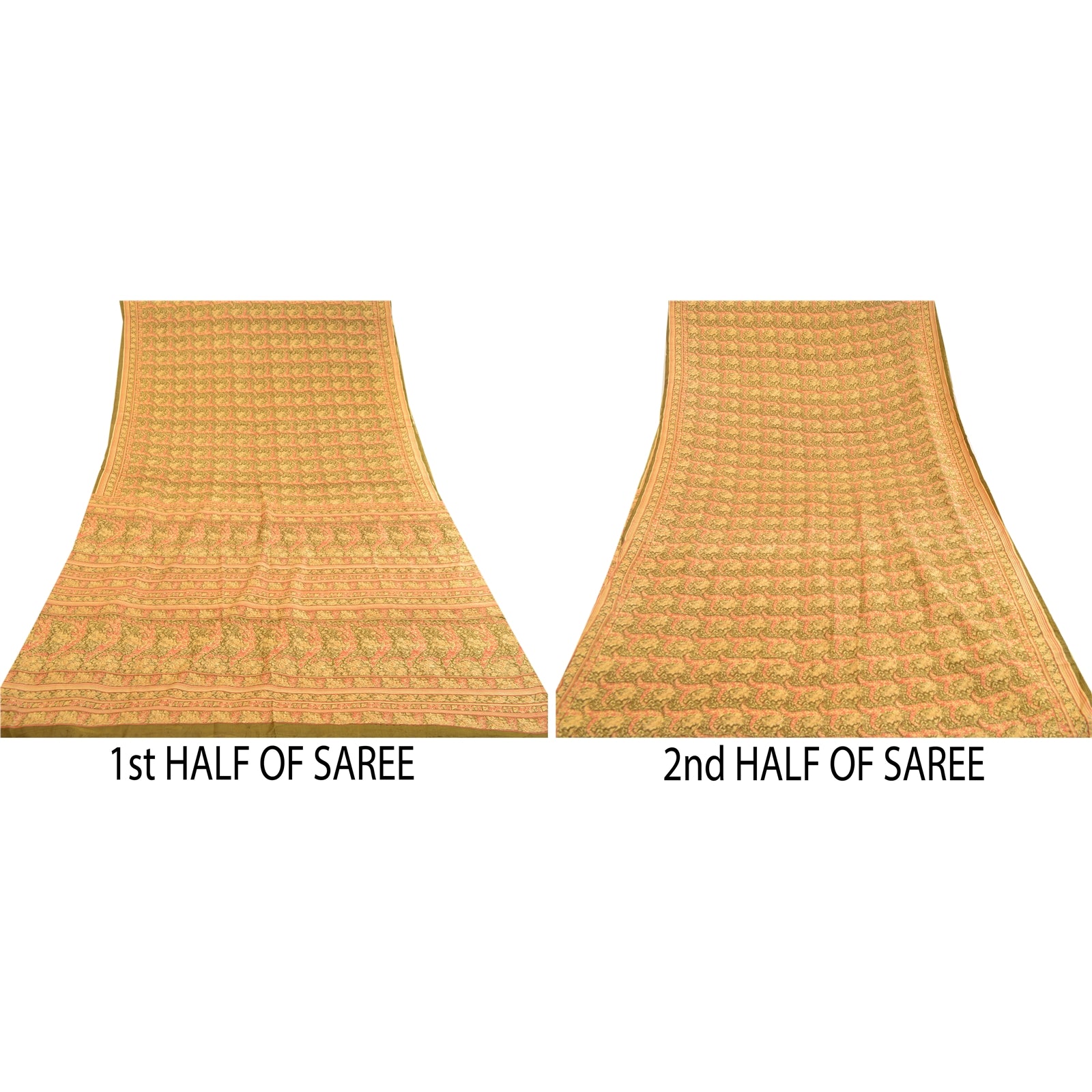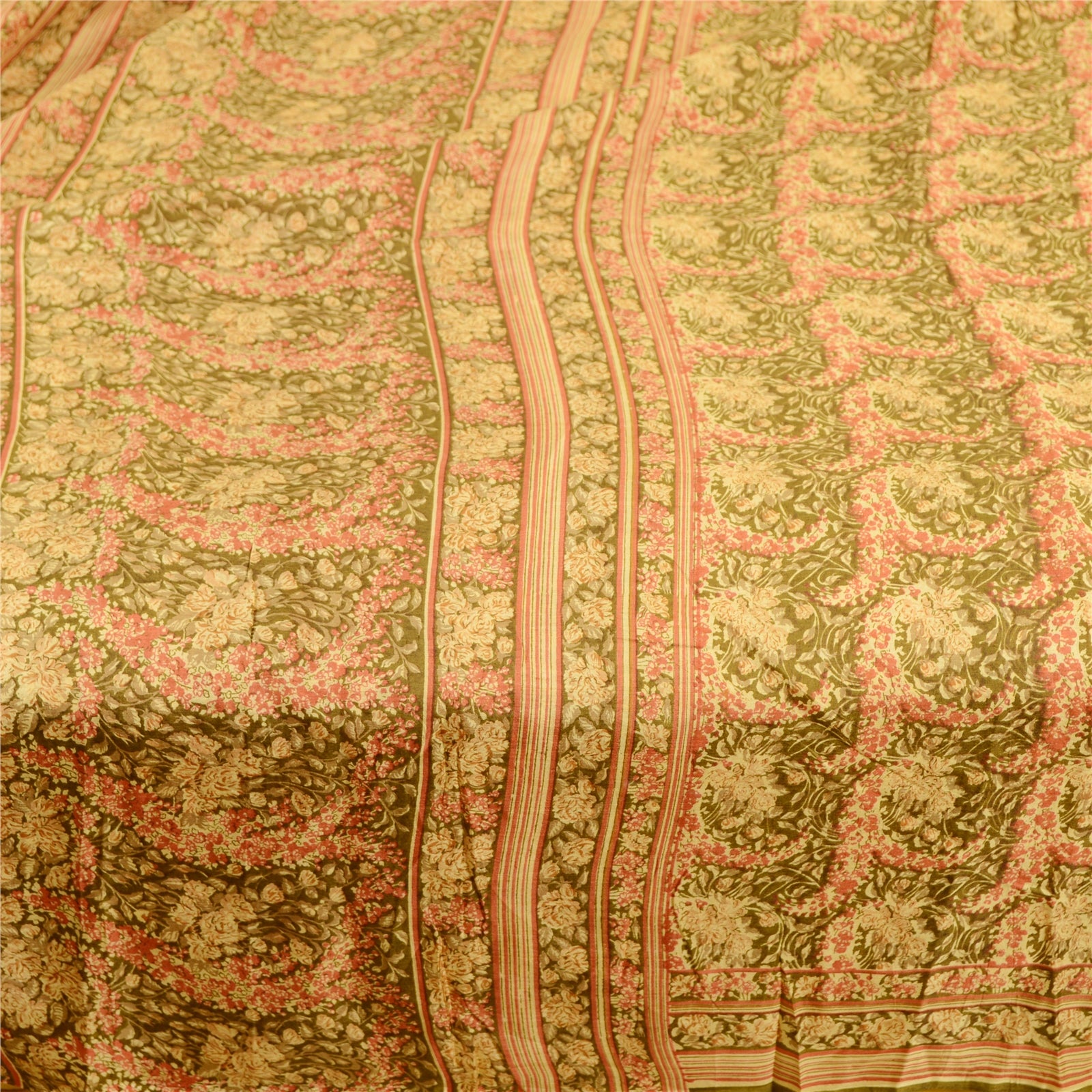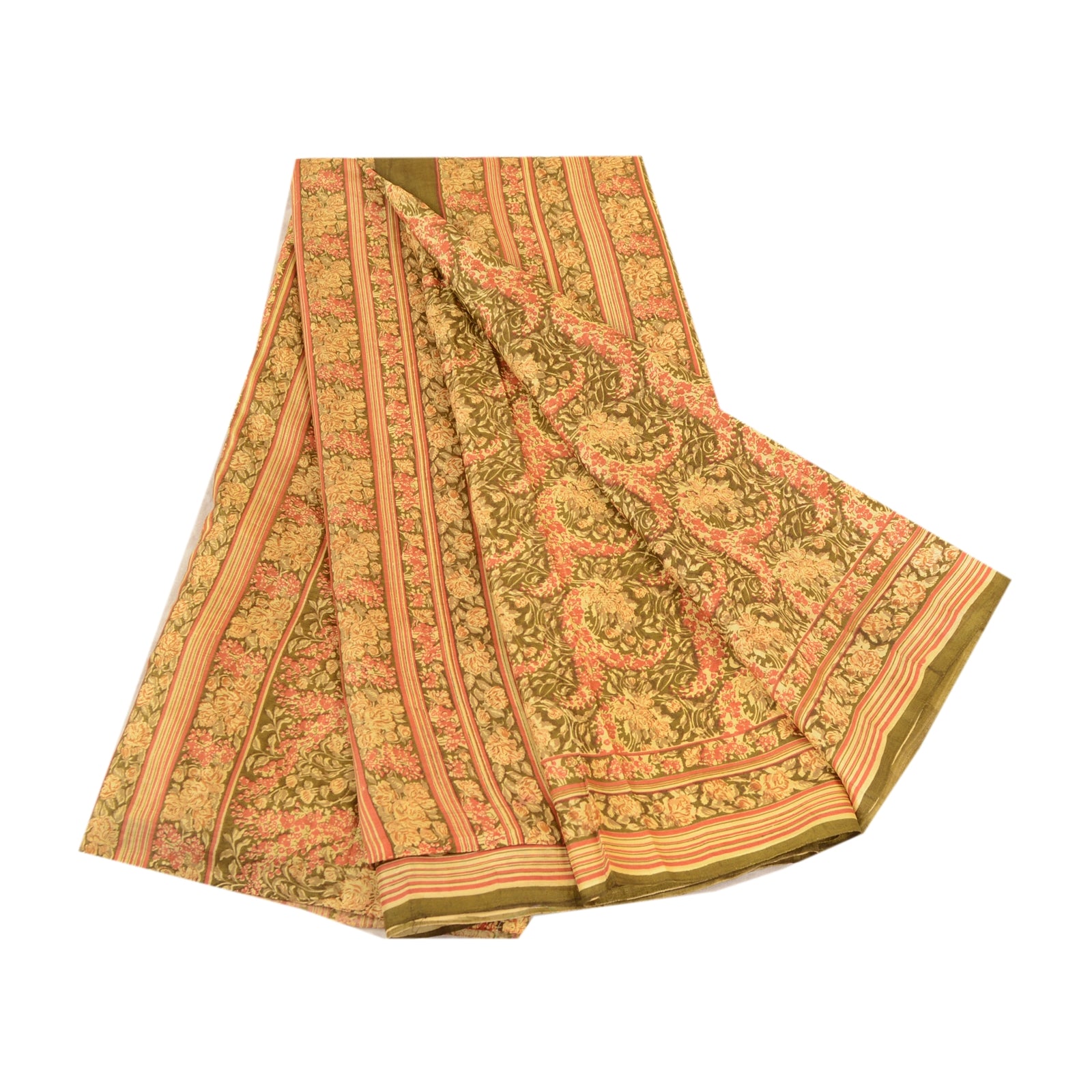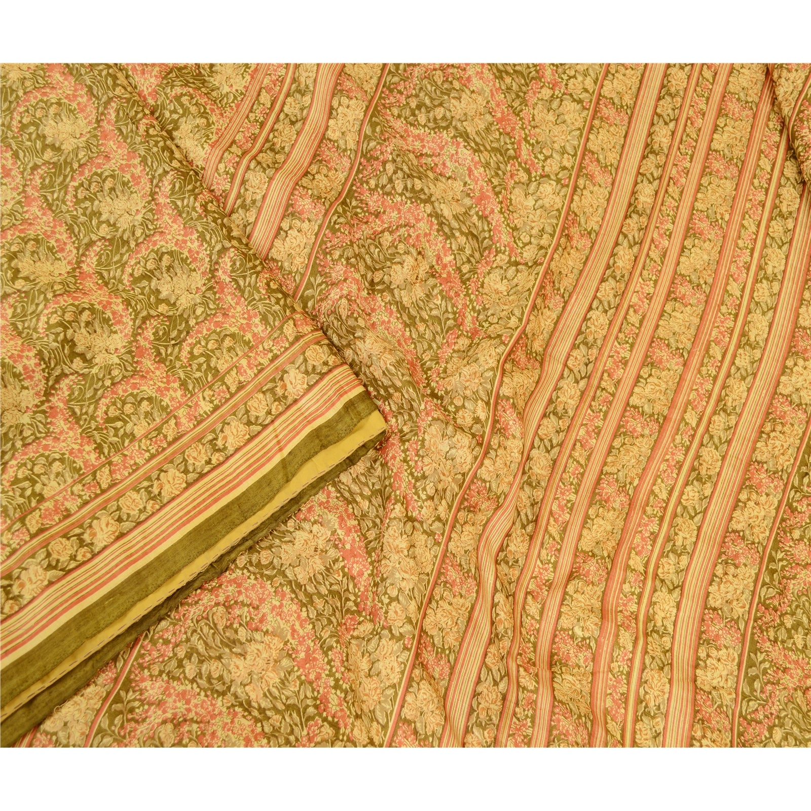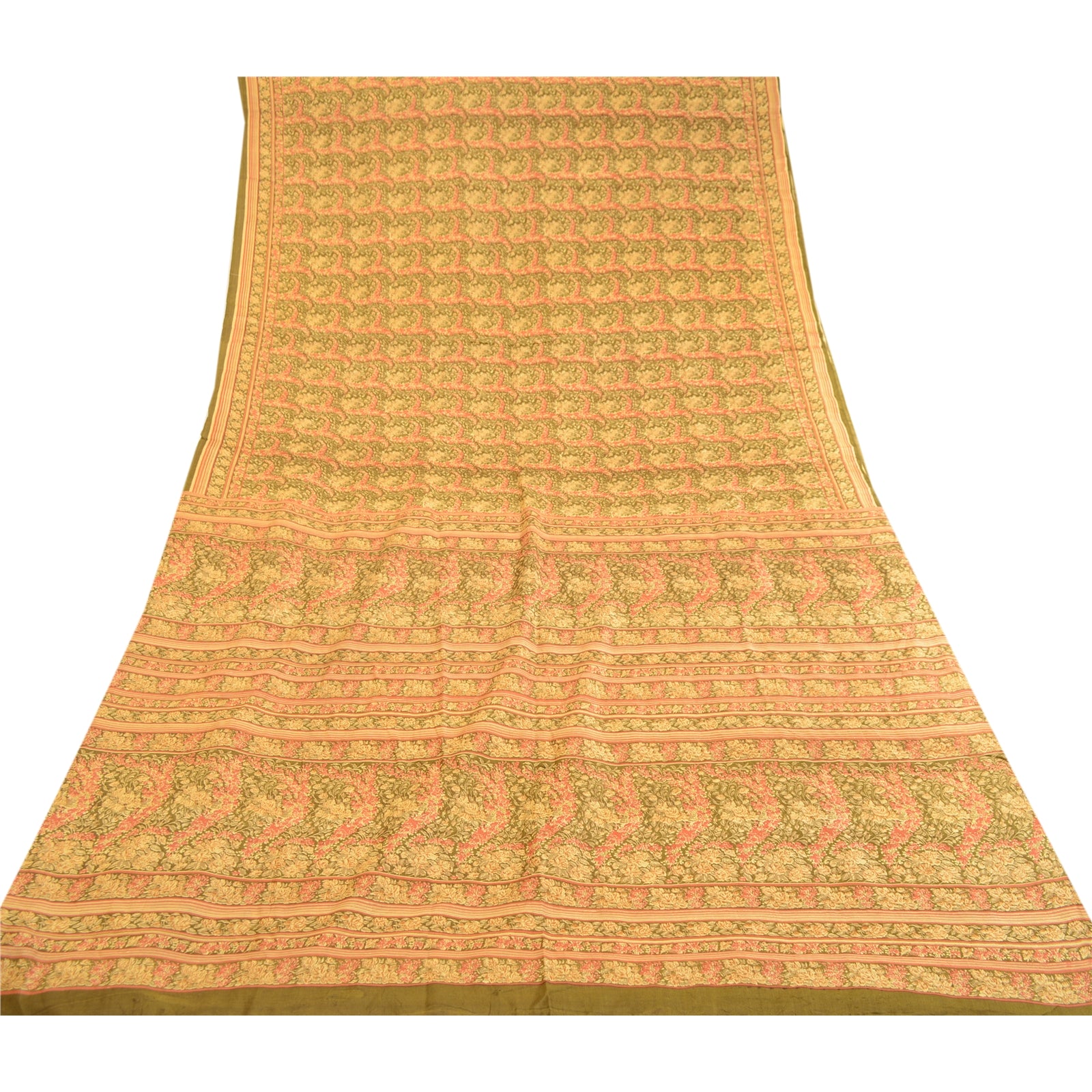 Sanskriti Vintage Grønne Trykte Sarier Ren Silke Sari Blødt Blomsterhåndværk Bæredygtigt Stoff