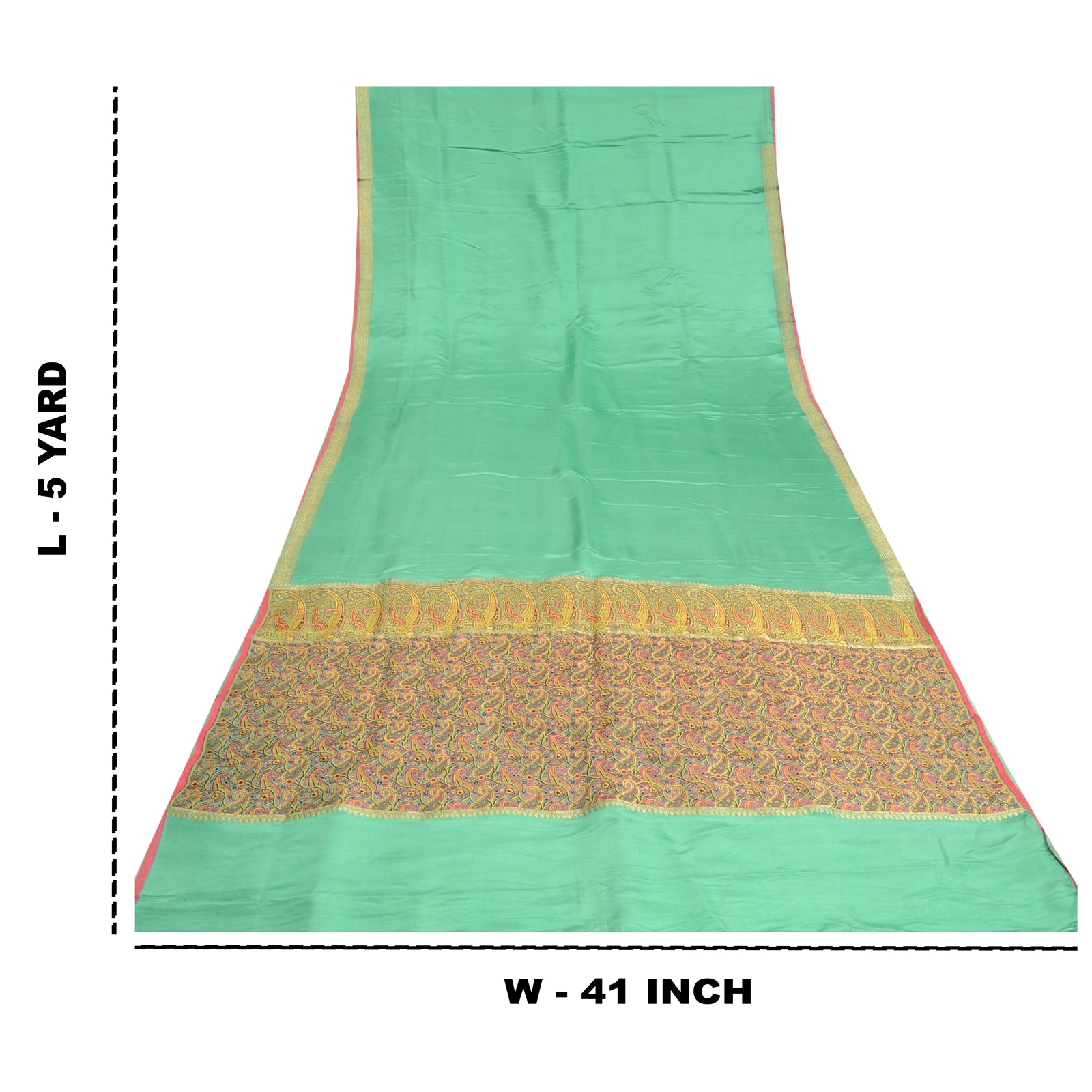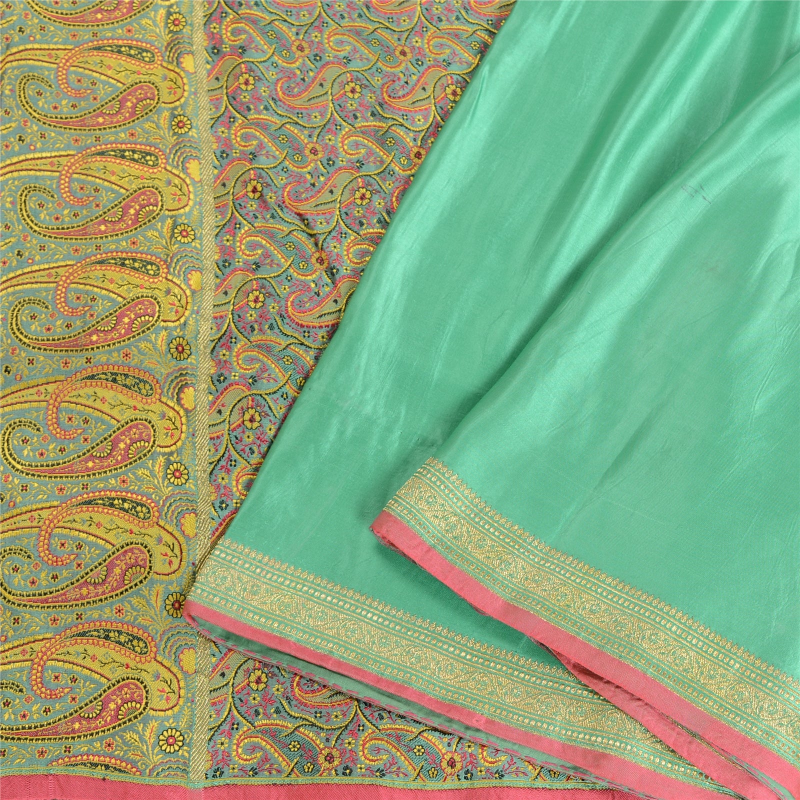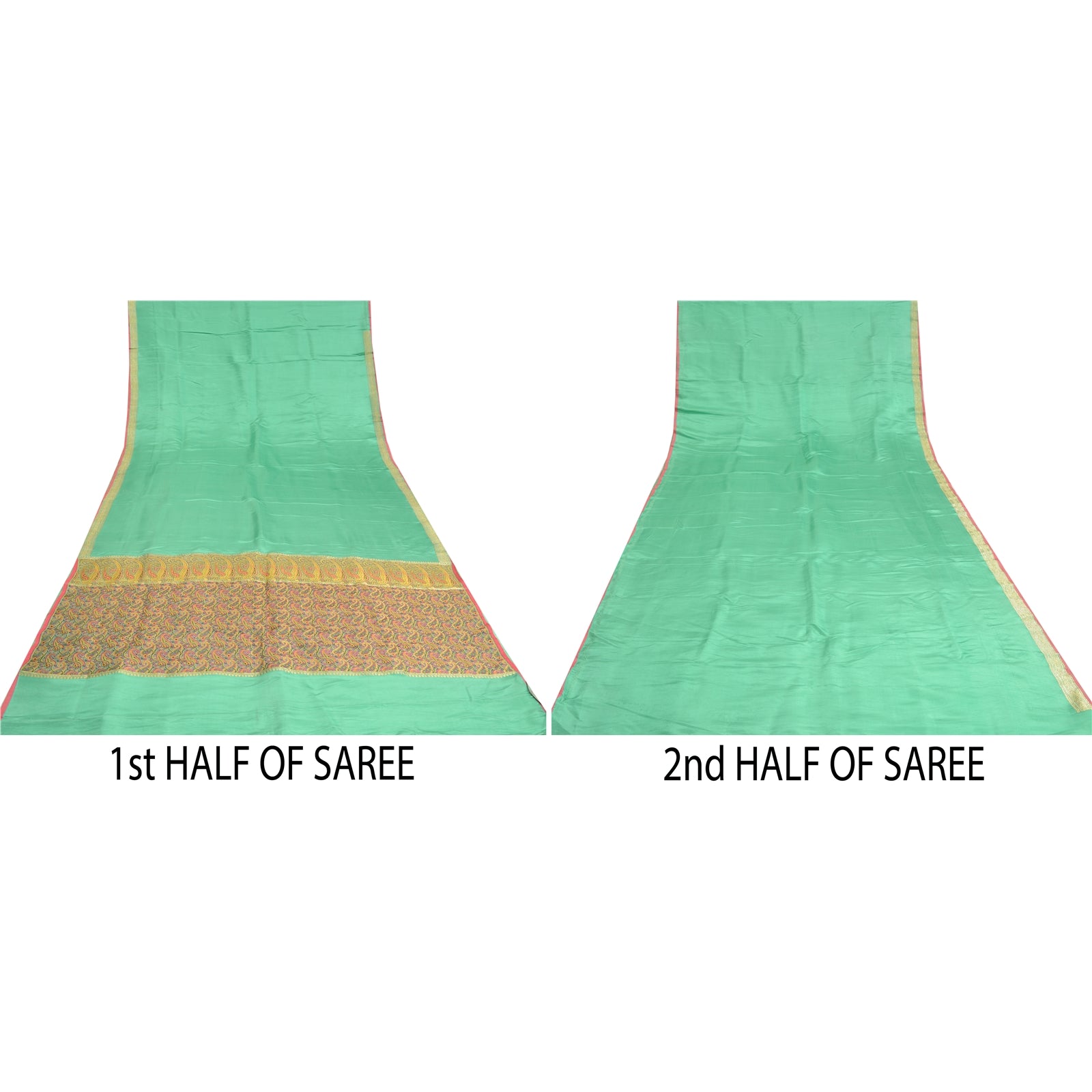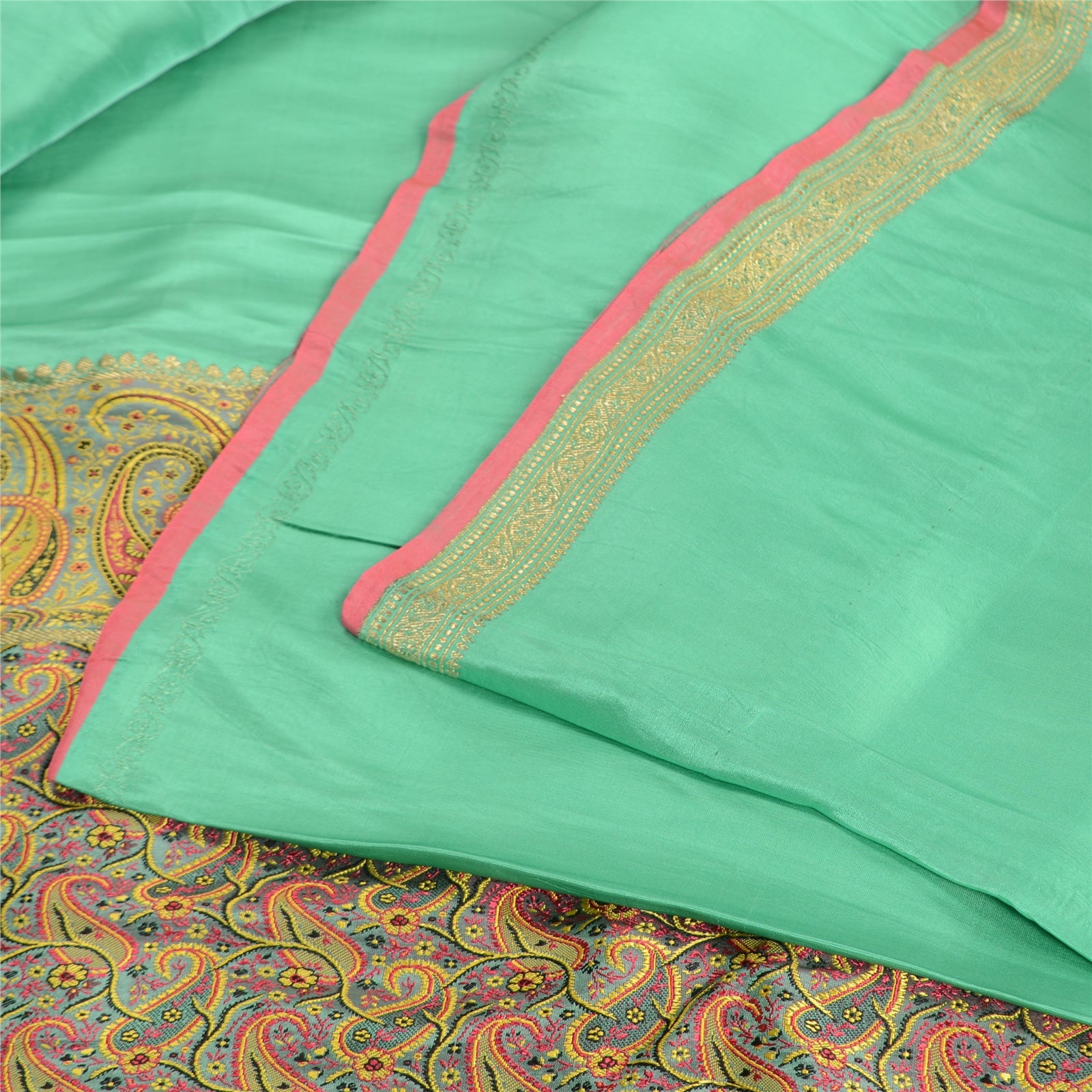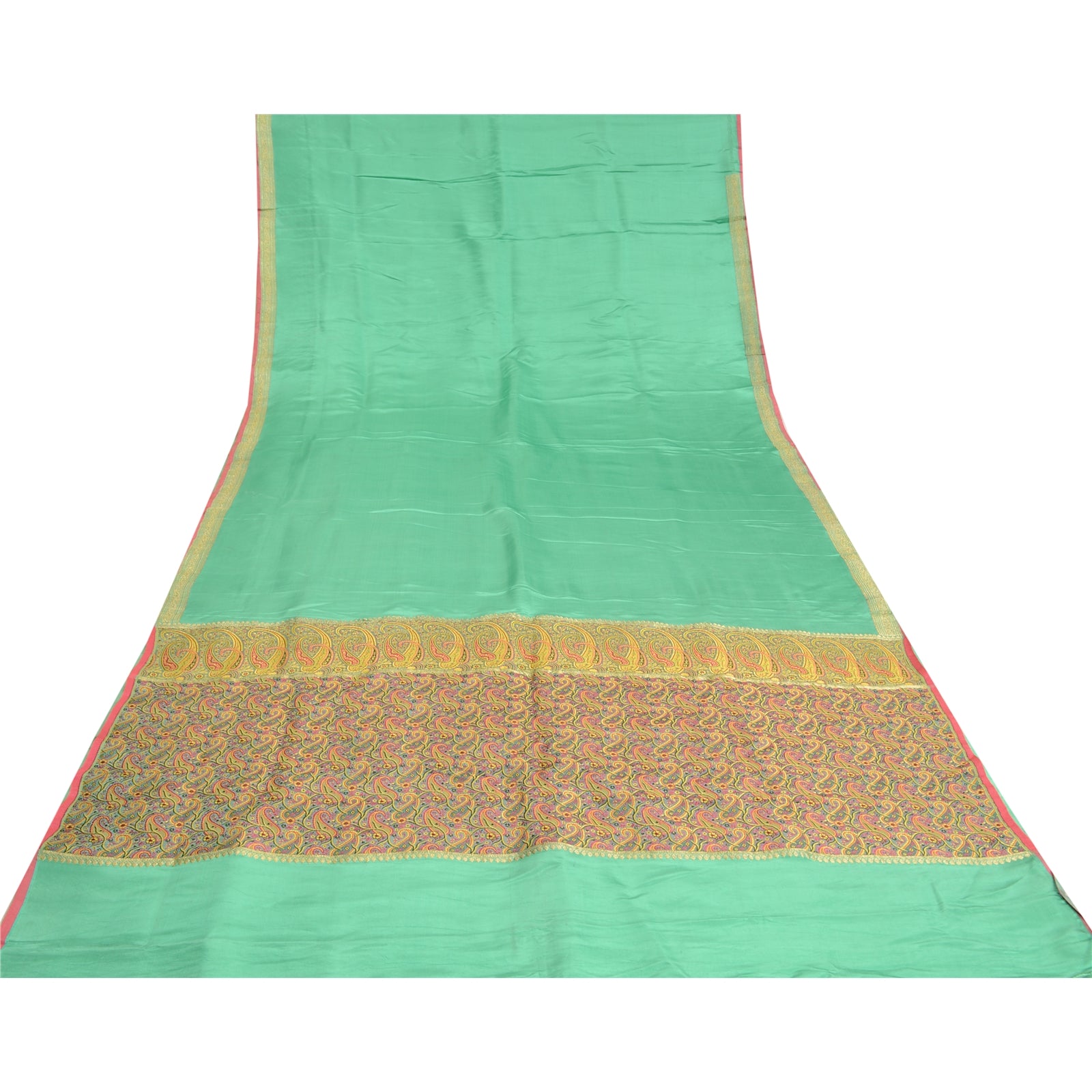 Sanskriti Vintage Grøn Saree Ren satinvævet Banarasi Tanchoi Sari/bæredygtigt stof