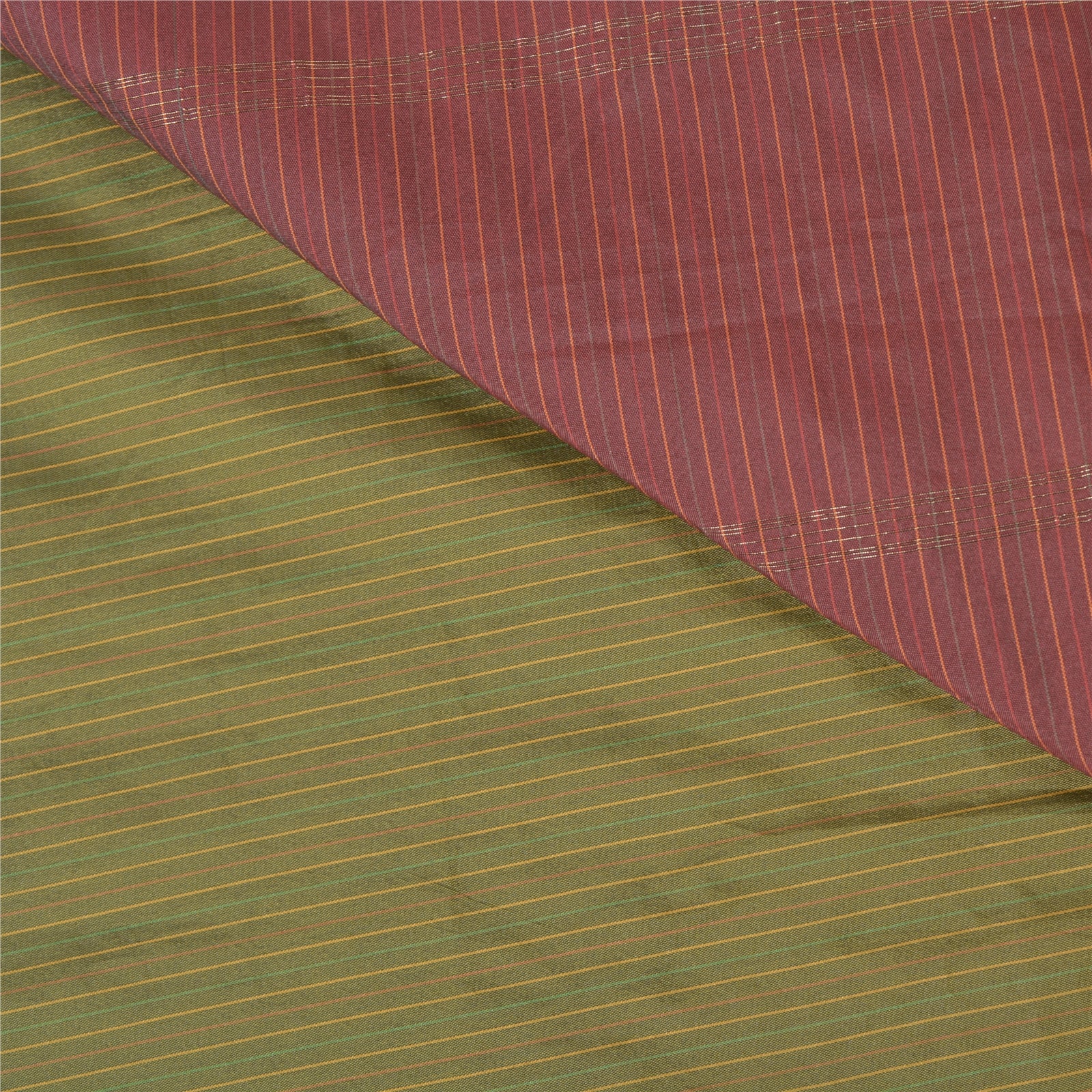 Smuk Ilkal sari i mørkerød og grøn nuance af kunstig silke (vævet). Pallu & Border har gylden vævet zari og flerfarvet vævet arbejde med blomster- og linjemønster. Du kan se matchende frynser på pallu. Sareens midte har et lignende vævet linjemønster. Ilkal er berømt for håndvævede sarier, populært kendt som Ilkal-sarier. Ilkal sari er en traditionel form for sari, som er almindeligt kvindeligt tøj i Indien. Ilkal sari har sit navn fra byen Ilkal i Bagalkot-distriktet i Karnataka-staten, Indien. Ilkal-sarier er vævet med bomuldskædetråd på kroppen, kunstsilke som kant og kunstsilke som pallu-del af sarien. Denne sari kan også bruges til forskellige kreative idéer. Brug den til kjoledesign, som tæppe, som vinduesdekoration, polstring, bordlinned og meget mere. Slip dine kreative safter løs.