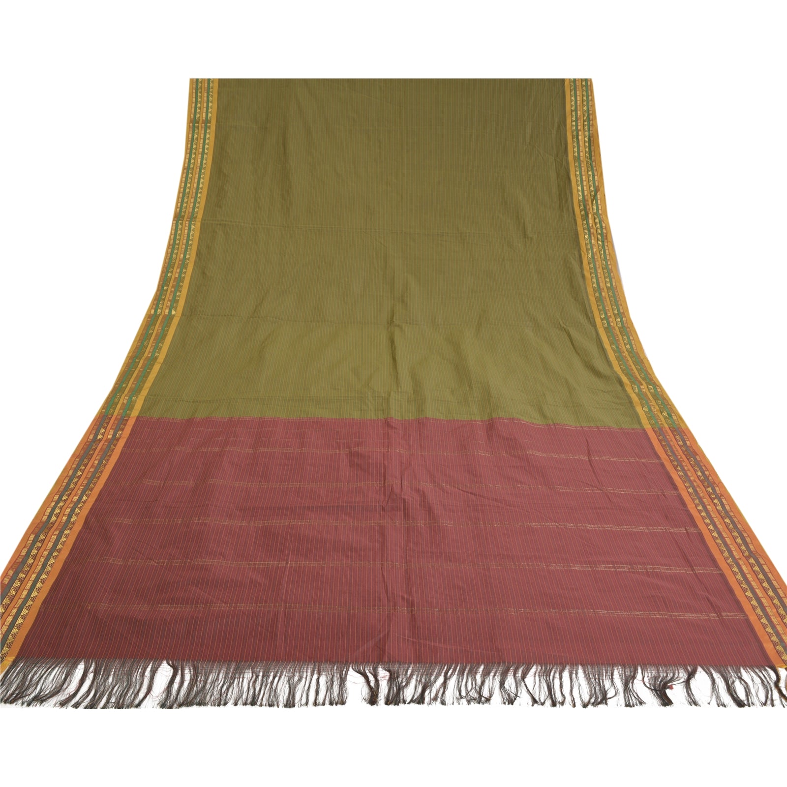 Sanskriti Vintage Grønne Sarees Kunstsilke Vævet Ilkal Premium Sari 5 Yard Bæredygtigt Stof