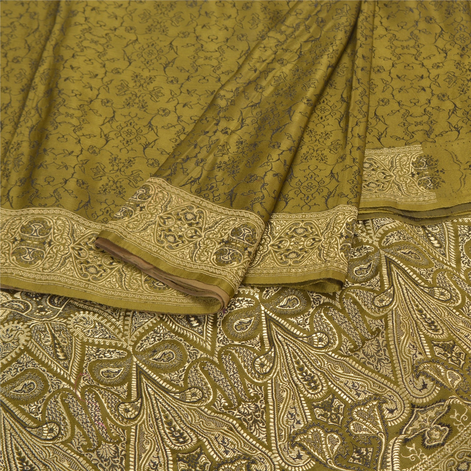 Sanskriti Offers This Vintage Green Color Woven Saree Which Is Crafted With 100% Pure Satin Silk Base Fabric The pallu & border sari features cream/black hand-woven work with floral & paisley design. You can see similar woven work with floral design in center part of the sari.. As the item is vintage some mild stains are visible . This saree can be used for various crafting ideas too. Use it for dress designing, as a throw, as window dressing, upholstery, table linen and much more. Let your creative juices flow! 'International buyers please note: Import duties, taxes, and charges are not included in the item price or postage cost. These charges are the buyer's responsibility. Please check with your country's customs office to determine what these additional costs will be prior to bidding or buying. Buyer will pay custom duty/tax. It is calculated and charged differently by every country. As a seller I do not have any control over it. VAT or sales tax is calculated by the platform at the time of checkout. Customs charge is payable at the time of delivery.'