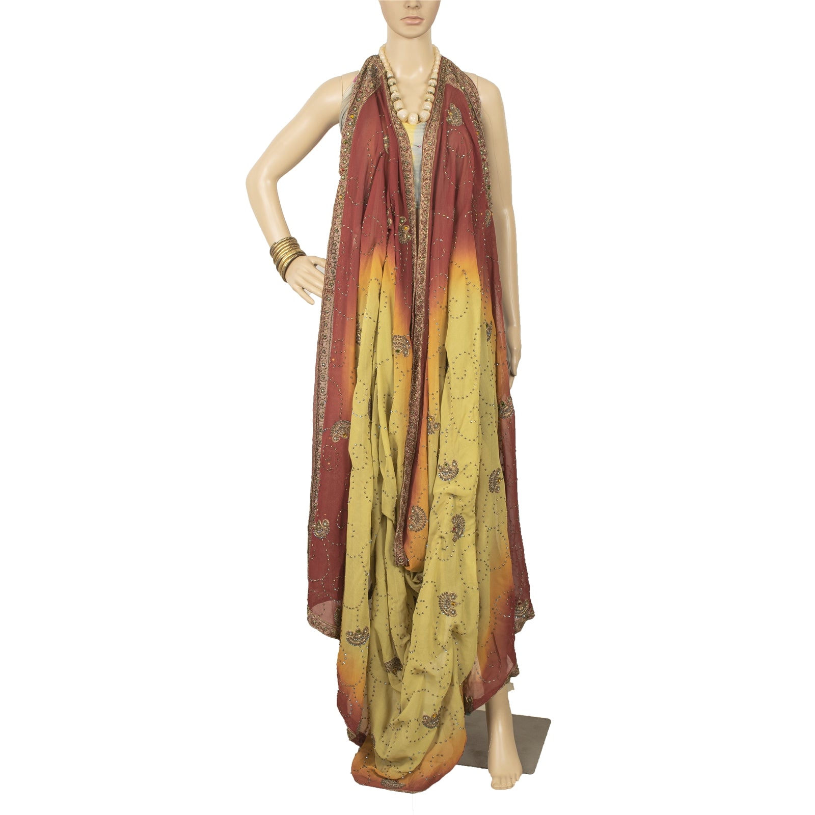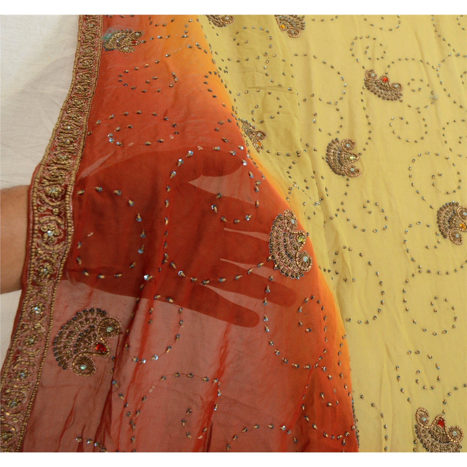 'THE ITEM COLOR OR SHADE MAY BE DARKER OR LIGHTER THAN THE PICTURE.' An exquisite hand beaded dupatta difficult to express in words. Base fabric is 100% pure georgette silk in green & dark red color. On borders is adorned with pure metallic zari/zardozi, brown beads, blue/golden & multi color rhinestone work is highlighting the look of the dupatta. All over the dupatta similar work with veil design. Dupatta has orange/brown color on 4 sides of border look wonderful. The quality of zari work is amazing, its a pure metallic zari. International buyers please note: Import duties, taxes, and charges are not included in the item price or postage cost. These charges are the buyer's responsibility. Please check with your country's customs office to determine what these additional costs will be prior to bidding or buying. Buyer will pay custom duty/tax. It is calculated and charged differently by every country. As a seller I do not have any control over it.VAT or sales tax is calculated by the platform at the time of checkout. Customs charge is payable at the time of delivery.' HD-5234