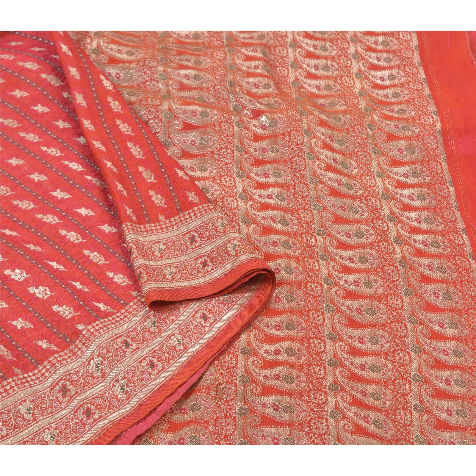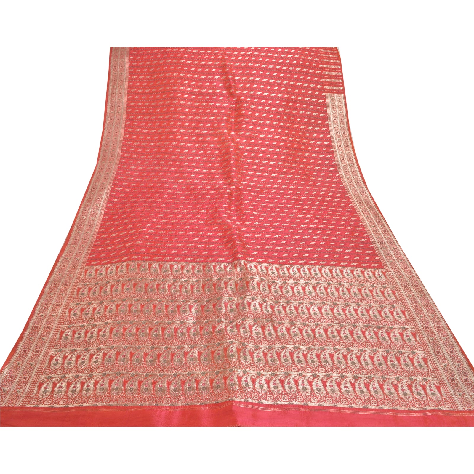 Sanskriti Vintage Heavy Sarees Pure Satin Silke Red Banarasi Tanchoi Sari Bæredygtigt stof