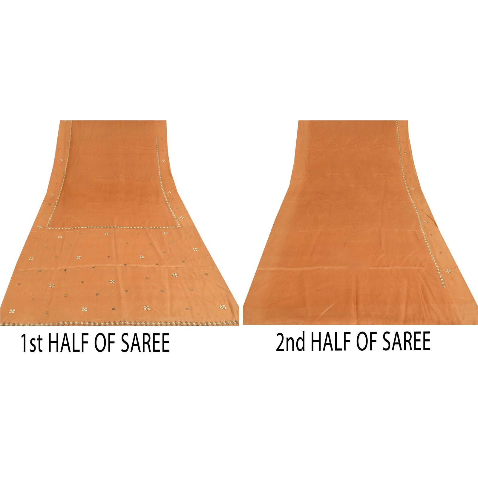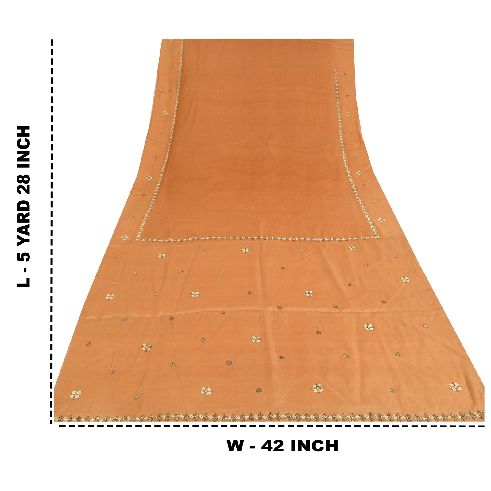 THE ITEM COLOR OR SHADE MAY BE DARKER OR LIGHTER THAN THE PICTURE.' Beautiful shade of orange colored hand embroidered pure silk sari/fabric Pallu & Border features floral design embellished with golden zardozi/dabka work & kundan stone work. There are floral motifs with similar work in center part of sari. Antique zardozi work with floral design on shade of orange color base fabric is really enhancing the beauty of the saree. This unique vintage saree can be used for various crafting ideas even if you don't want to use it as a sari. Design a dress, use it as a throw, as window dressing, upholstery, sarongs, table linen and much more. Let your creative juices flow and use this decorated fabric in multiple fashion. Shipping note: International buyers please note: Import duties, taxes, and charges are not included in the item price or postage cost. These charges are the buyer's responsibility. Please check with your country's customs office to determine what these additional costs will be prior to bidding or buying. Buyer will pay custom duty/tax. It is calculated and charged differently by every country. As a seller I do not have any control over it. VAT or sales tax is calculated by the platform at the time of checkout. Customs charge is payable at the time of delivery.