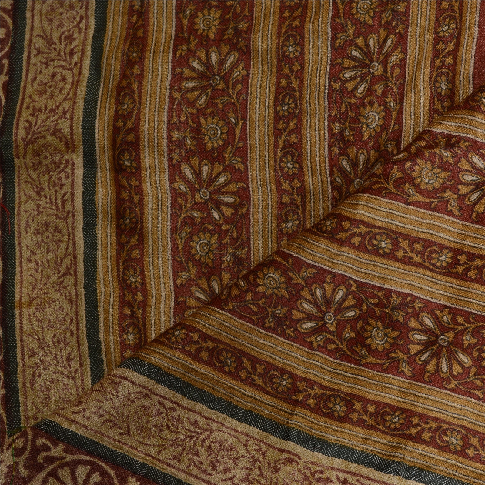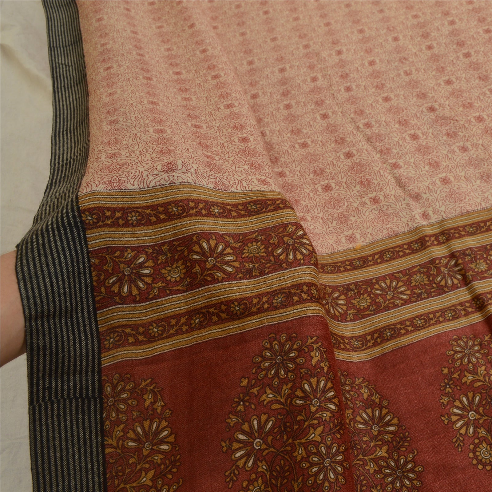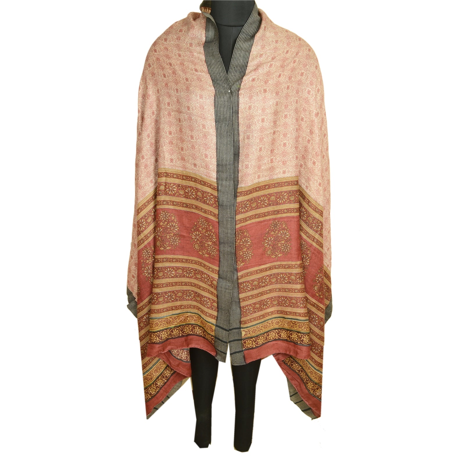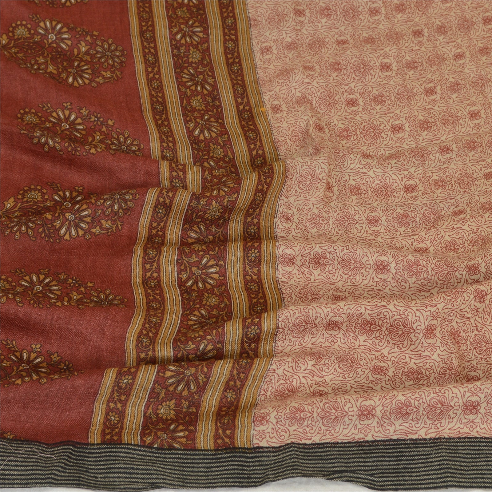 Sanskriti Vintage Elfenben/Mørkerød Lang Dupatta Stola Bomuld Silke Trykt Hijab