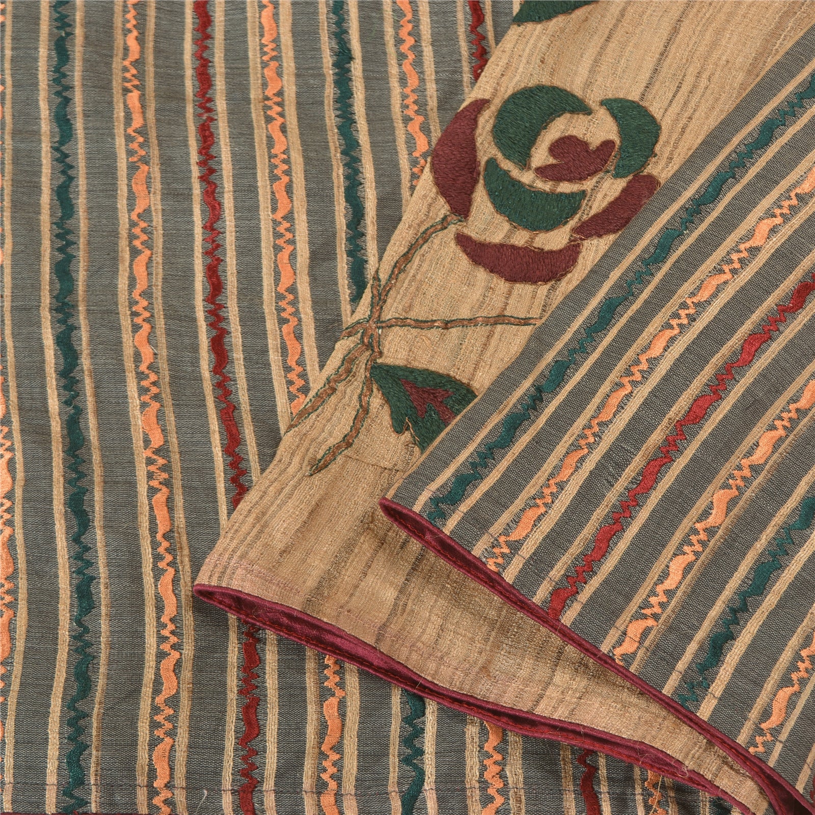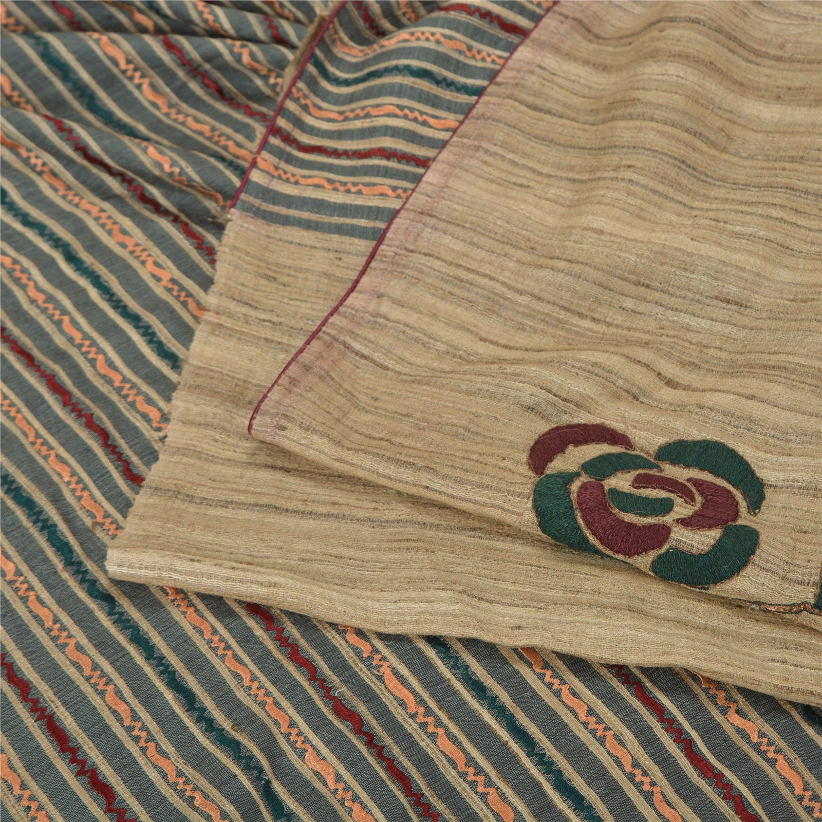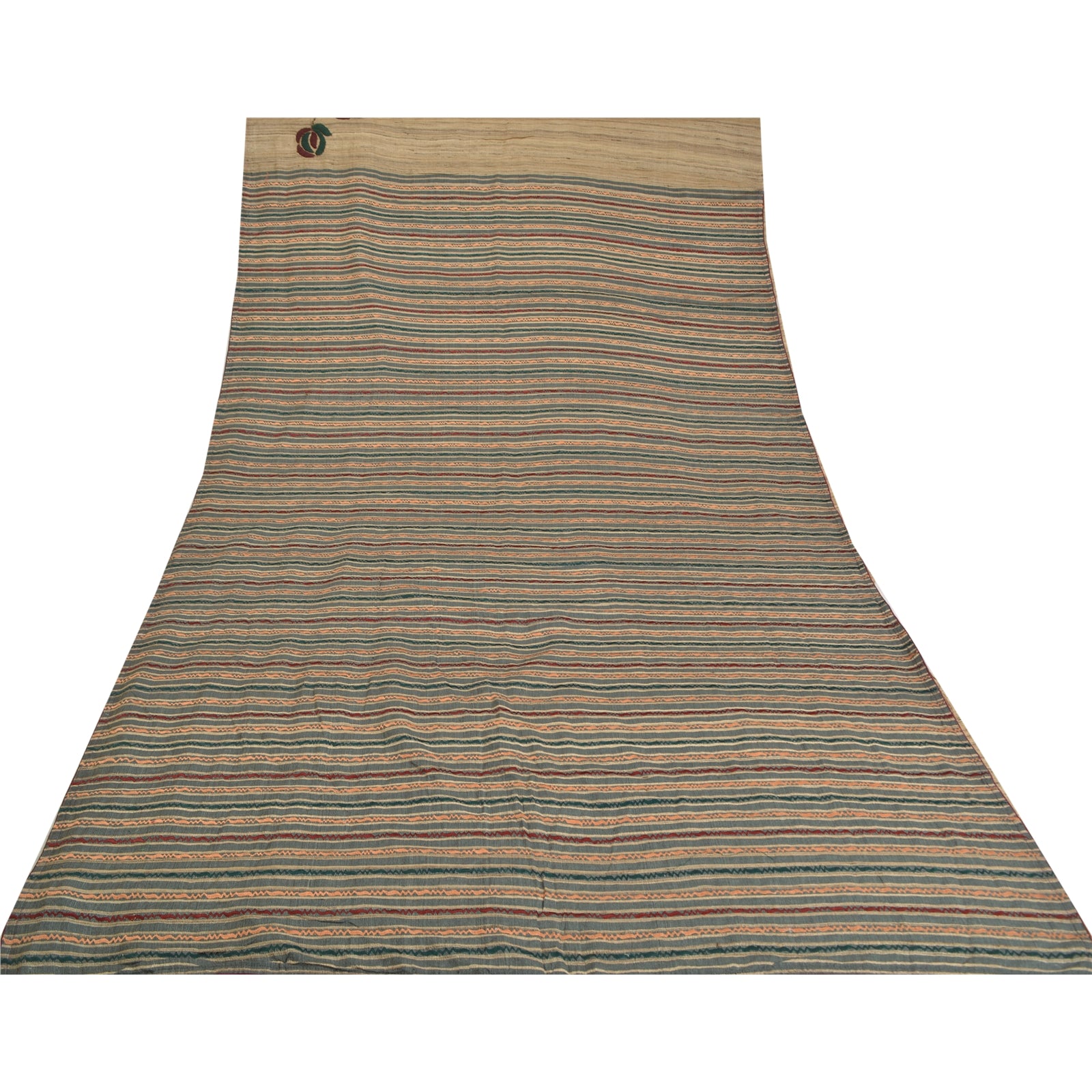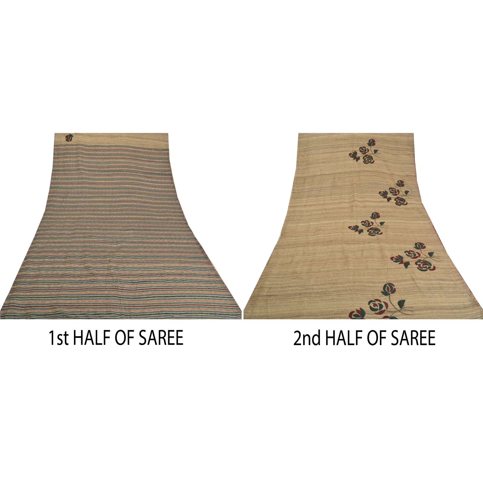 Sanskriti Vintage Elfenbens Sarees Ren Håndvævet Silke Broderet Vævet Sari Bæredygtigt Stof