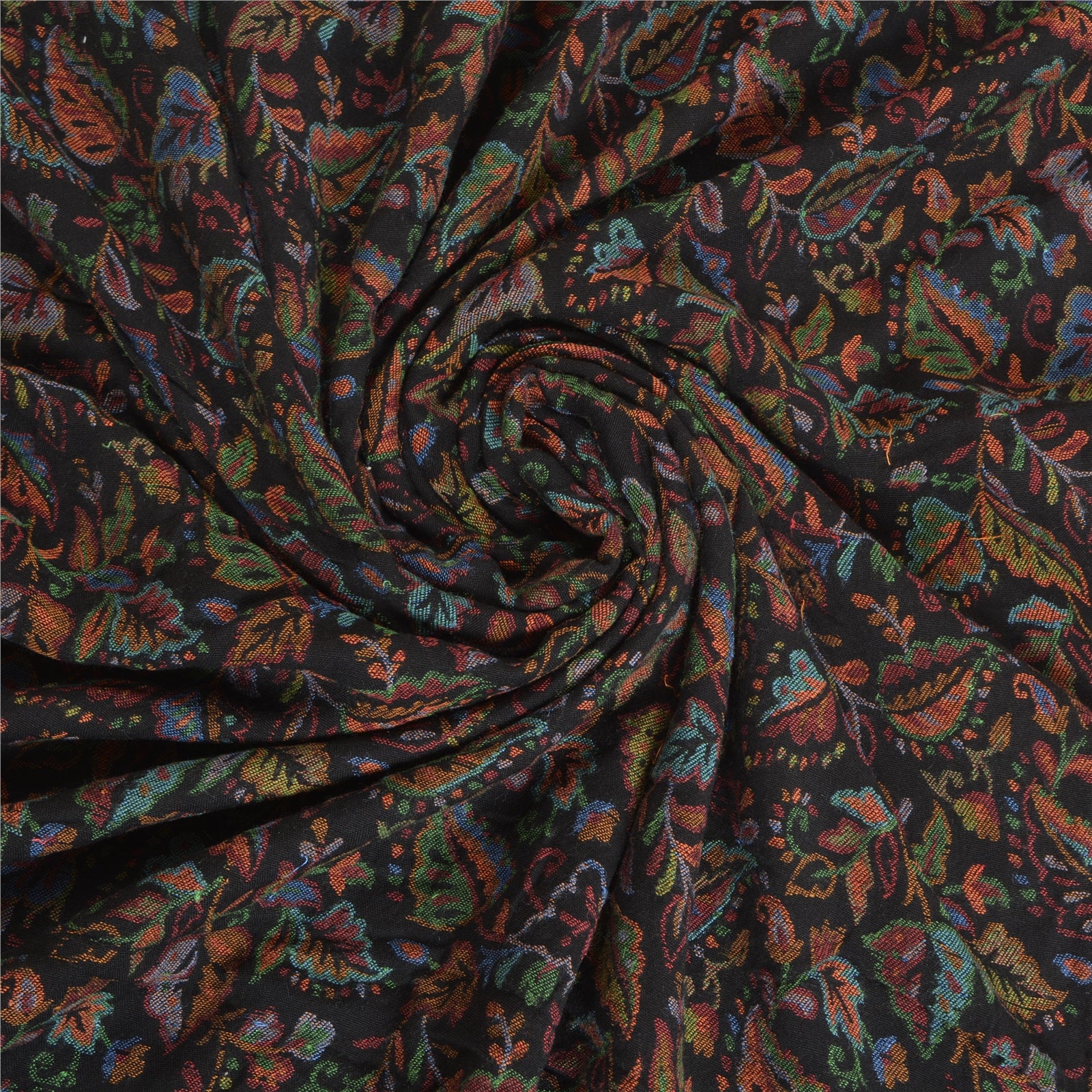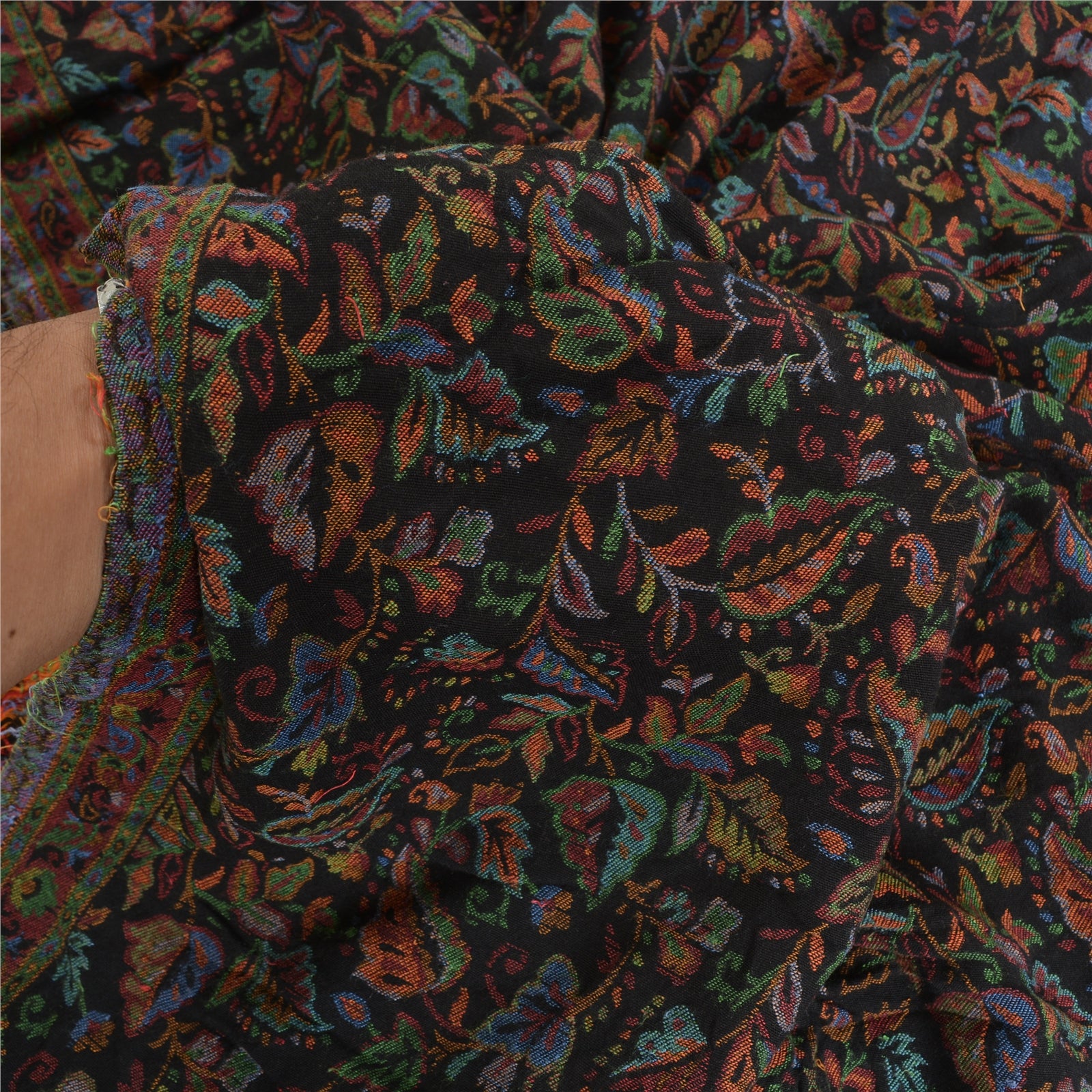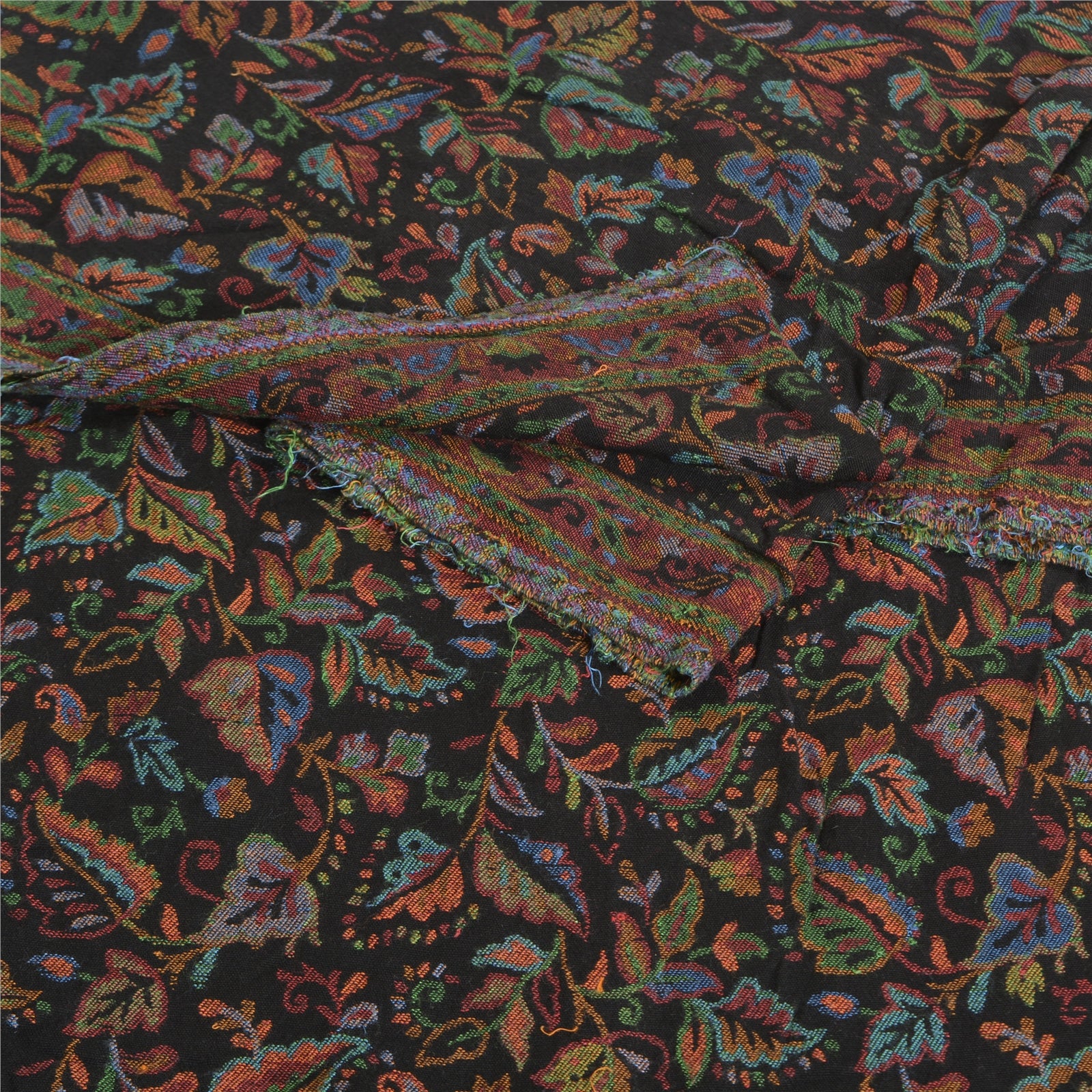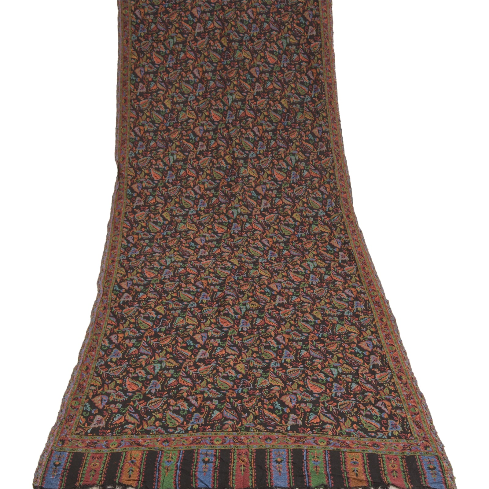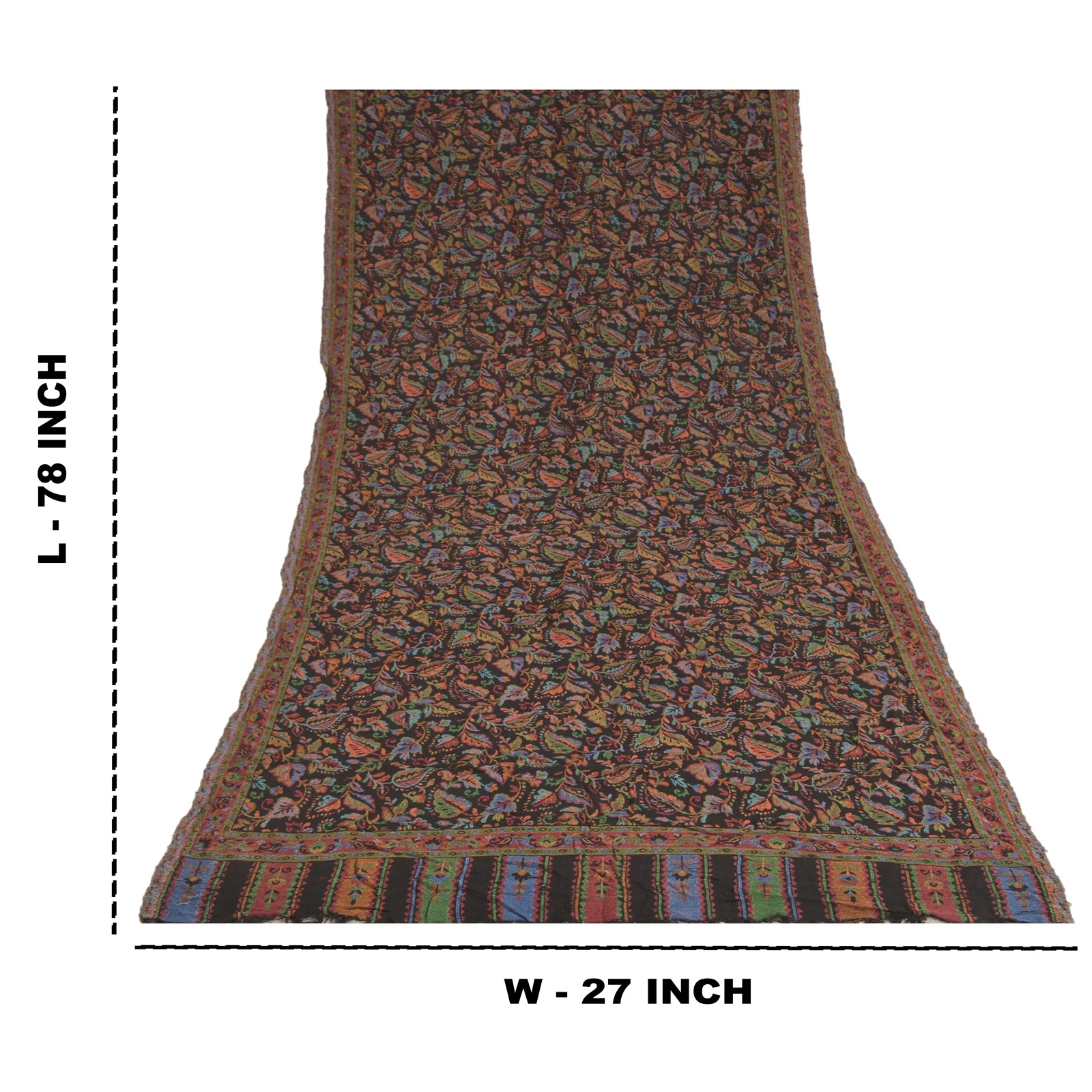 Sanskriti Vintage Lang Sort Ren Bomuld Sjal Vævet Tørklæde Blød Stola