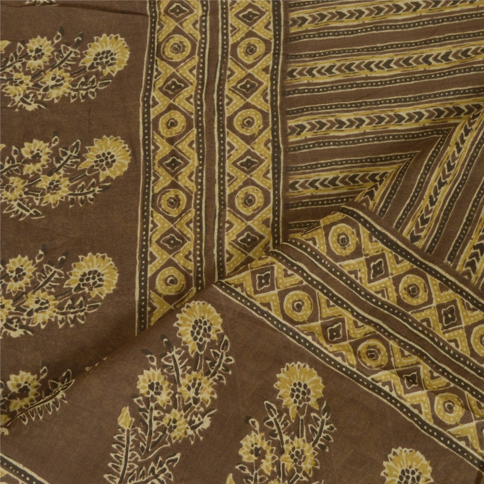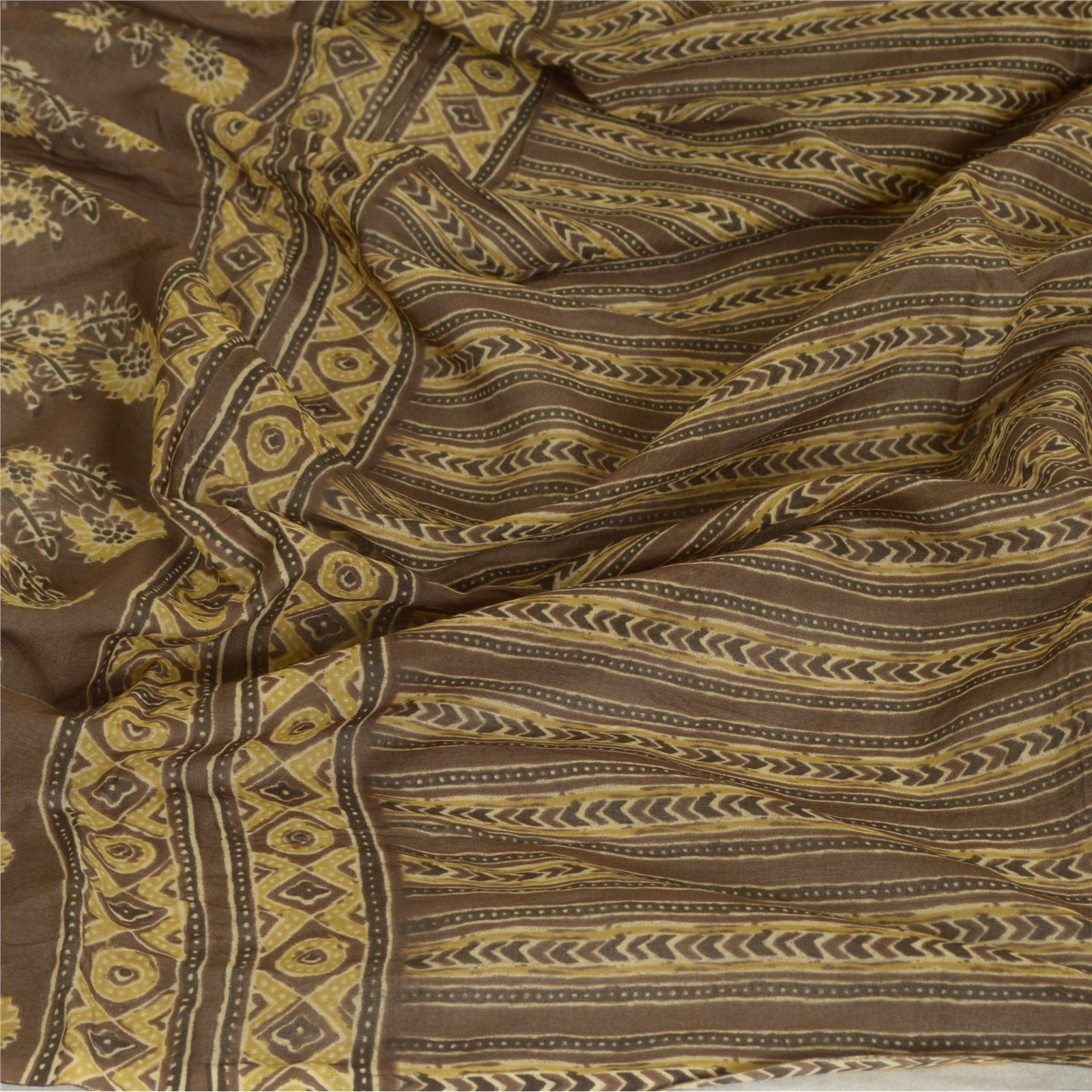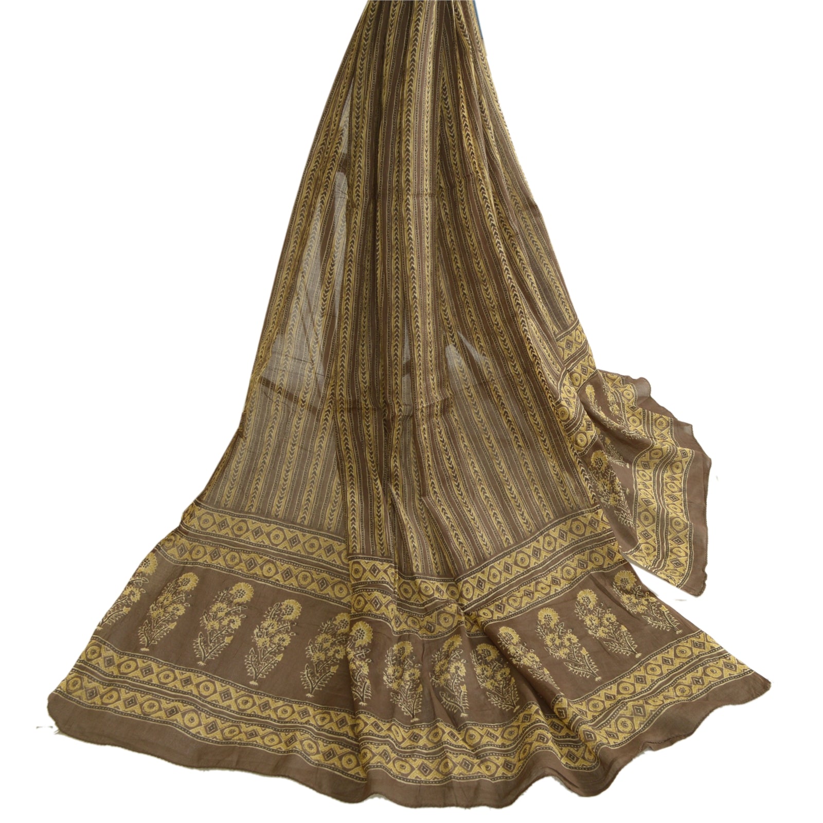 Sanskriti Vintage Lange Dupatta Stole Blandet Silke Brune Hijab Tørklæder Med Bloktryk