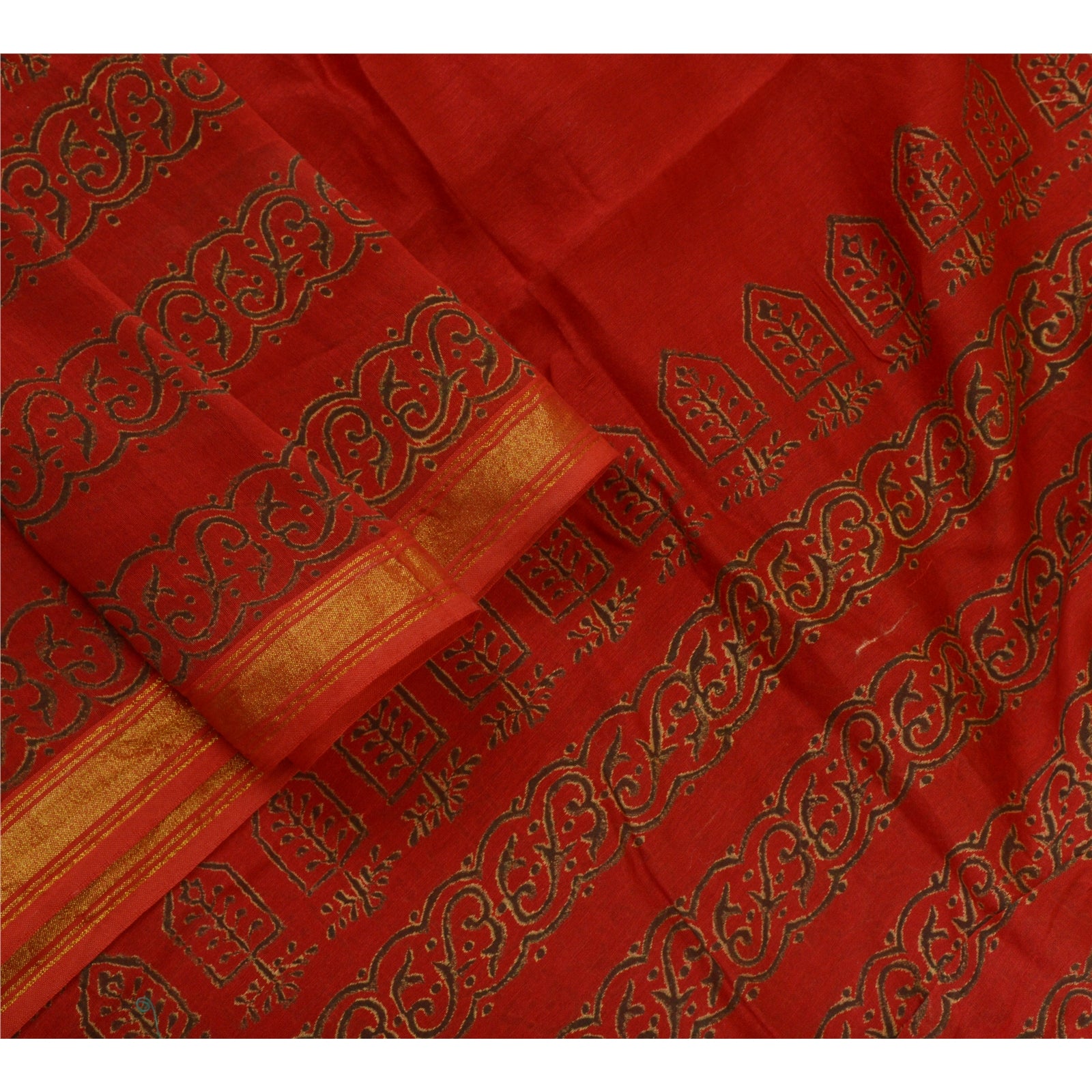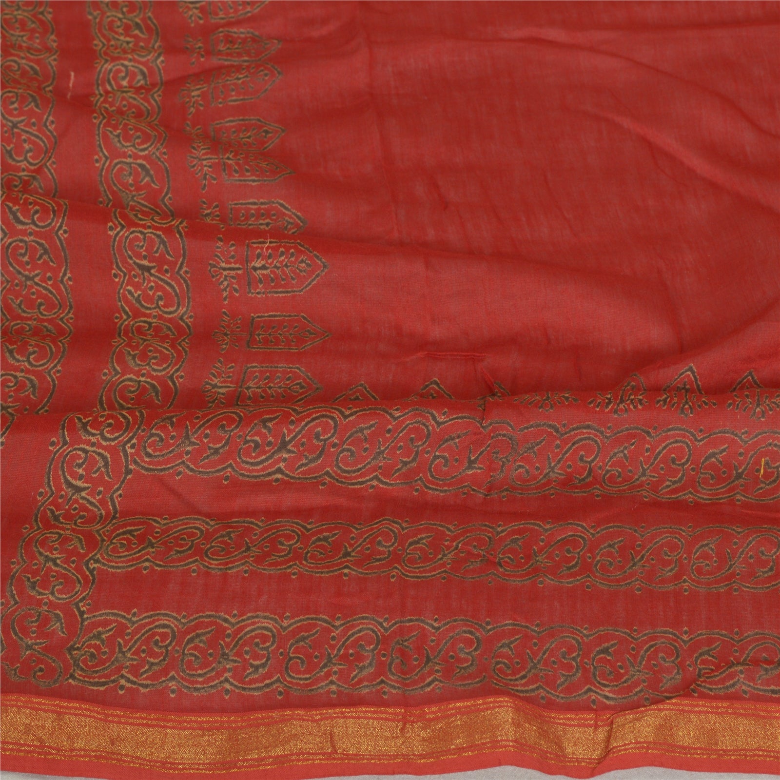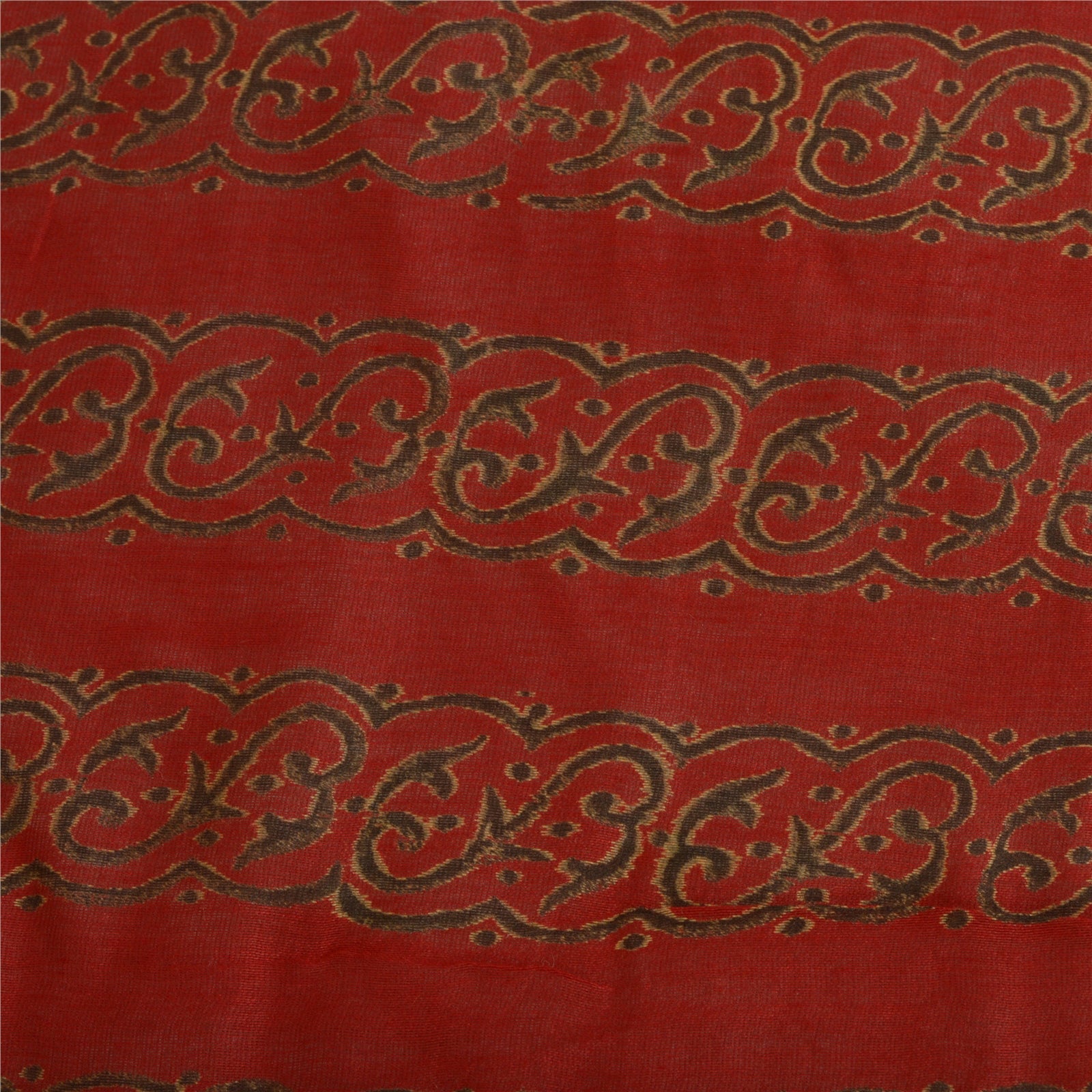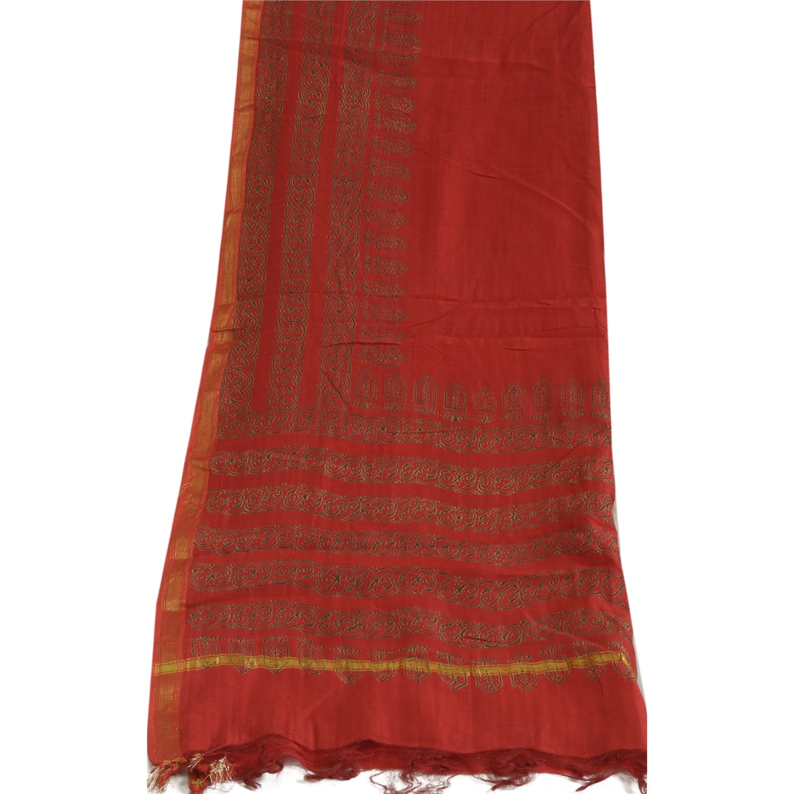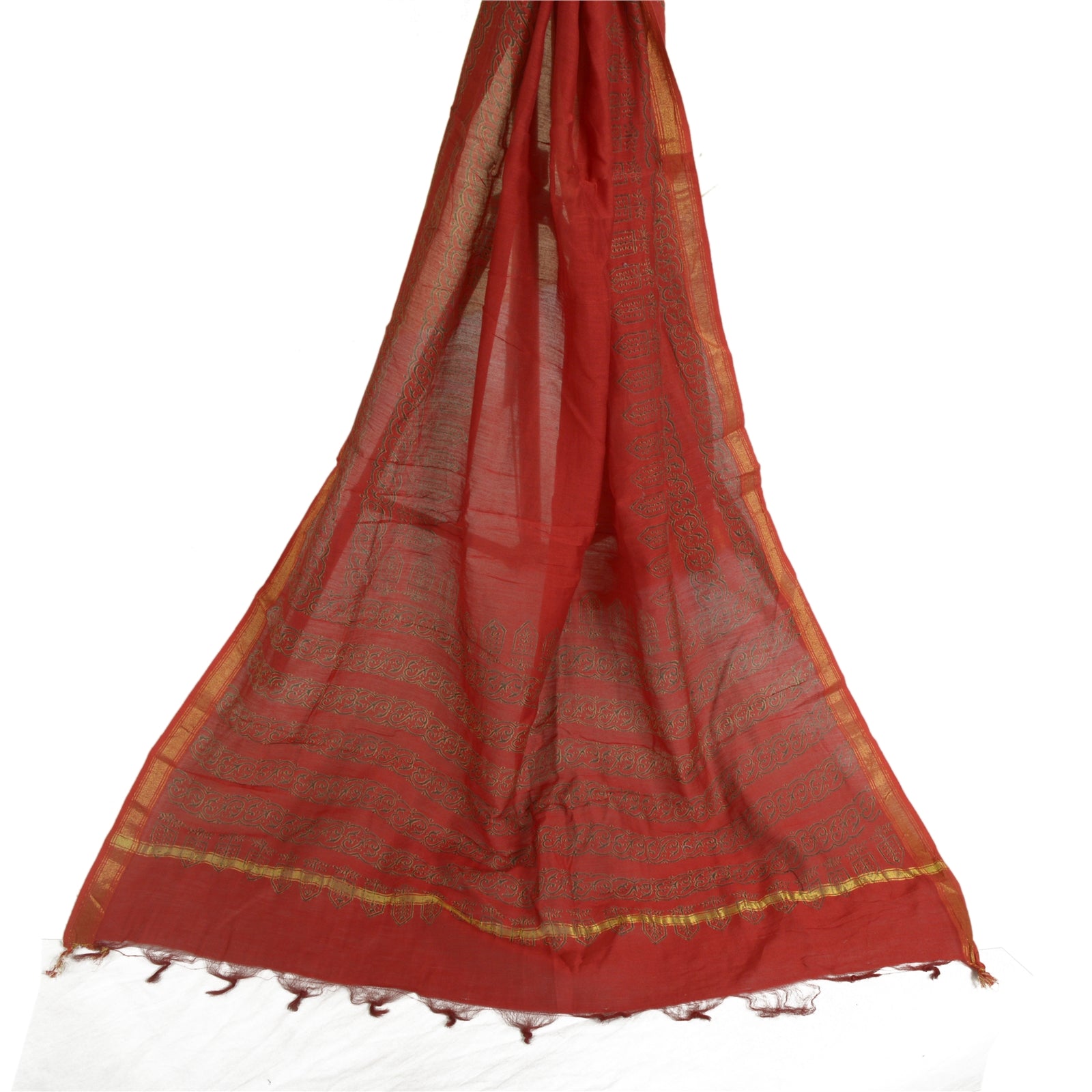Sanskriti Vintage Lang Dupatta Stola Bomuld Silke Mørkerød Håndblokprint Slør