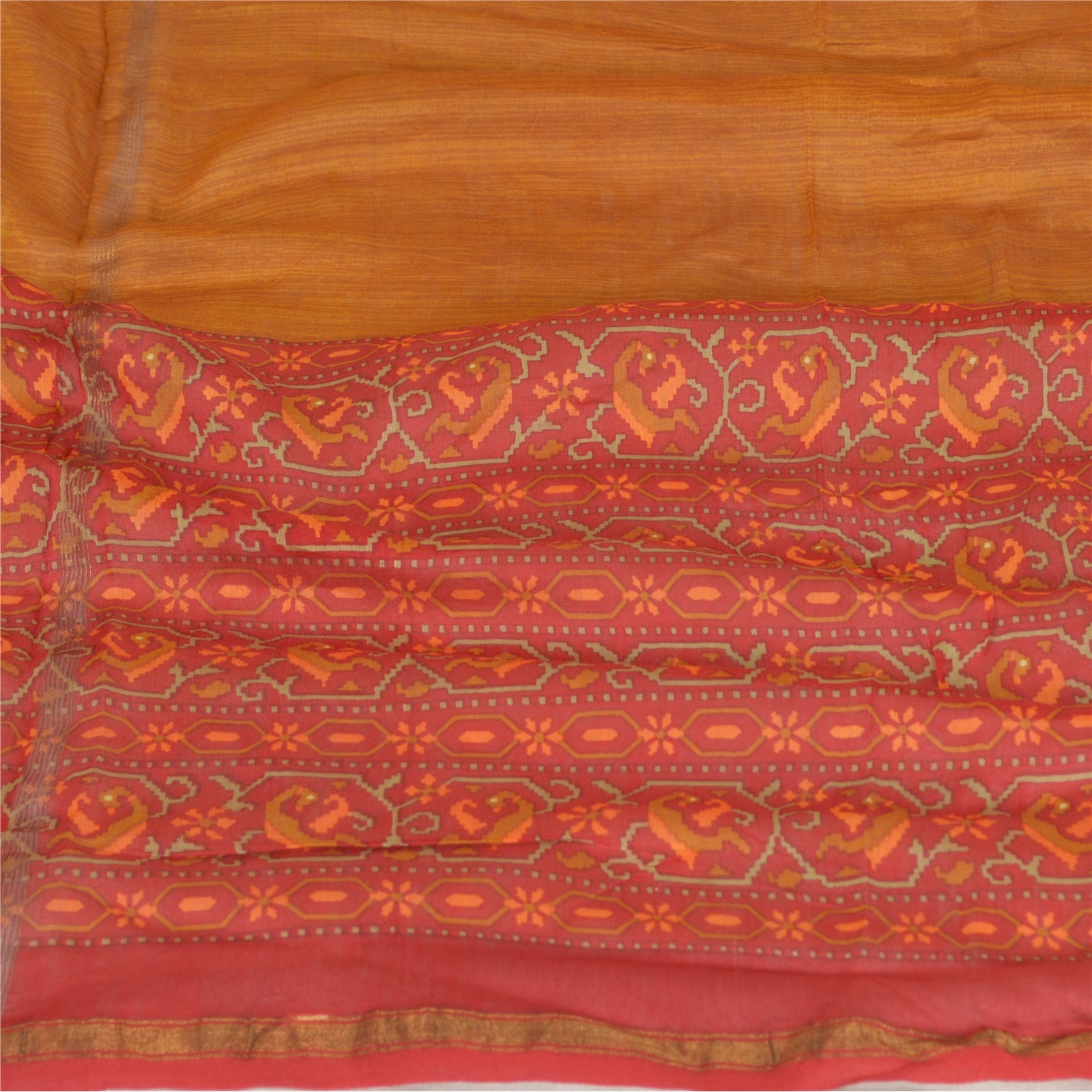 Sanskriti Vintage Lang Dupatta Stola Bomuld Silke Orange/Rød Trykt Vævet Slør