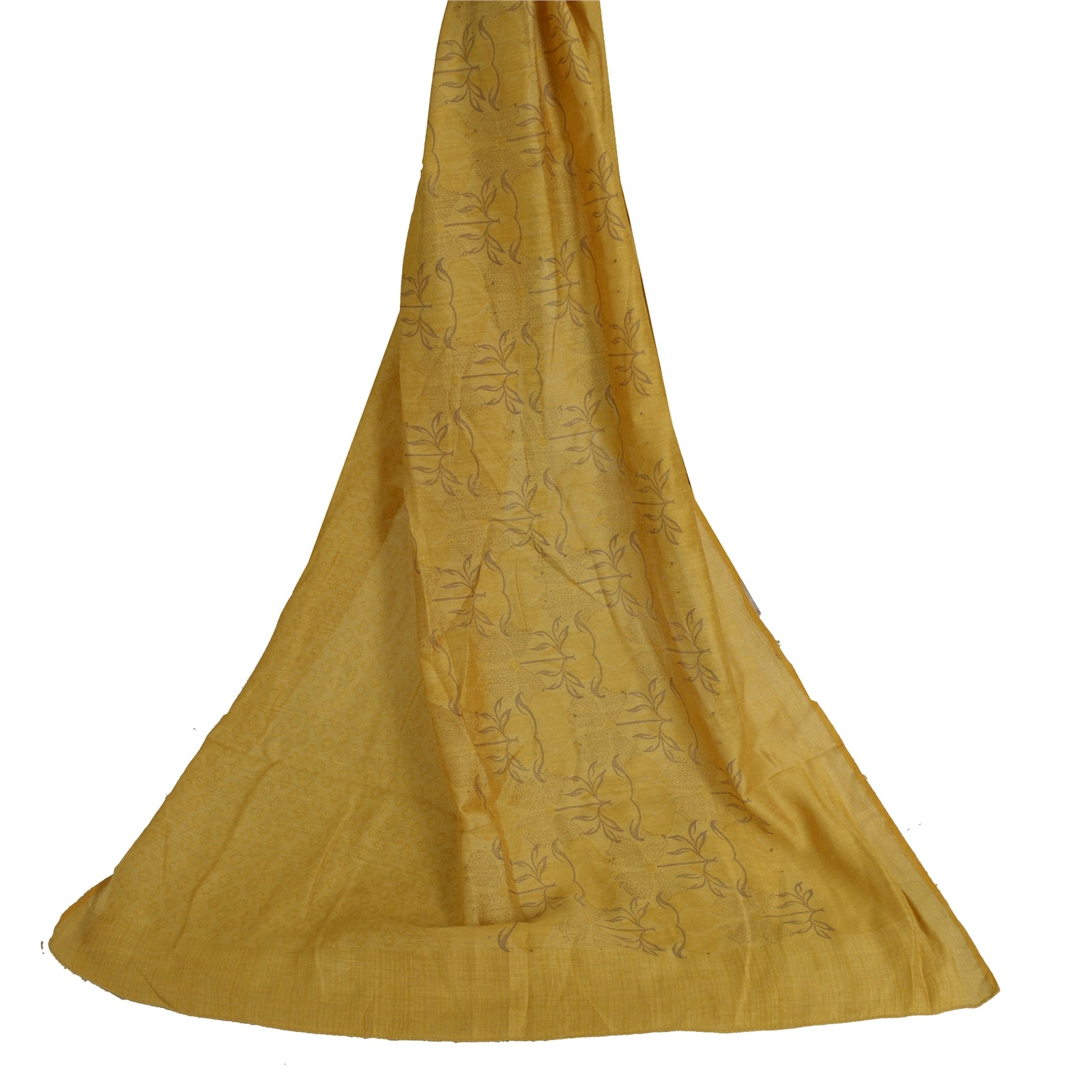 Sanskriti Vintage Lang Dupatta Stola Ren Silke Sennepsgul Trykt Wrap Hijab