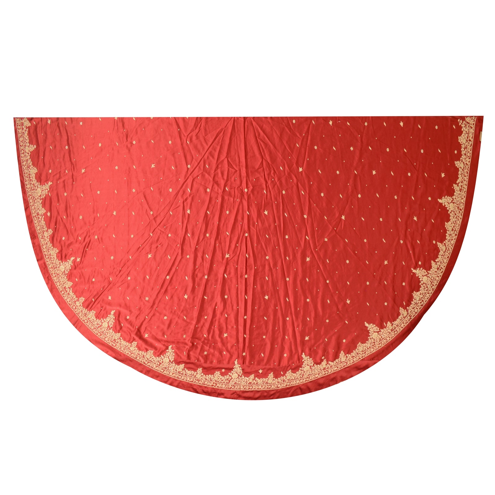 'THE ITEM COLOR OR SHADE MAY BE DARKER OR LIGHTER THAN THE PICTURE.' Sanskriti offers this vintage dark red color unstitched long skirt made with 100% Pure Satin Silk. Antique very heavy hand embroidered skirt. There is so much antique work done in this one, it is fully covered with zardozi work. Bottom of the skirt has floral design embellished with pure metallic golden zardozi work, white glass beads work. All over skirt has similar work with floral design . It is a unstitched skirt with a length of 53 inch and flare of the skirt is 175 inch. Flaunt this heavy skirt with ethnic tops, blouses or kurtis at parties, weddings and other occasions. The quality of zari work is amazing, its a pure metallic zari. Some zari work gives an antique look. 'International buyers please note: Import duties, taxes, and charges are not included in the item price or postage cost. These charges are the buyer's responsibility. Please check with your country's customs office to determine what these additional costs will be prior to bidding or buying. Buyer will pay custom duty/tax. It is calculated and charged differently by every country. As a seller I do not have any control over it. VAT or sales tax is calculated by the platform at the time of checkout. Customs charge is payable at the time of delivery.'