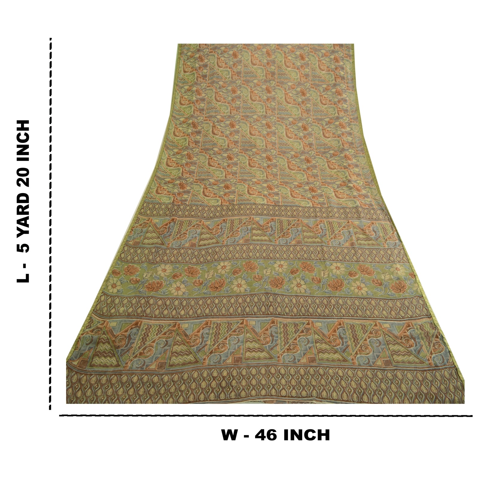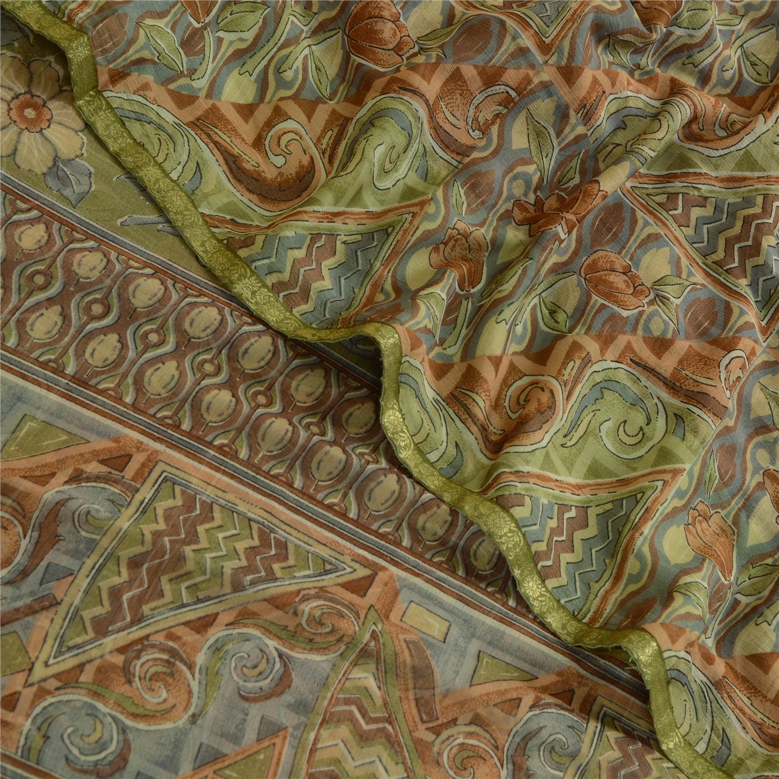 Sanskriti Vintage Multi Sarees Zari Border Printed Chiffon Sari Craft Fabric