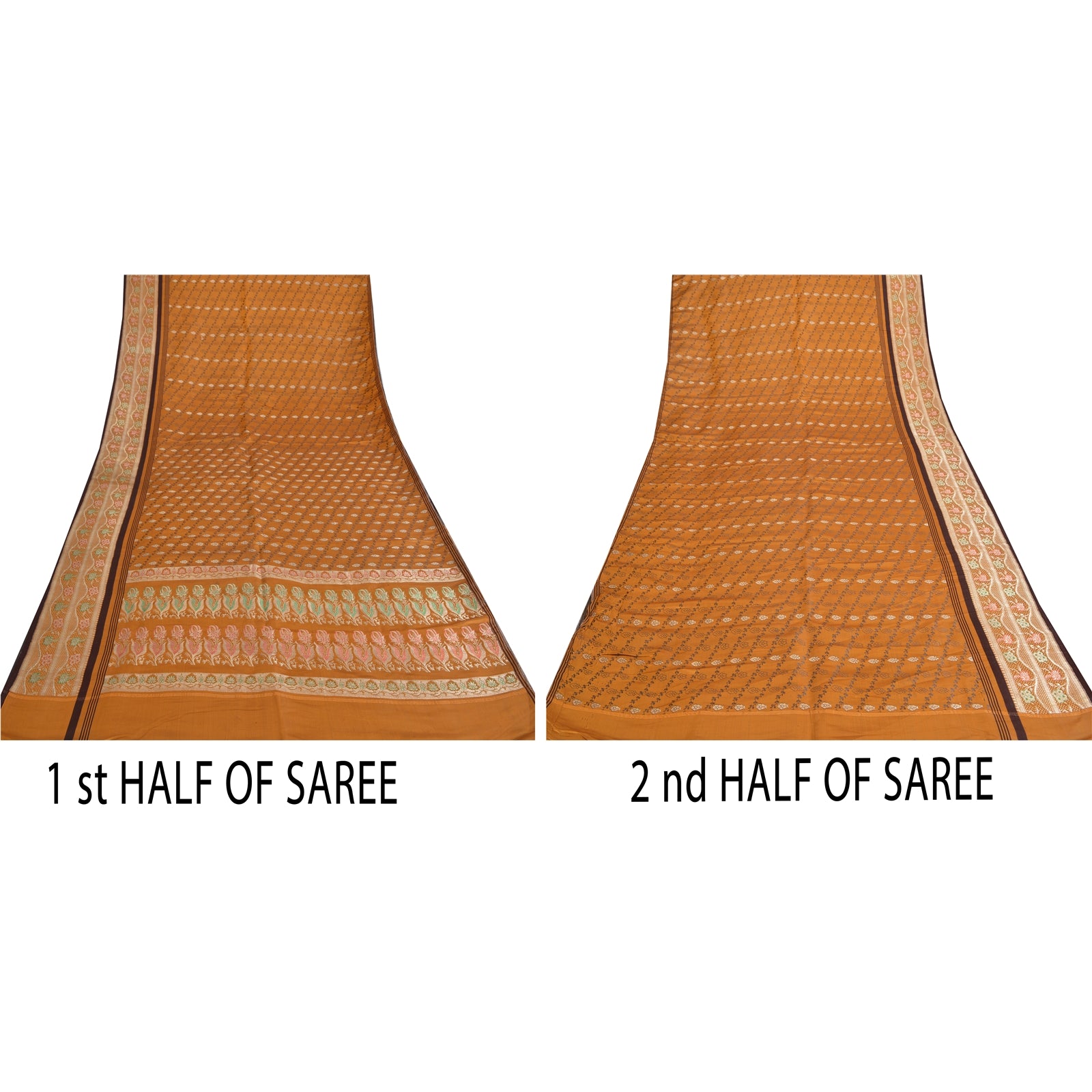 Sanskriti Offers This Vintage Shade Of Mustard Color Woven Brocade/Banarasi Heavy Saree Which Is Crafted With 100% Pure Satin Silk Base Fabric The pallu & border sari features floral design embellished with pure metallic light golden color zari work, pink/green thread woven work. The center part of sari boasts floral design with zari work with black thread woven work. This heavy saree can be used for various crafting ideas too. Use it for dress designing, as a throw, as window dressing, upholstery, table linen and much more. Let your creative juices flow! Zari work gives a antique look. As the item is vintage some mild stains are visible. 'International buyers please note: Import duties, taxes, and charges are not included in the item price or postage cost. These charges are the buyer's responsibility. Please check with your country's customs office to determine what these additional costs will be prior to bidding or buying. Buyer will pay custom duty/tax. It is calculated and charged differently by every country. As a seller I do not have any control over it. VAT or sales tax is calculated by the platform at the time of checkout. Customs charge is payable at the time of delivery.'