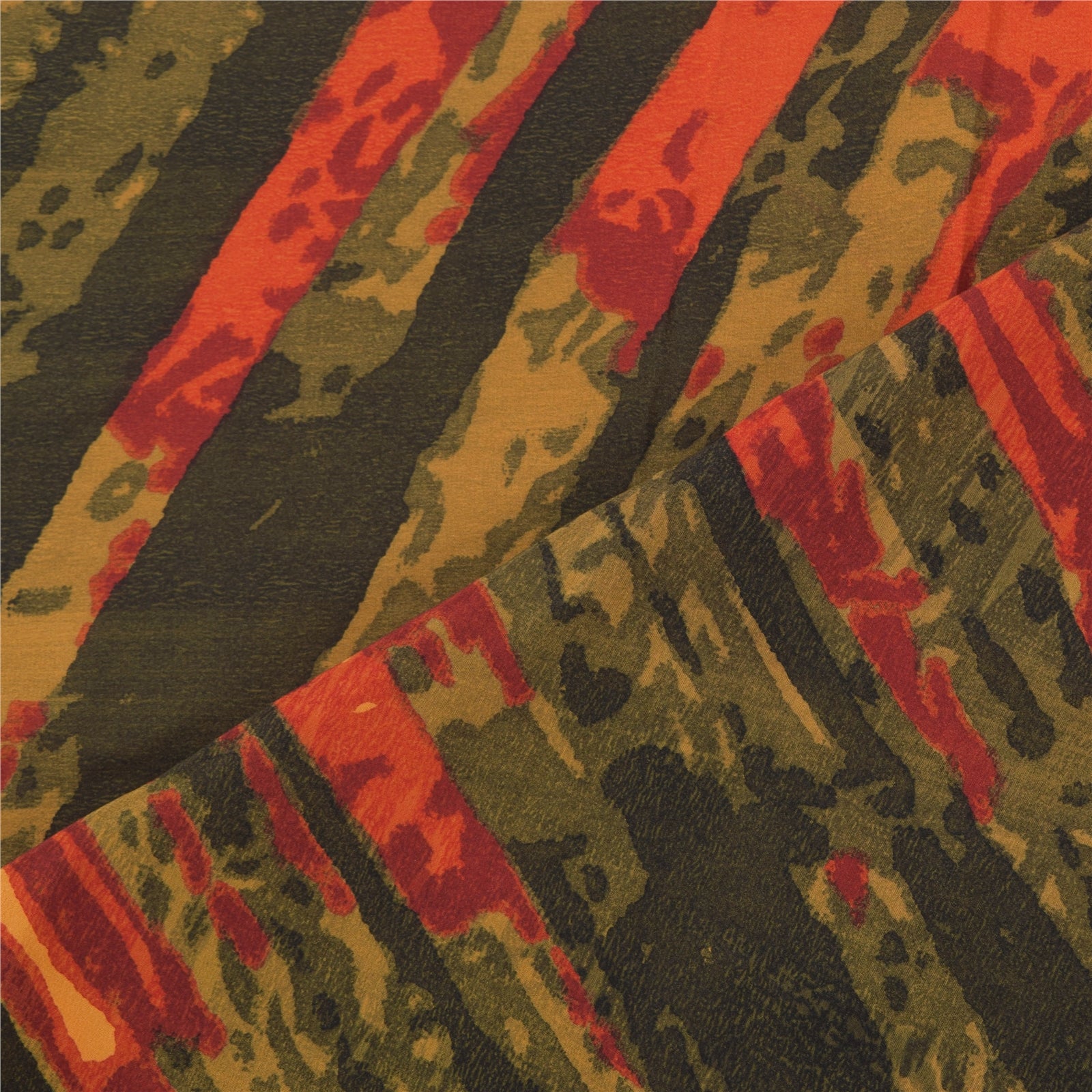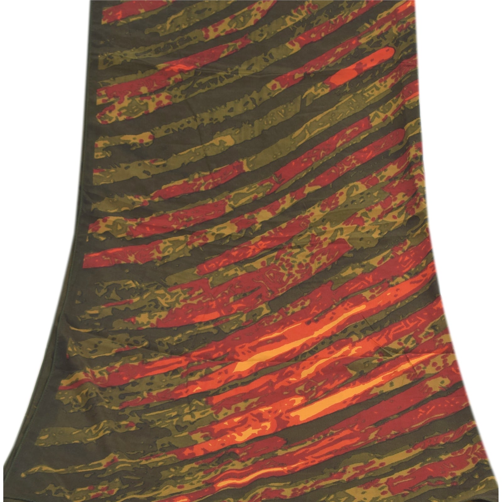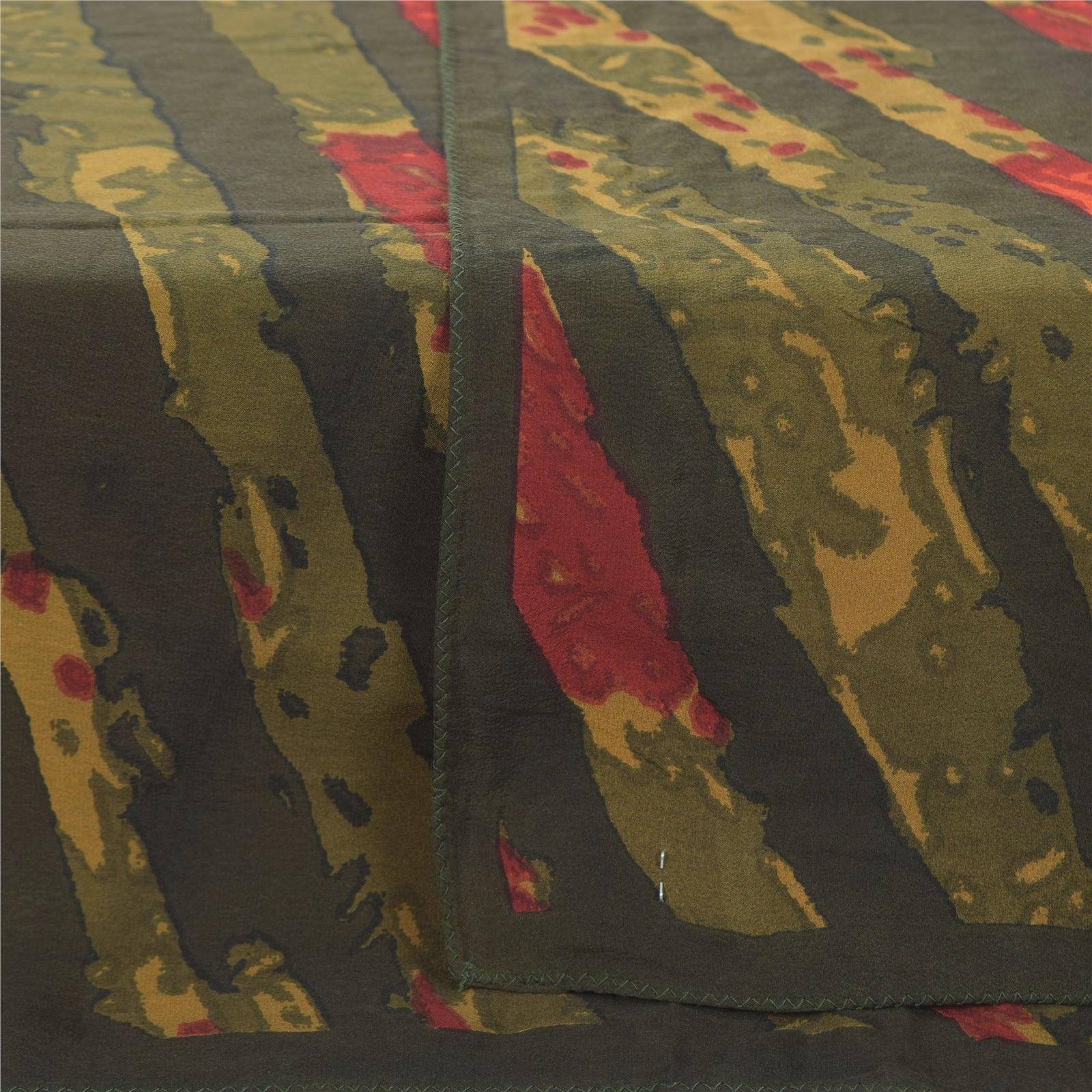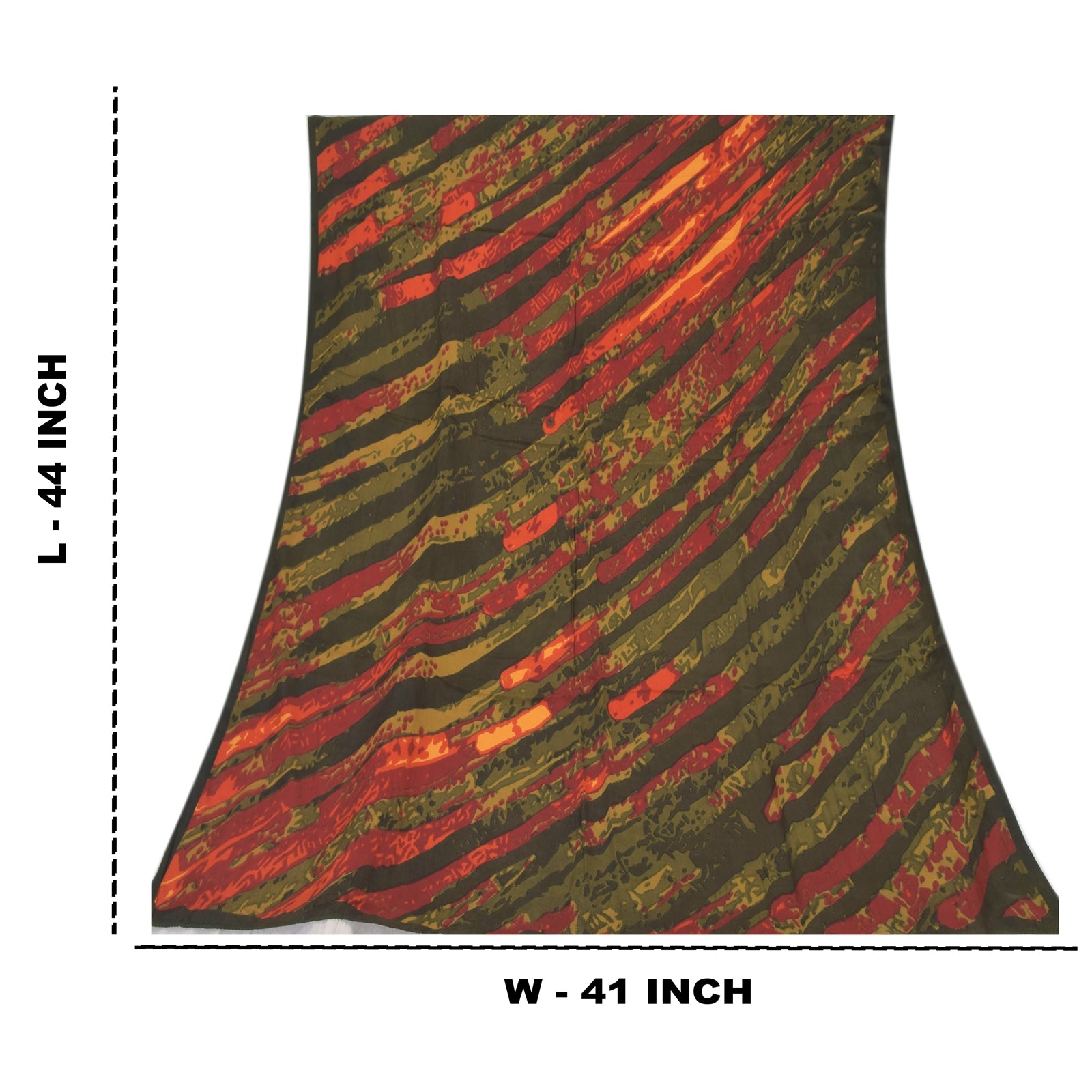 Sanskriti Vintage Olivengrøn Dupatta Lang Stola Ren Crepe Trykt Premium Slør