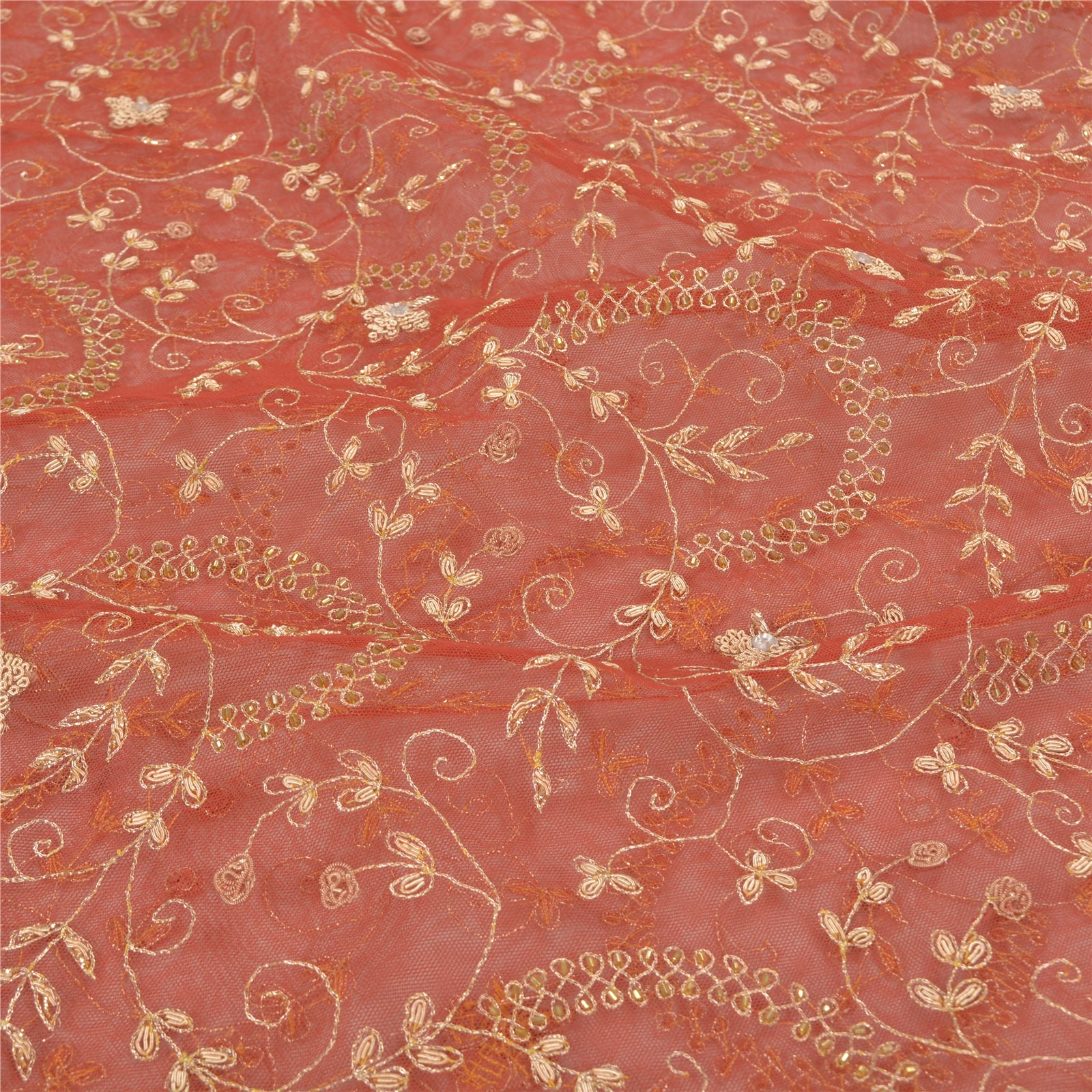Sanskriti Vintage Orange Net Mesh Long Skirt Unstitched Hand Beaded Bollywood