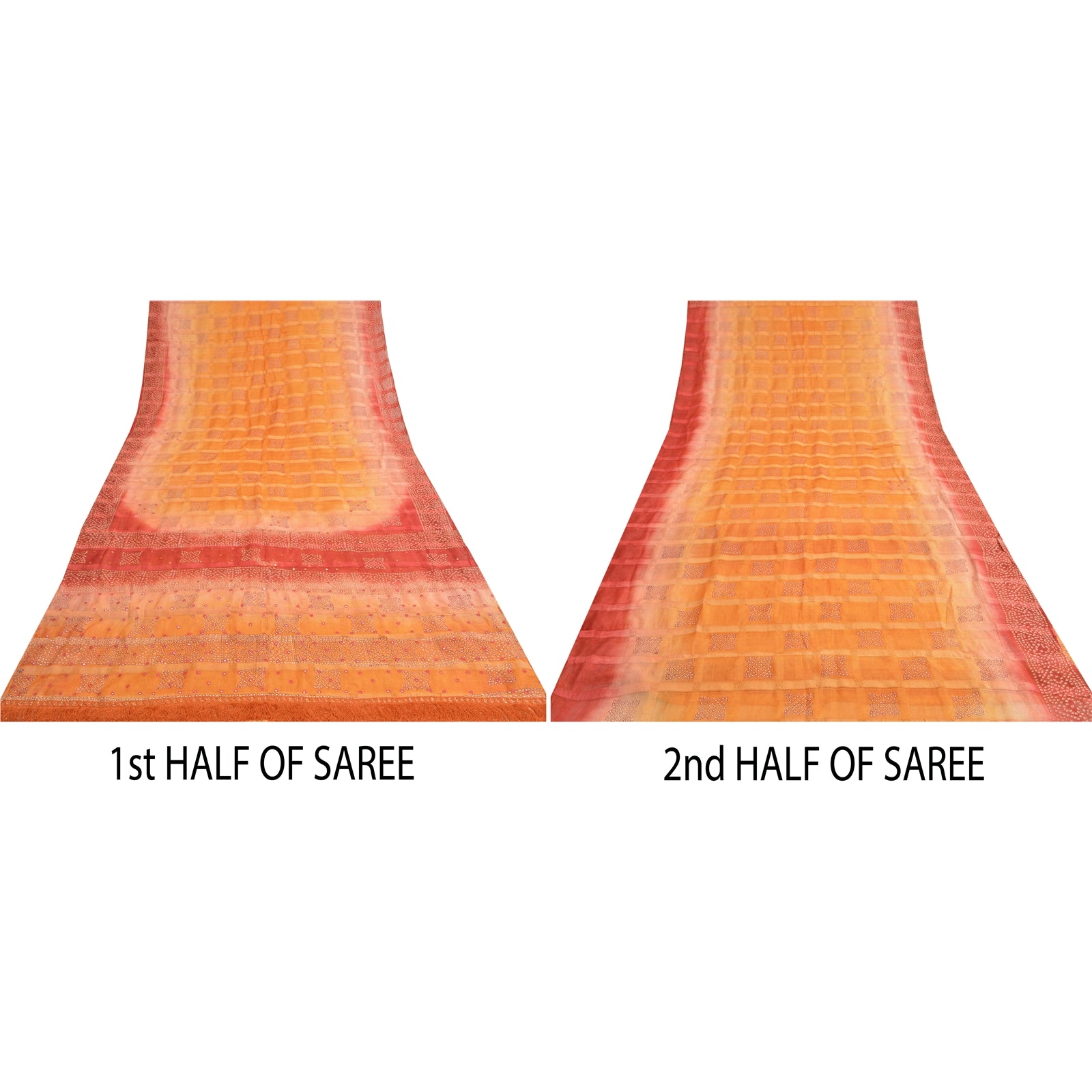 • Beautiful orange & dark red colored hand embroidered painted pure silk sari • Pallu & Border features floral design embellished with saffron/maroon thread work, mirror work. • There are floral motifs with similar work in center part of sari. • Sari has maroon/saffron fringes on pallu. This unique vintage saree can be used for various crafting ideas even if you don't want to use it as a sari. Design a dress, use it as a throw, as window dressing, upholstery, sarongs, table linen and much more. Let your creative juices flow and use this decorated fabric in multiple fashion. International buyers please note: Import duties, taxes, and charges are not included in the item price or postage cost. These charges are the buyer's responsibility. Please check with your country's customs office to determine what these additional costs will be prior to bidding or buying. Buyer will pay custom duty/tax. It is calculated and charged differently by every country. As a seller I do not have any control over it. VAT or sales tax is calculated by the platform at the time of checkout. Customs charge is payable at the time of delivery.