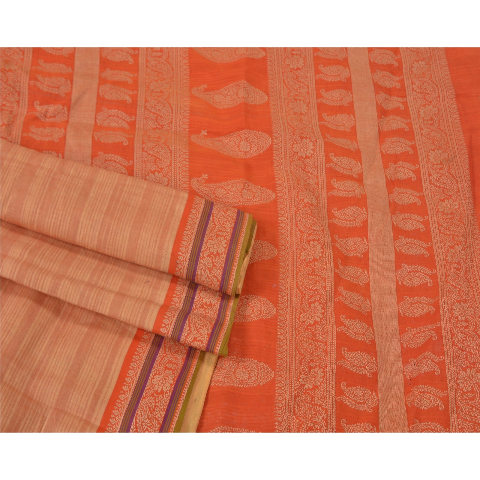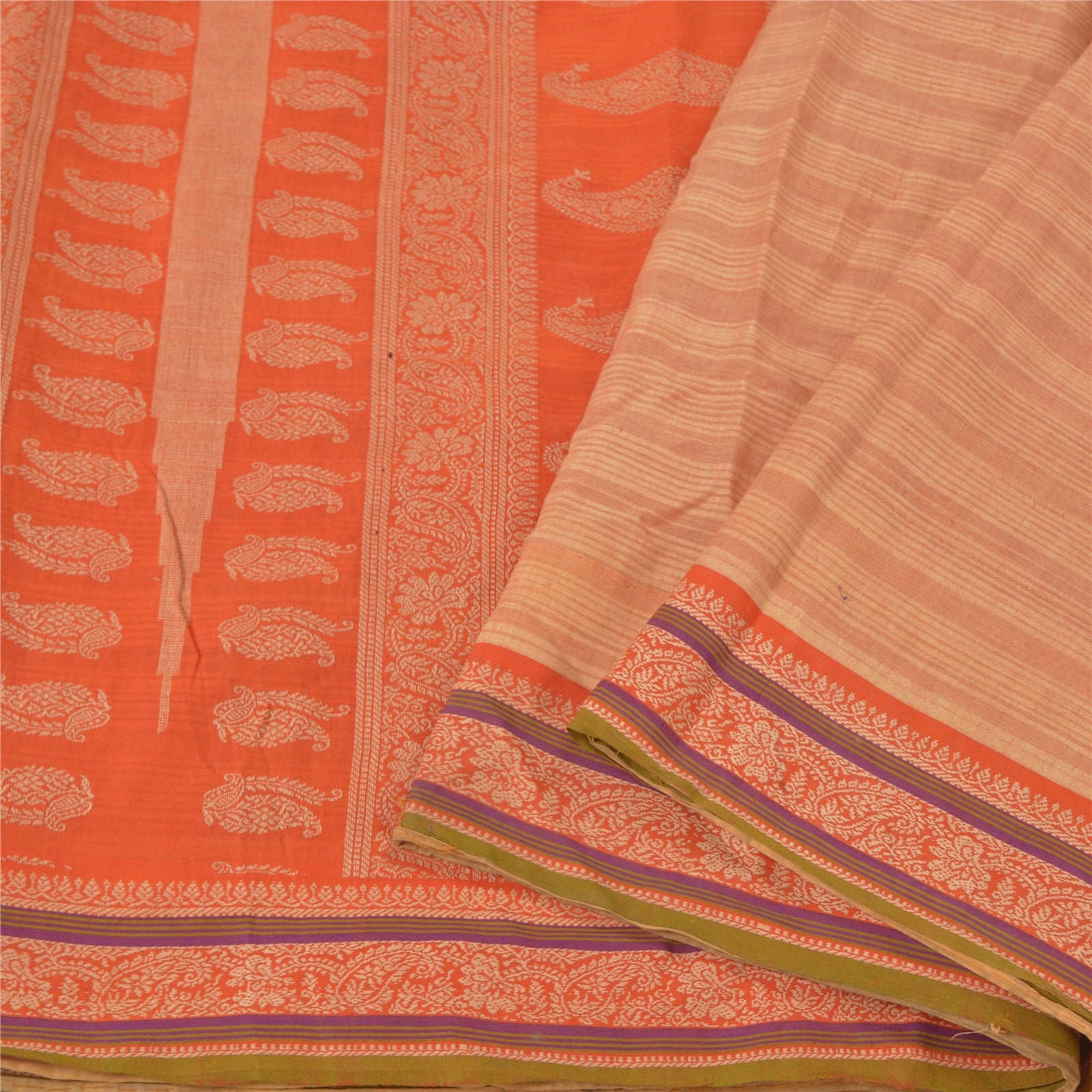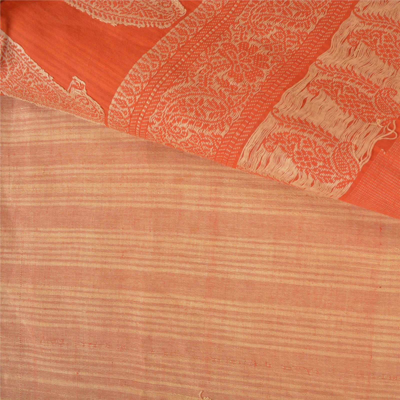 'VARENS FARVE ELLER NUANCE KAN VÆRE MØRKERE ELLER LYSERE END BILLEDET.' Smuk sari i fersken- og orange nuancer. Vævet sari i 100% ren bomuld. Pallu og kant har cremefarvet vævet trådarbejde med blomster- og paisleydesign. Sariens midte har vævet arbejde. Denne sari kan også bruges til forskellige kreative idéer. Brug den til kjoledesign, som tæppe, som vinduesdekoration, polstring, bordlinned og meget mere. Slip dine kreative safter løs. Internationale købere bedes bemærk: Importafgifter, skatter og gebyrer er ikke inkluderet i varens pris eller portoomkostninger. Disse gebyrer er købers ansvar. Kontakt venligst dit lands toldkontor for at finde ud af, hvad disse ekstra omkostninger vil være, inden du byder eller køber. Køber betaler told/skat. Det beregnes og opkræves forskelligt fra land til land. Som sælger har jeg ingen kontrol over det. Moms eller omsætningsafgift beregnes af platformen ved kassen. Toldgebyr skal betales ved levering.