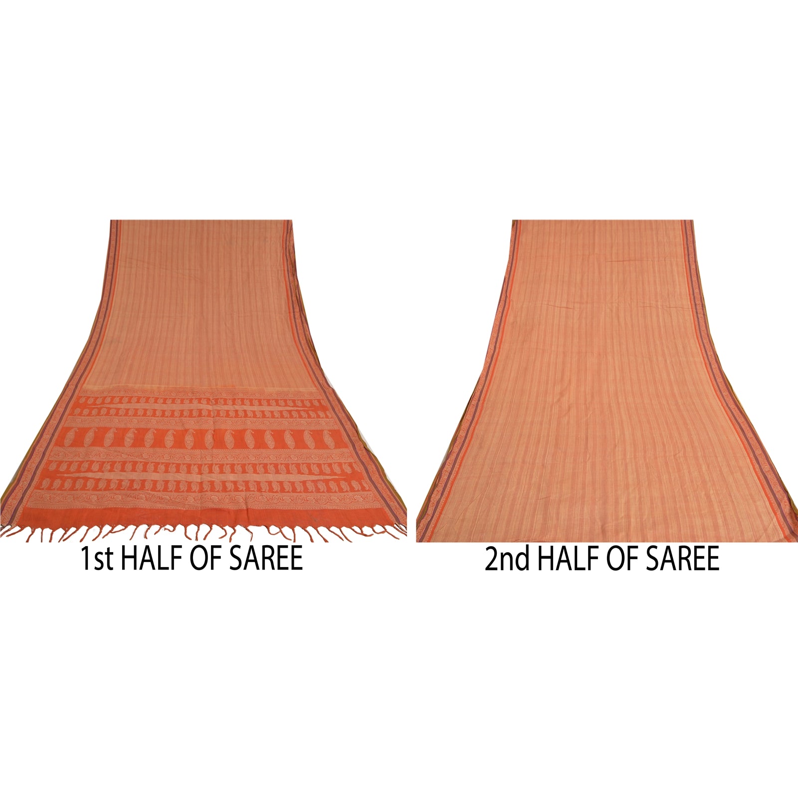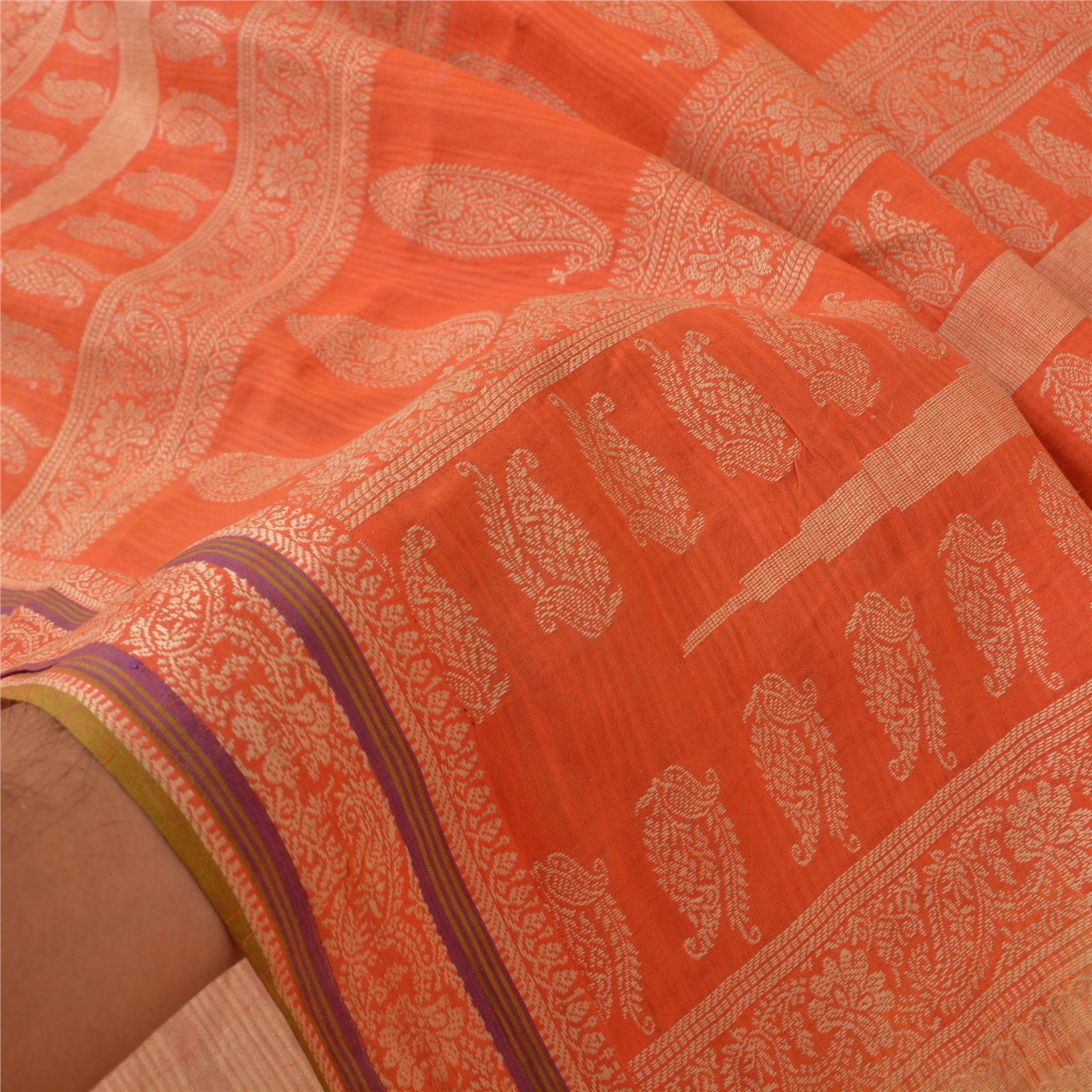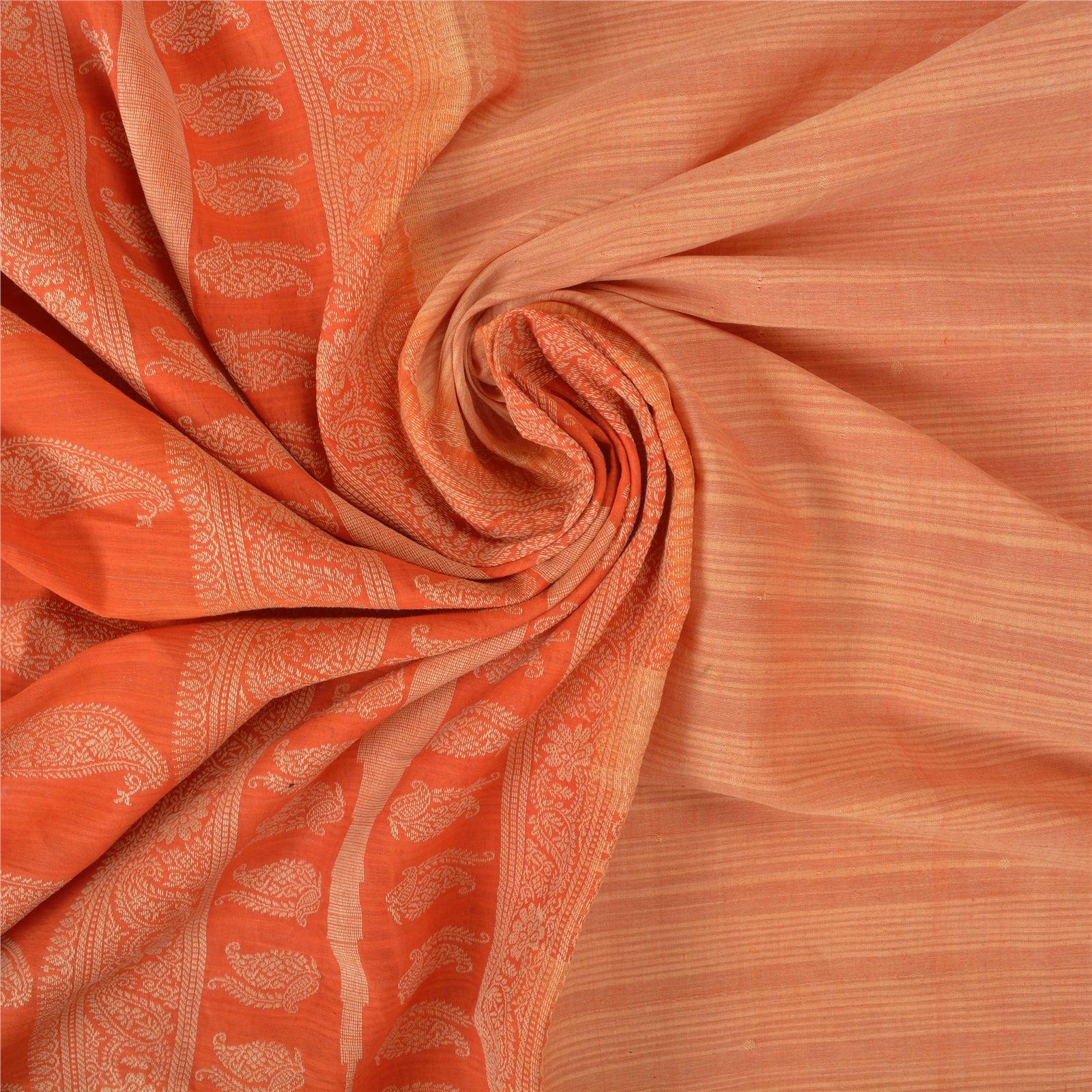 'VARENS FARVE ELLER NUANCE KAN VÆRE MØRKERE ELLER LYSERE END BILLEDET.' Smuk sari i fersken- og orange nuancer. Vævet sari i 100% ren bomuld. Pallu og kant har cremefarvet vævet trådarbejde med blomster- og paisleydesign. Sariens midte har vævet arbejde. Denne sari kan også bruges til forskellige kreative idéer. Brug den til kjoledesign, som tæppe, som vinduesdekoration, polstring, bordlinned og meget mere. Slip dine kreative safter løs. Internationale købere bedes bemærk: Importafgifter, skatter og gebyrer er ikke inkluderet i varens pris eller portoomkostninger. Disse gebyrer er købers ansvar. Kontakt venligst dit lands toldkontor for at finde ud af, hvad disse ekstra omkostninger vil være, inden du byder eller køber. Køber betaler told/skat. Det beregnes og opkræves forskelligt fra land til land. Som sælger har jeg ingen kontrol over det. Moms eller omsætningsafgift beregnes af platformen ved kassen. Toldgebyr skal betales ved levering.