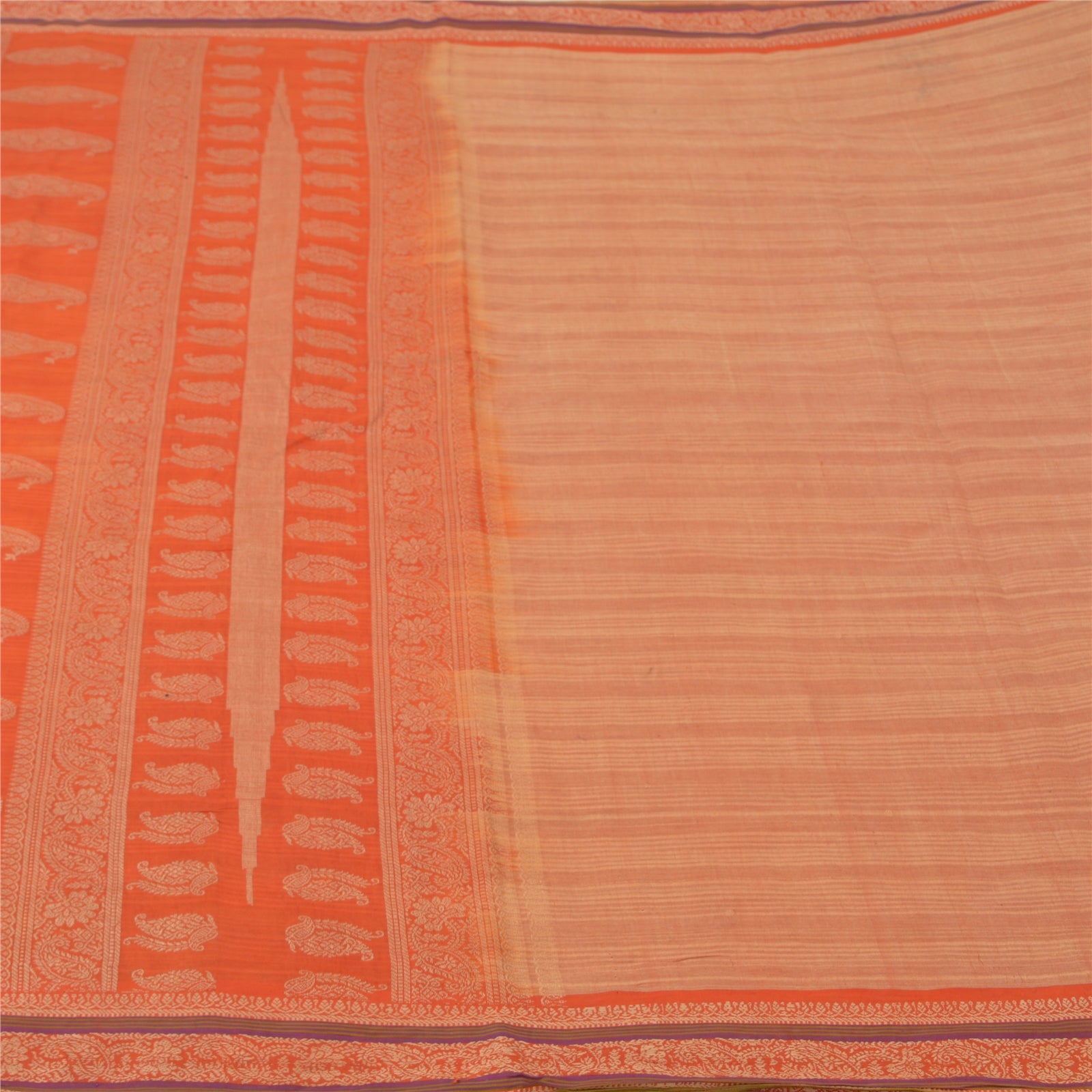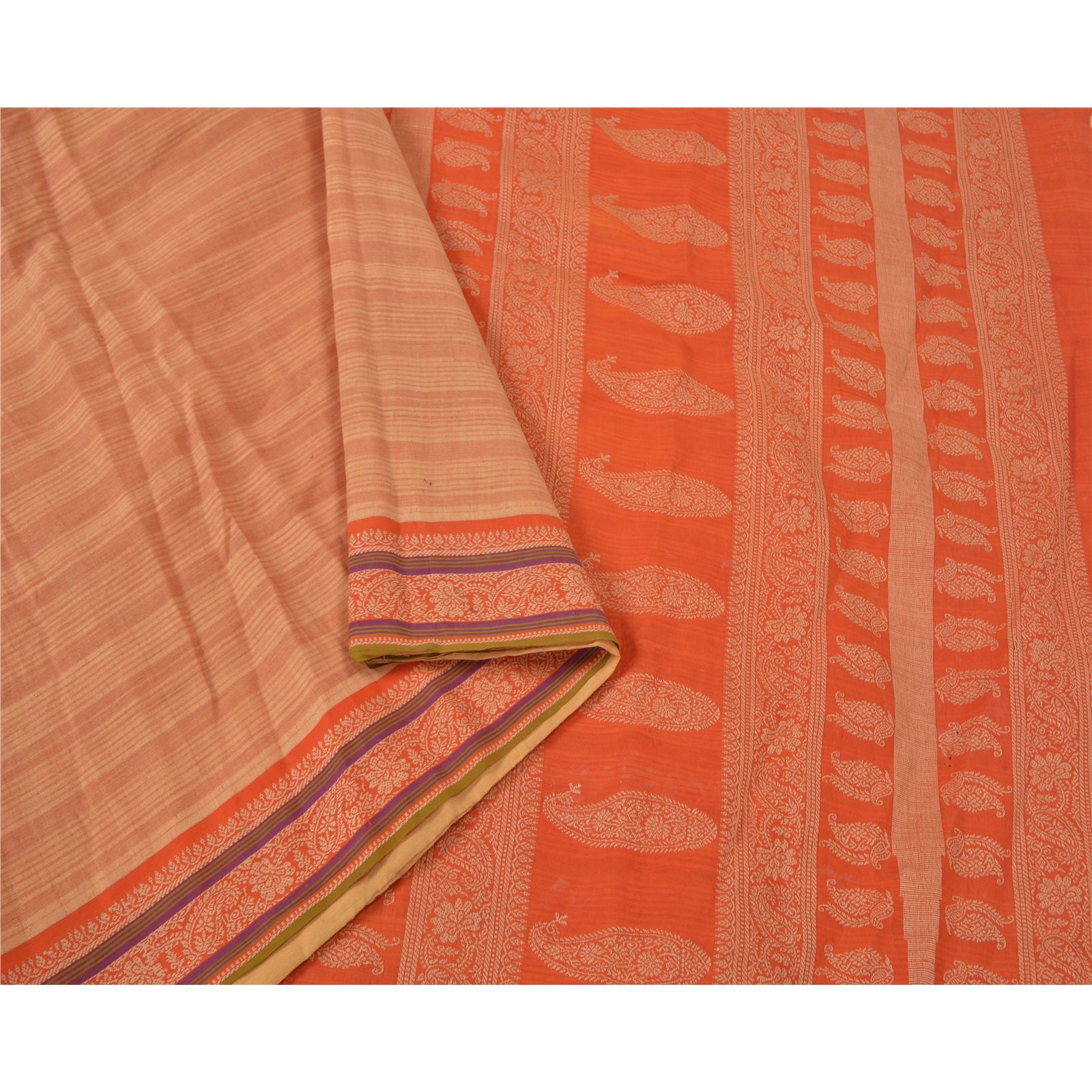 Sanskriti Vintage Peach Sarees 100% ren bomuldsvævet premium sari håndværk bæredygtigt stof