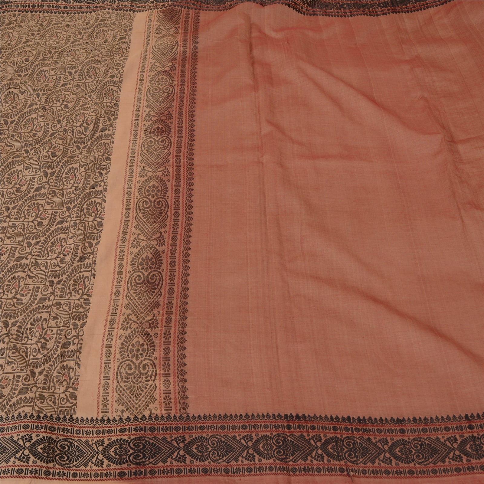 Sanskriti Vintage Peach Sarees Blandet Bomuld Vævet Premium Sari Håndværk 5 Yards Bæredygtigt Stof