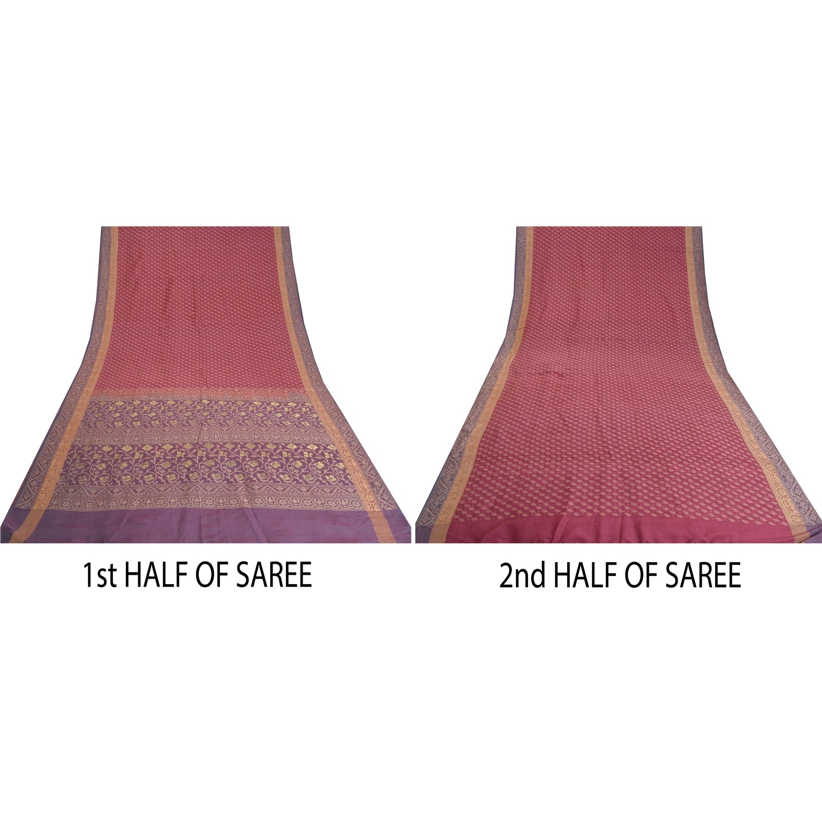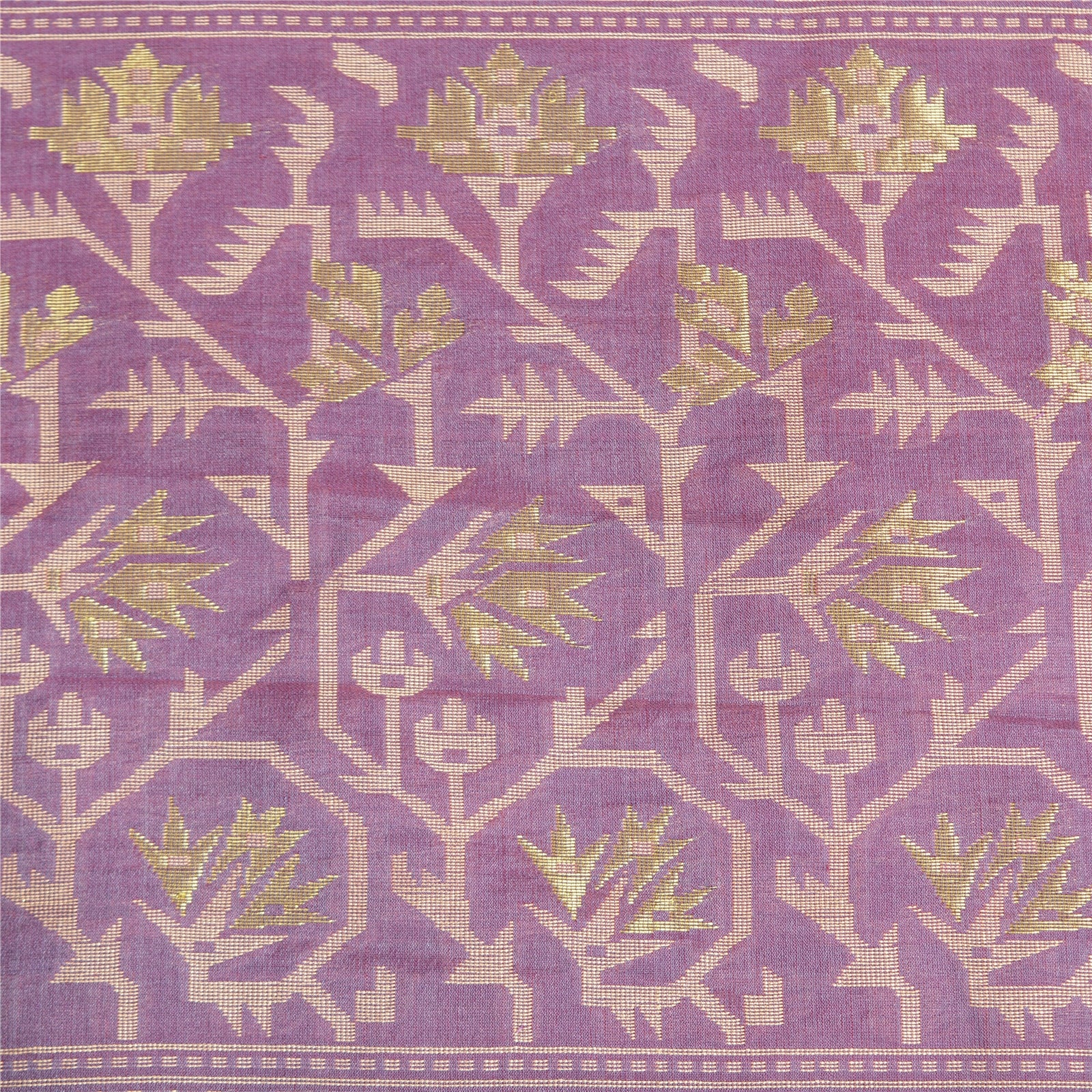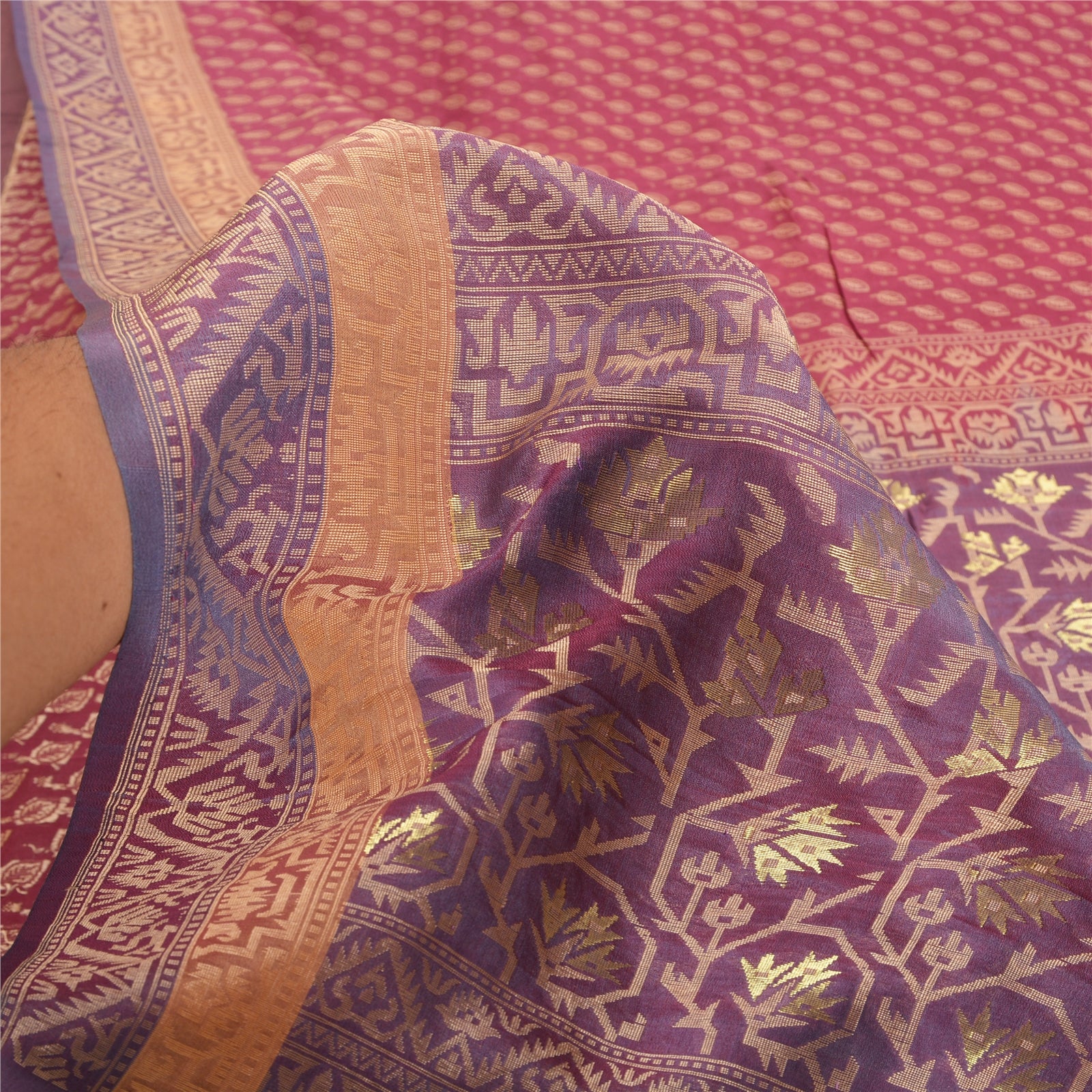 Sanskriti Vintage Pink/Lilla Sarees Pure Silke Woven Jamdani Special Sari Sustainable Stof