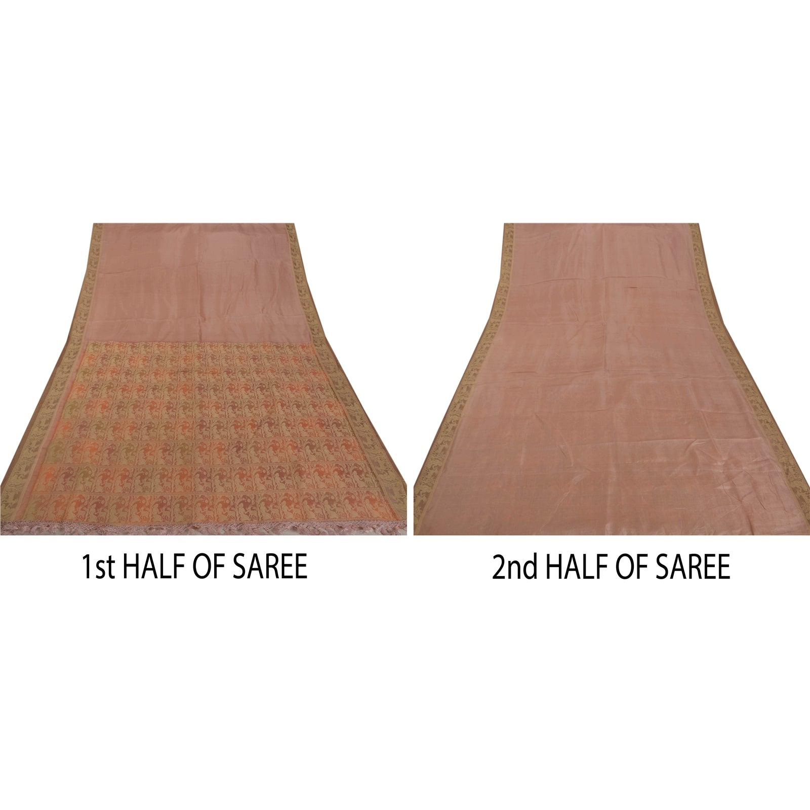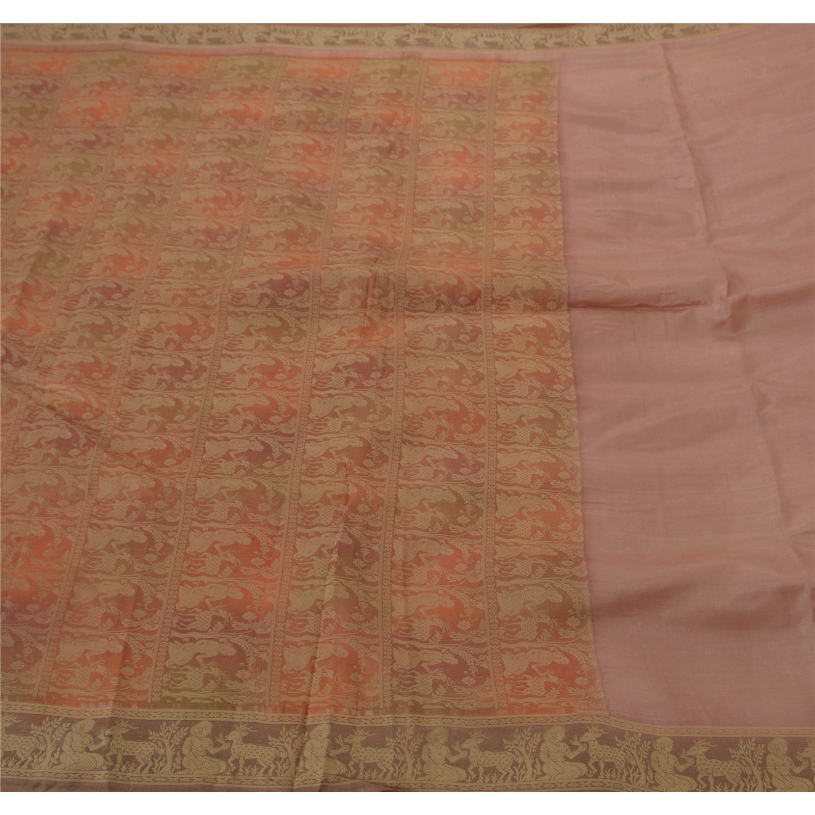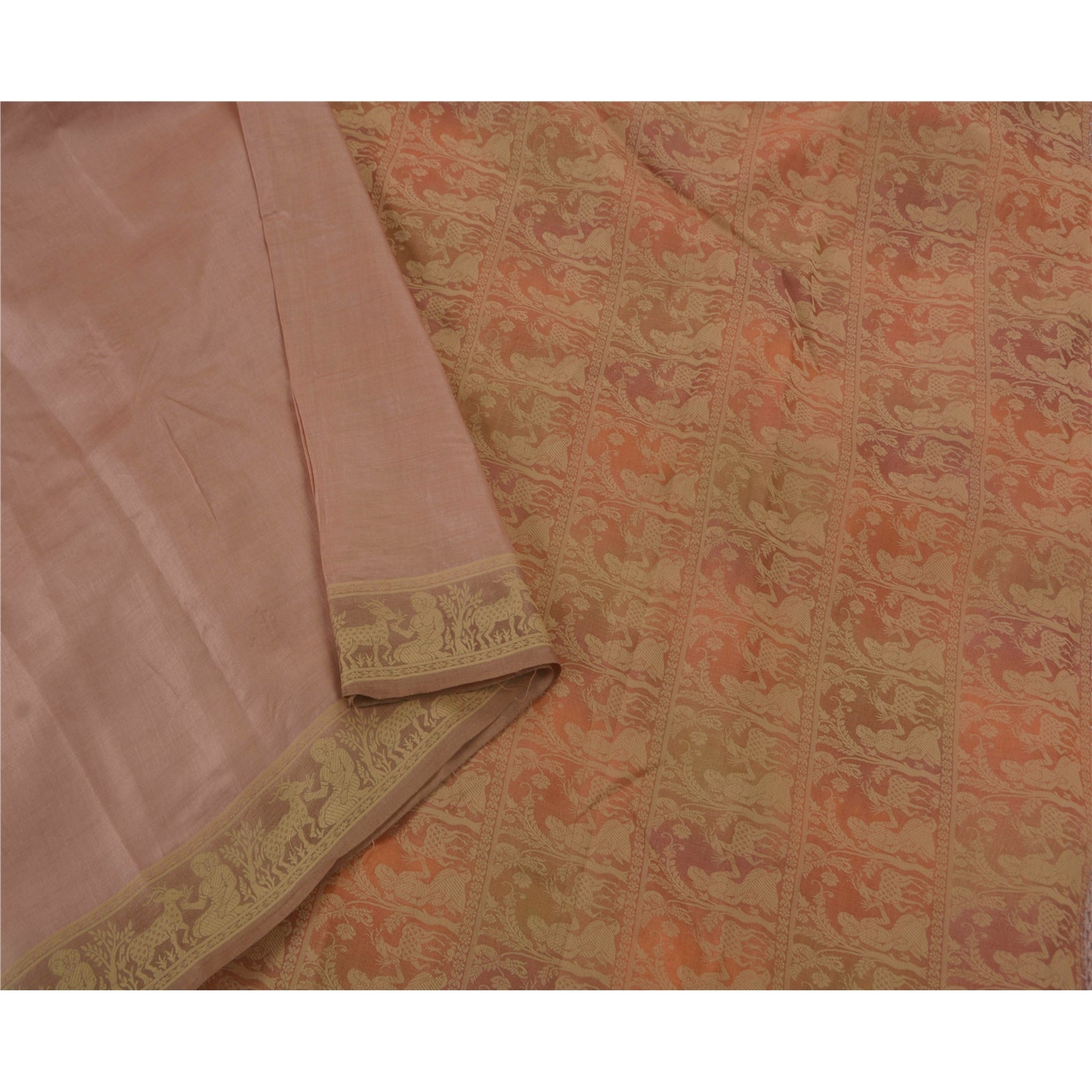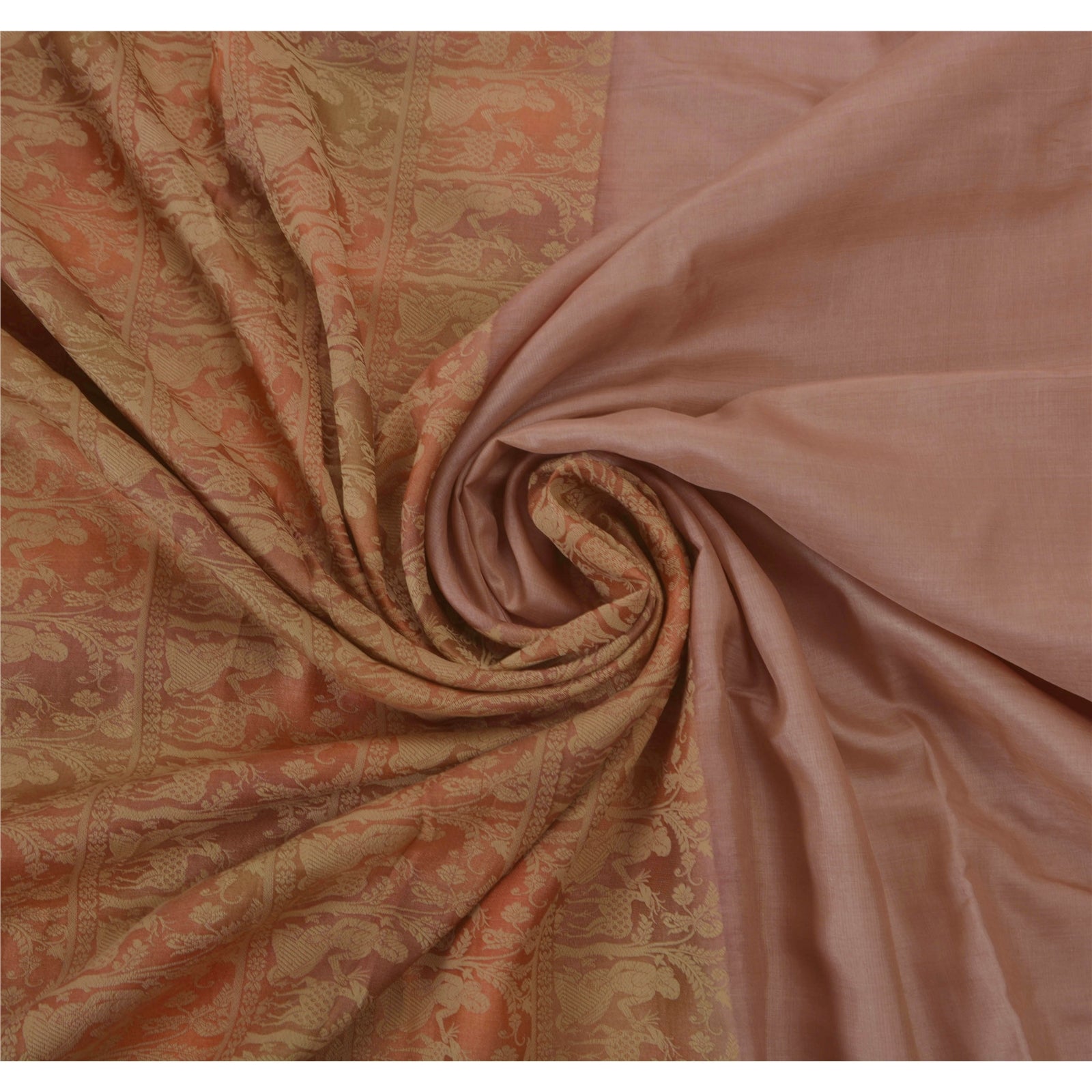 Sanskriti Vintage Pink Saree Pure Silk Woven Baluchari 5 YD Fabric Craft Sari