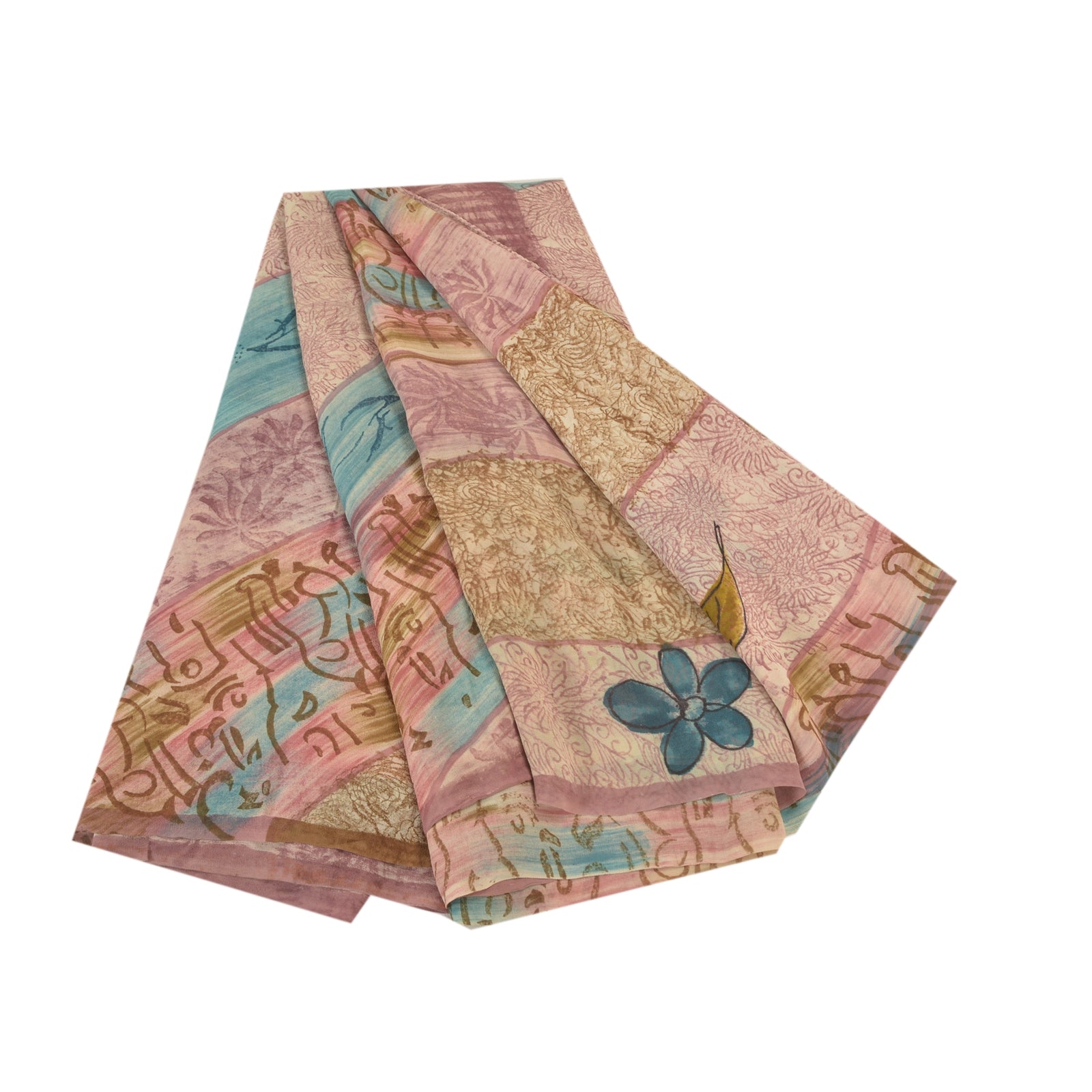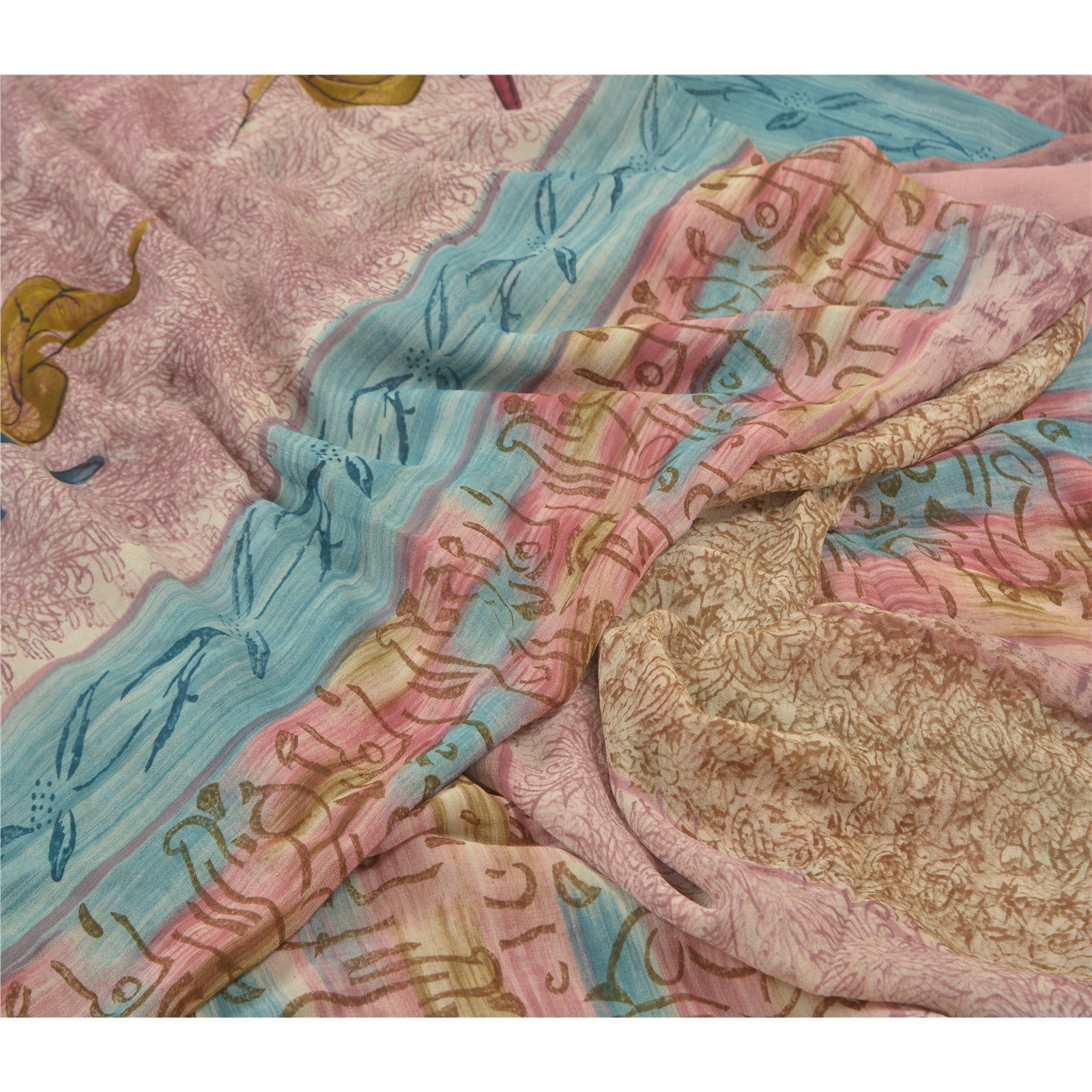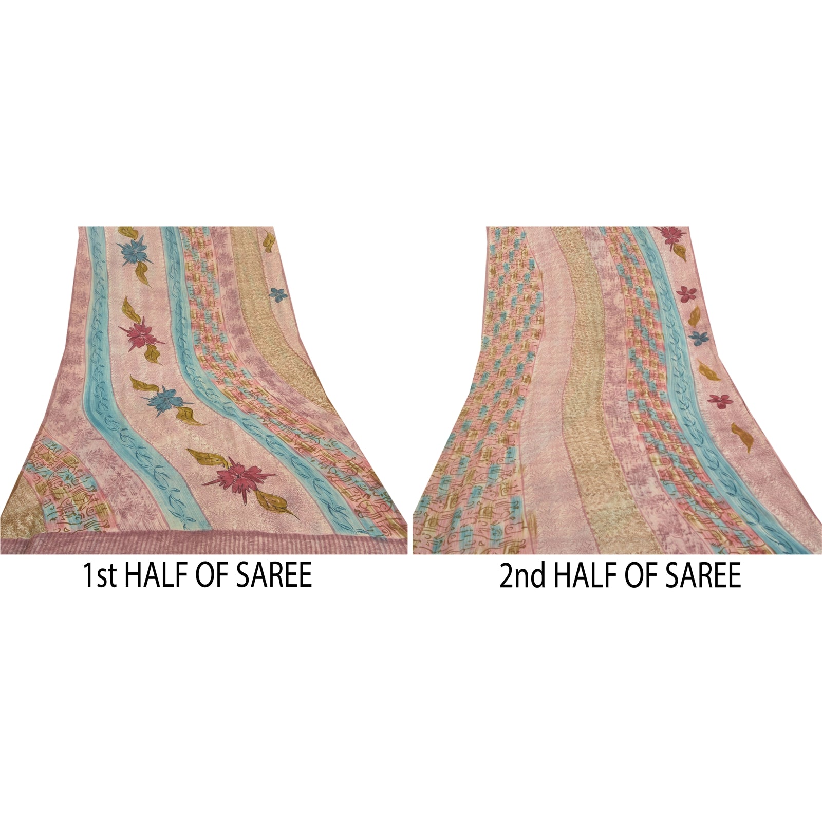 Sanskriti Vintage lyserøde sarier 100% ren georgette-trykt sari håndlavet bæredygtigt stof