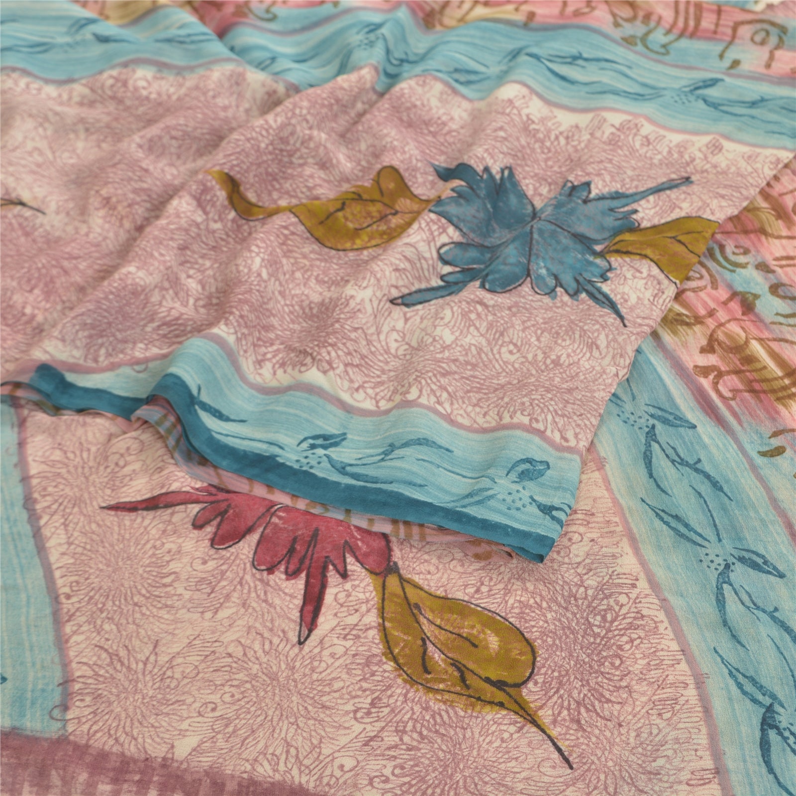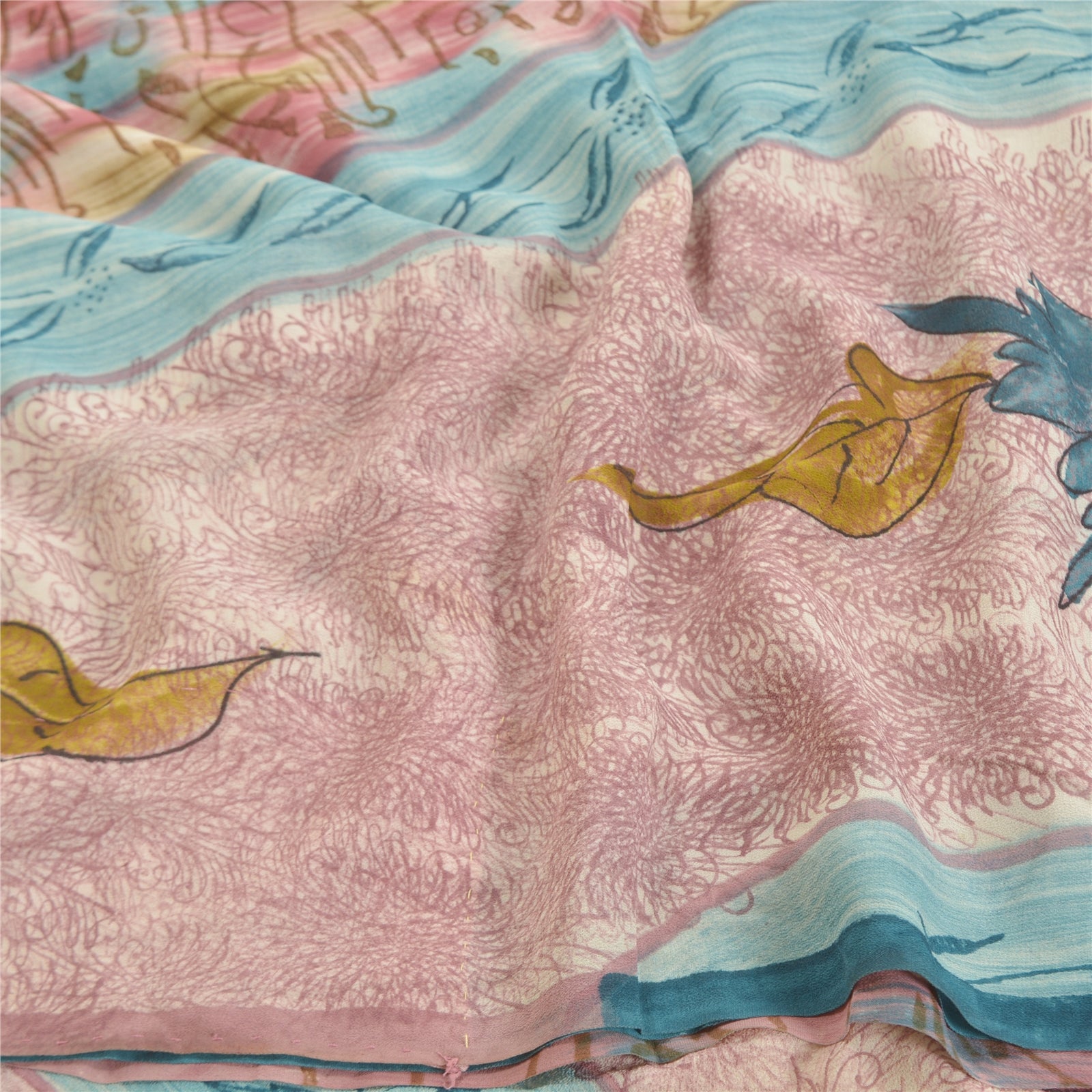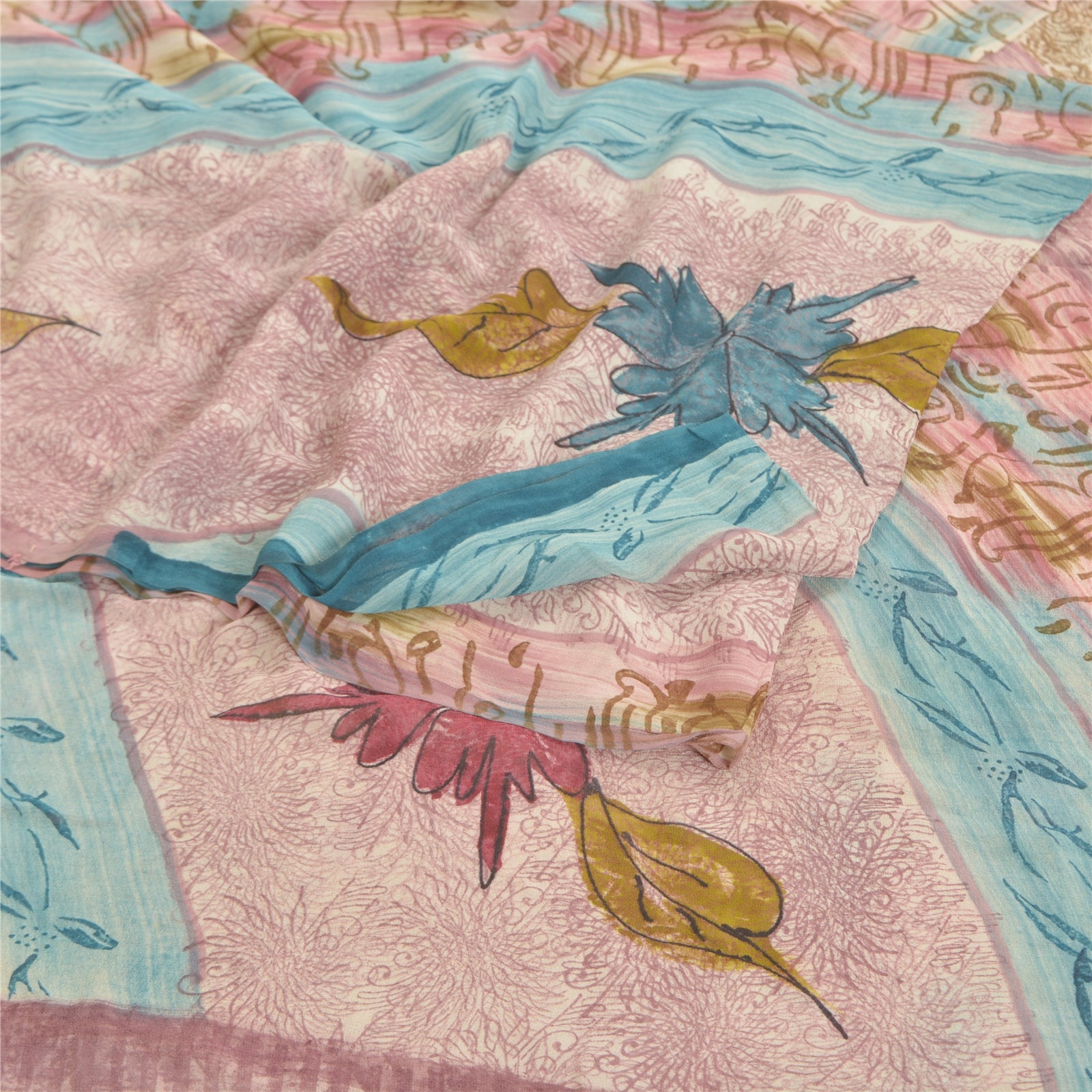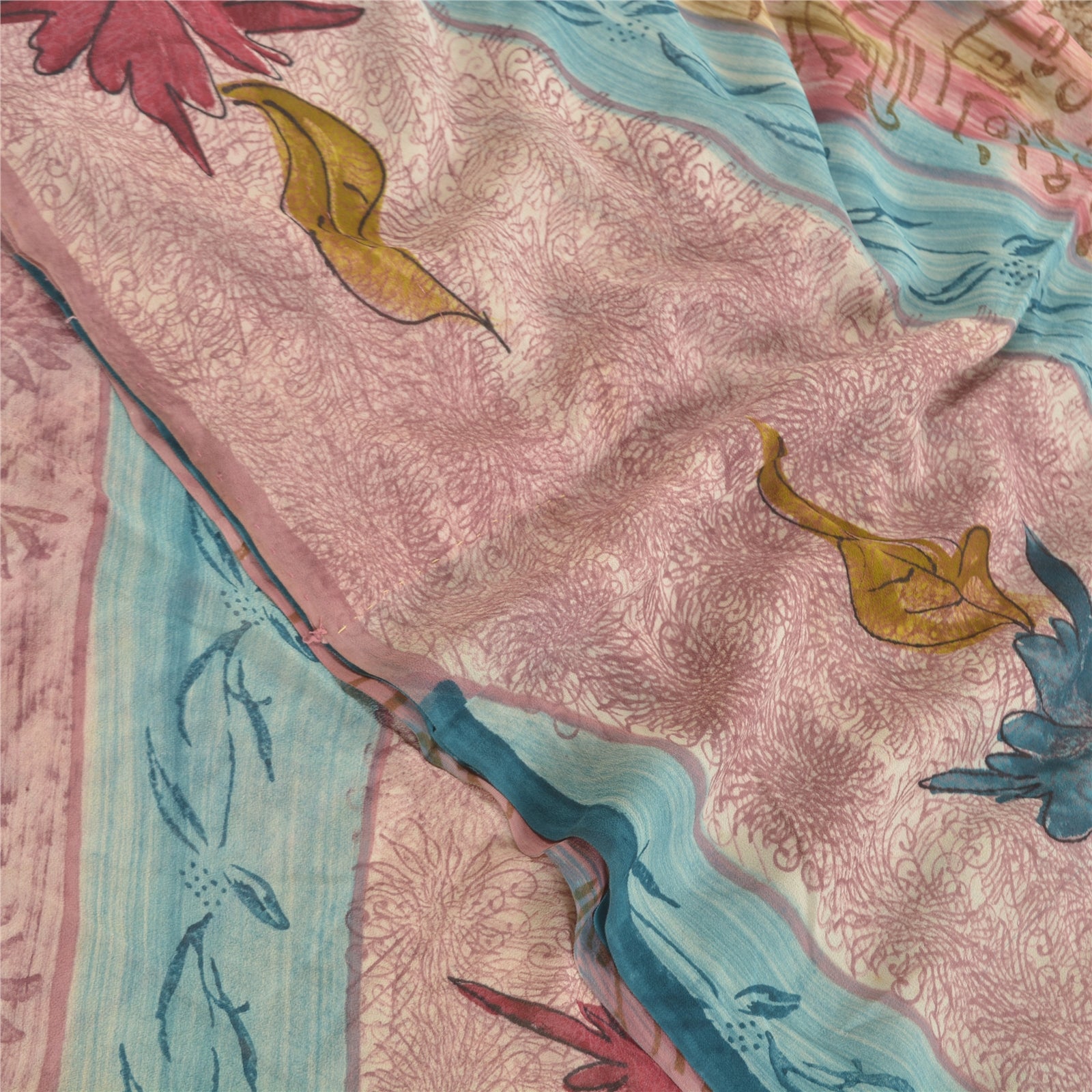 Sanskriti Vintage lyserøde sarier 100% ren georgette-trykt sari håndlavet bæredygtigt stof