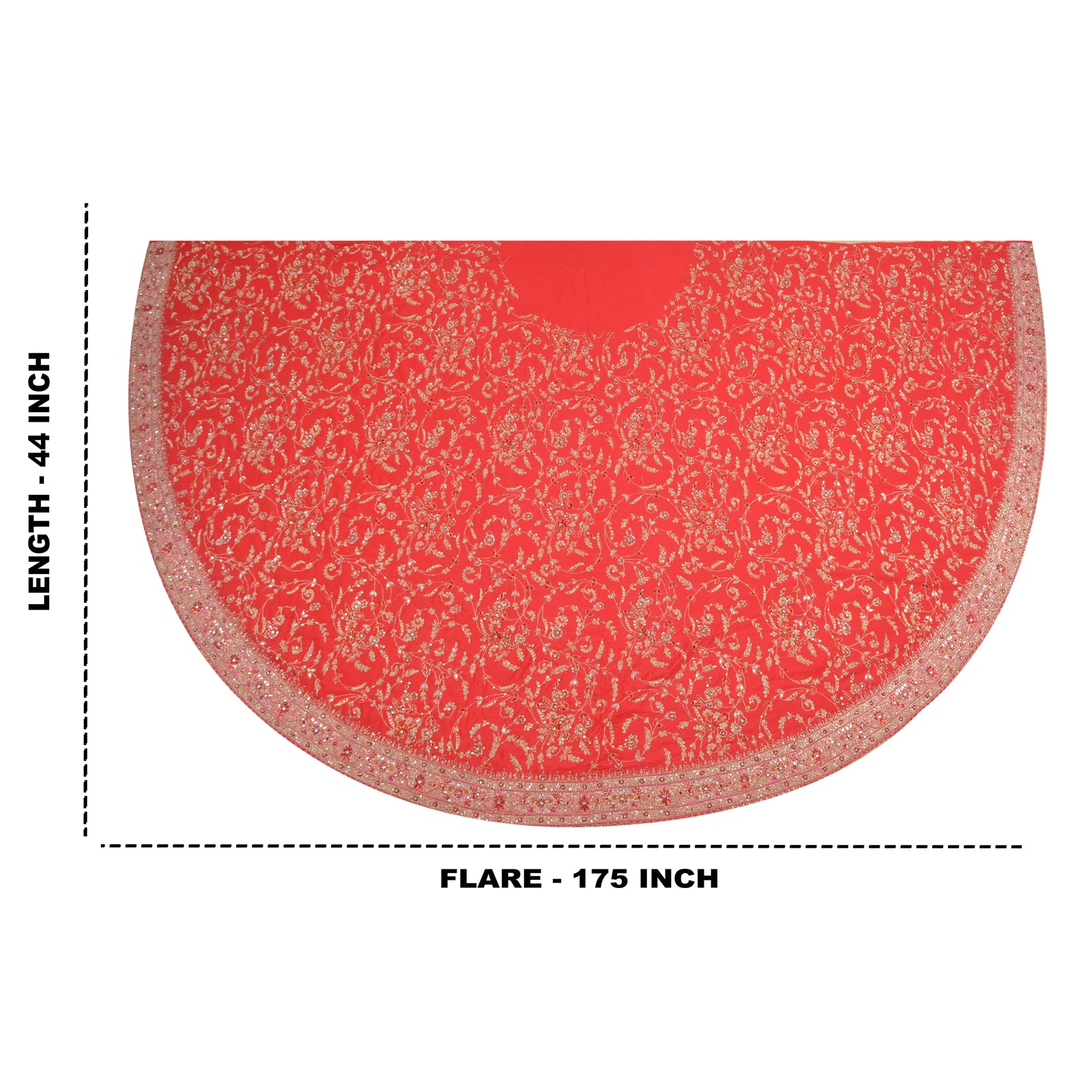 Sanskriti Offers This Vintage Red color Unstitched Long Skirt Made With 100% Pure Silk Base Fabric. Antique very heavy hand embroidered skirt. It is fully covered with pure metallic golden zari/dabka work, golden/red zardozi work, white/red rhinestone, golden/silver sequins, pink fabric patch work. It is a unstitched skirt with a length of 44 inch and flare of the skirt is 175 inch. Flaunt this heavy skirt with ethnic tops, blouses or kurtis at parties, weddings and other occasions. Outstanding hand embroidered work skirt with beautiful craftsmanship which I am sure you will truly appreciate.