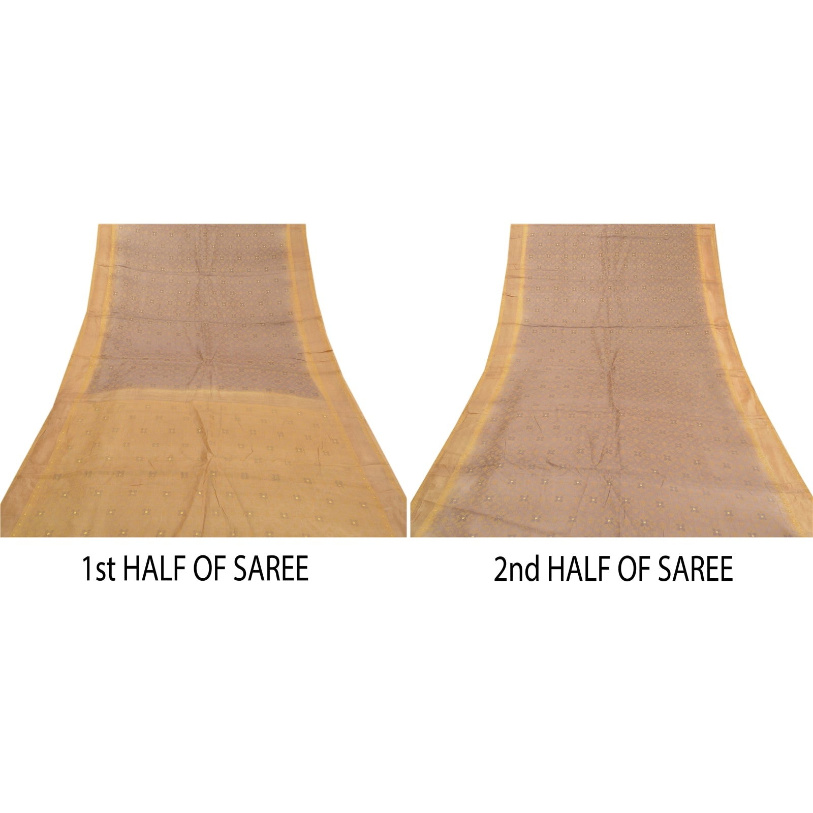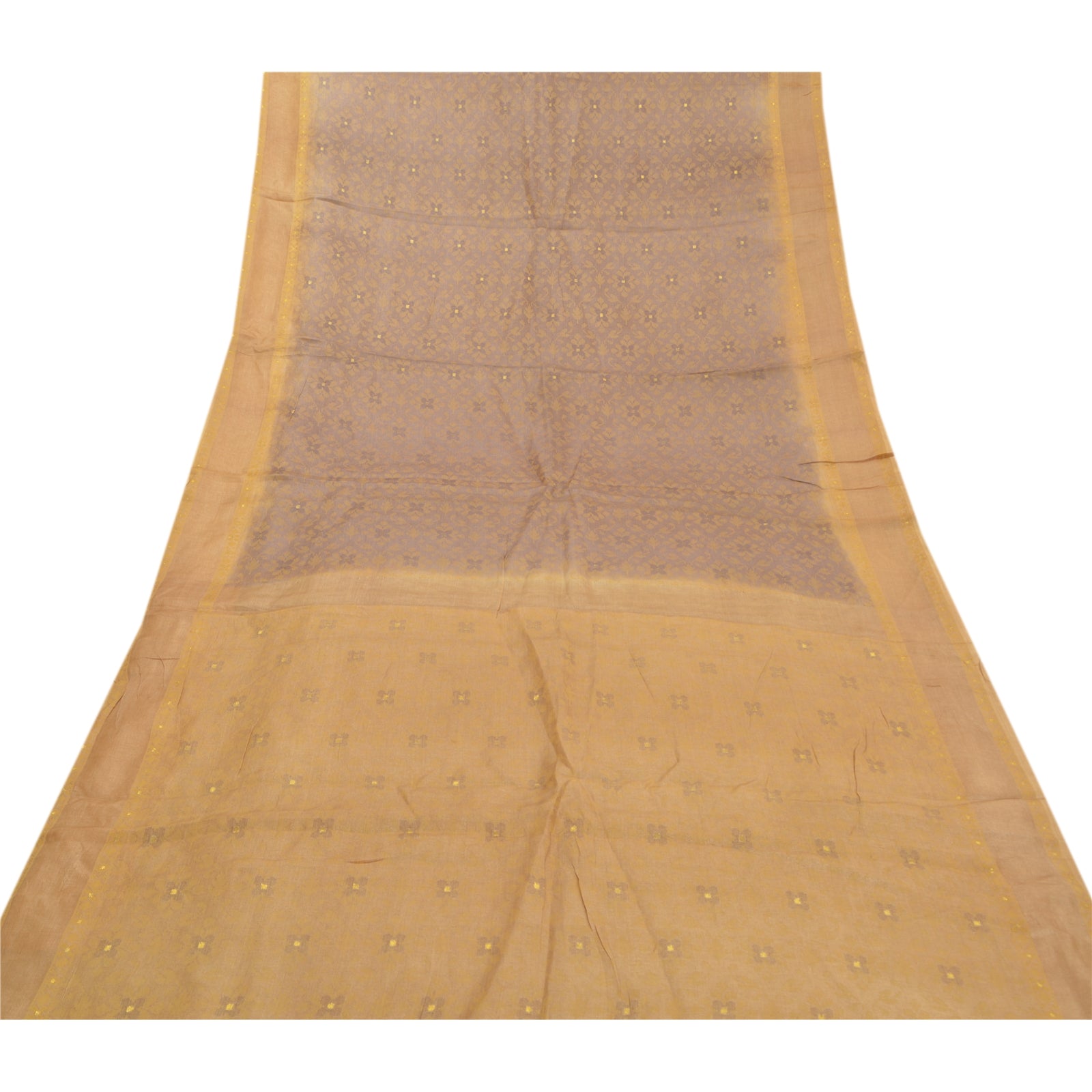Smuk håndvævet sari i 100% ren silke i en lilla og beige nuance. Pallu & Border har gylden zari og trådvævet arbejde med blomstermotiver. Du kan se lignende vævet blomsterdesign i midten af sarien. Denne sari kan også bruges til forskellige kreative ideer. Brug den til kjoledesign, som tæppe, som vinduesdekoration, polstring, bordlinned og meget mere. Lad dine kreative safter få løb. For købere i USA - Enkelt vare sendes via anbefalet luftpost, køb 1 mere for at få FedEx.