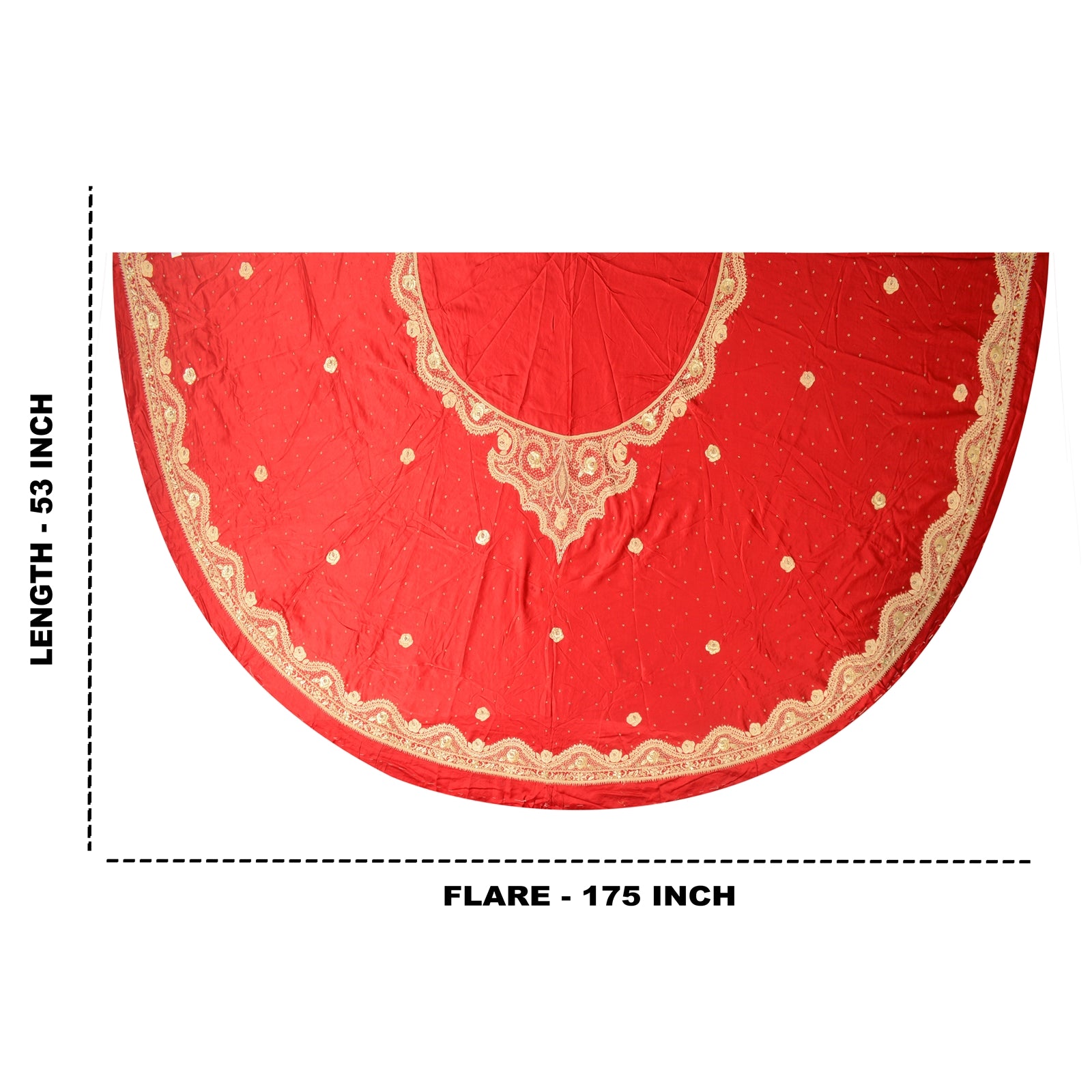 'THE ITEM COLOR OR SHADE MAY BE DARKER OR LIGHTER THAN THE PICTURE.' Sanskriti offers this vintage red color long skirt made with 100% Pure Satin Silk. Antique very heavy hand embroidered skirt. There is so much antique work done in this one, it is fully covered with zardozi work. Bottom of the skirt has rose floral & leaf design embellished with pure metallic golden zardozi & A D stone work. All over skirt has similar work with rose floral design . It is a unstitched skirt with a length of 53 inch and flare of the skirt is 175 inch. Flaunt this heavy skirt with ethnic tops, blouses or kurtis at parties, weddings and other occasions. The quality of zari work is amazing, its a pure metallic zari. Some zari work gives an antique look. 'International buyers please note: Import duties, taxes, and charges are not included in the item price or postage cost. These charges are the buyer's responsibility. Please check with your country's customs office to determine what these additional costs will be prior to bidding or buying. Buyer will pay custom duty/tax. It is calculated and charged differently by every country. As a seller I do not have any control over it. VAT or sales tax is calculated by the platform at the time of checkout. Customs charge is payable at the time of delivery.