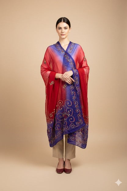 • Brand: • Product Type: Dupatta / Stole / Scarf / Veil • Fabric: Pure Georgette Silk • Color: Red & Purple • Work: Hand Beaded Embroidery With Golden Dori, Zardozi, Dabka, Glass Beaded Work. • Design: All-Over Floral Vine Embroidery With Decorative Borders • Texture: Lightweight, Sheer, Soft Flowy Drape • Length: Long Dupatta / Stole (Approx. Standard Length) • Condition: Vintage / Pre-Owned • Usage: Neck Scarf, Head Veil, Bridal Styling, Festive Wear, Layering Piece • Occasion: Wedding, Party, Ethnic Wear, Special Occasions • Craft Use: Ideal For Upcycling, Fashion Design, Or Decor Projects • Origin: India The Item Color Or Shade May Be Darker Or Lighter Than The Picture.' International Buyers Please Note: Import Duties, Taxes, And Charges Are Not Included In The Item Price Or Postage Cost. Buyer Will Pay Custom Duty/Tax,Vat, And Any Applicable Charges At The Time Of Delivery. Hd-7879