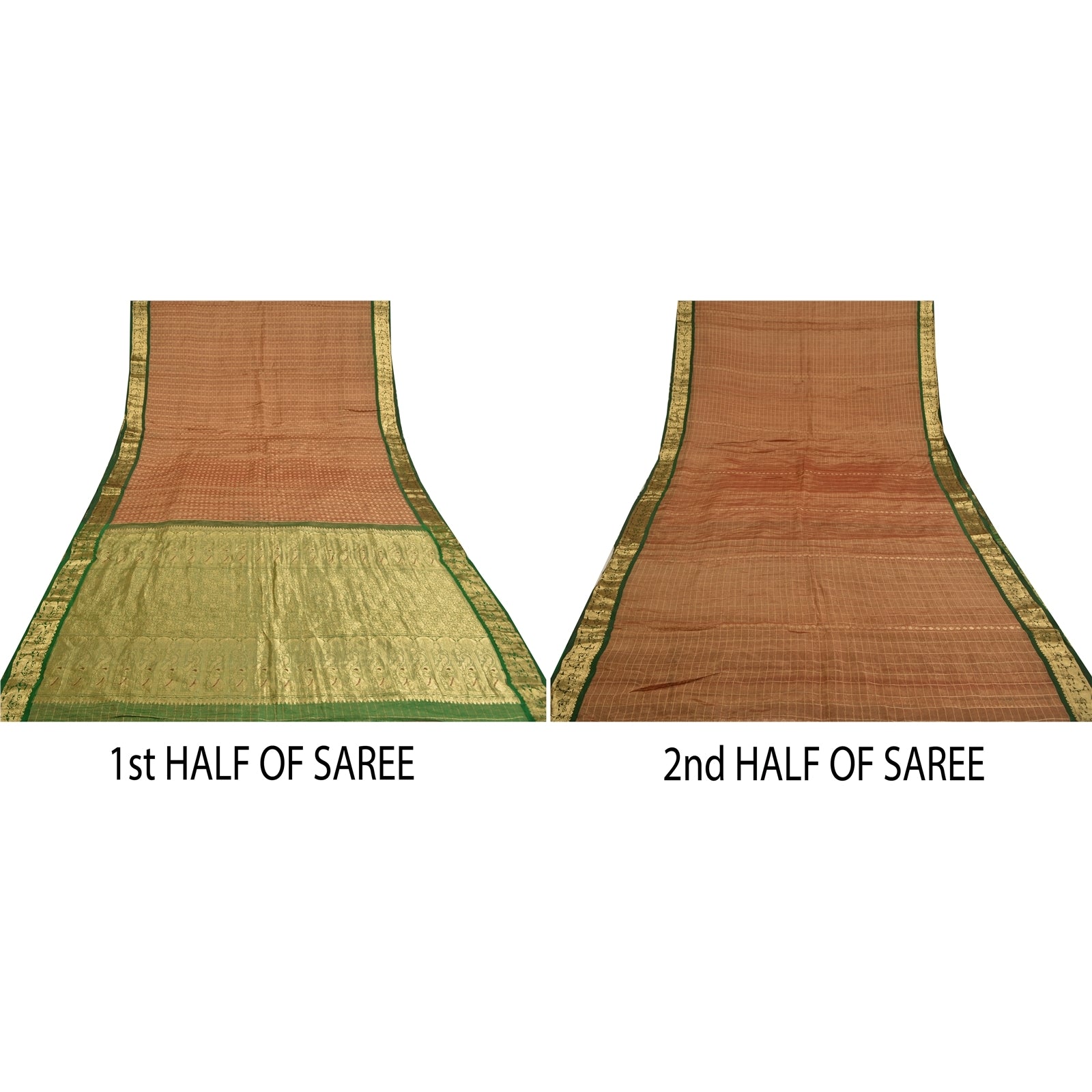 This Vintage Green & Golden Color Woven Brocade/Banarasi Heavy Saree Which Is Crafted With 100% Pure Base Fabric. The pallu & border sari features floral, peacock & pot design with pure metallic golden zari work. You can see similar zari grid pattern in center part of the sari. Versatile Uses-Crafting, Repurpose, Creative Sewing Project, Dressmaking, Kaftans, Use It As A Sari, Window Dressing, Upcycling, Sarongs, Throw,Table Linen,Decorative Fabric, Sustainable Indian Fabric. THE ITEM COLOR OR SHADE MAY BE DARKER OR LIGHTER THAN THE PICTURE.' International buyers please note: Import duties, taxes, and charges are not included in the item price or postage cost. Buyer will pay custom duty/tax,VAT, and any applicable charges at the time of delivery. HS-3034