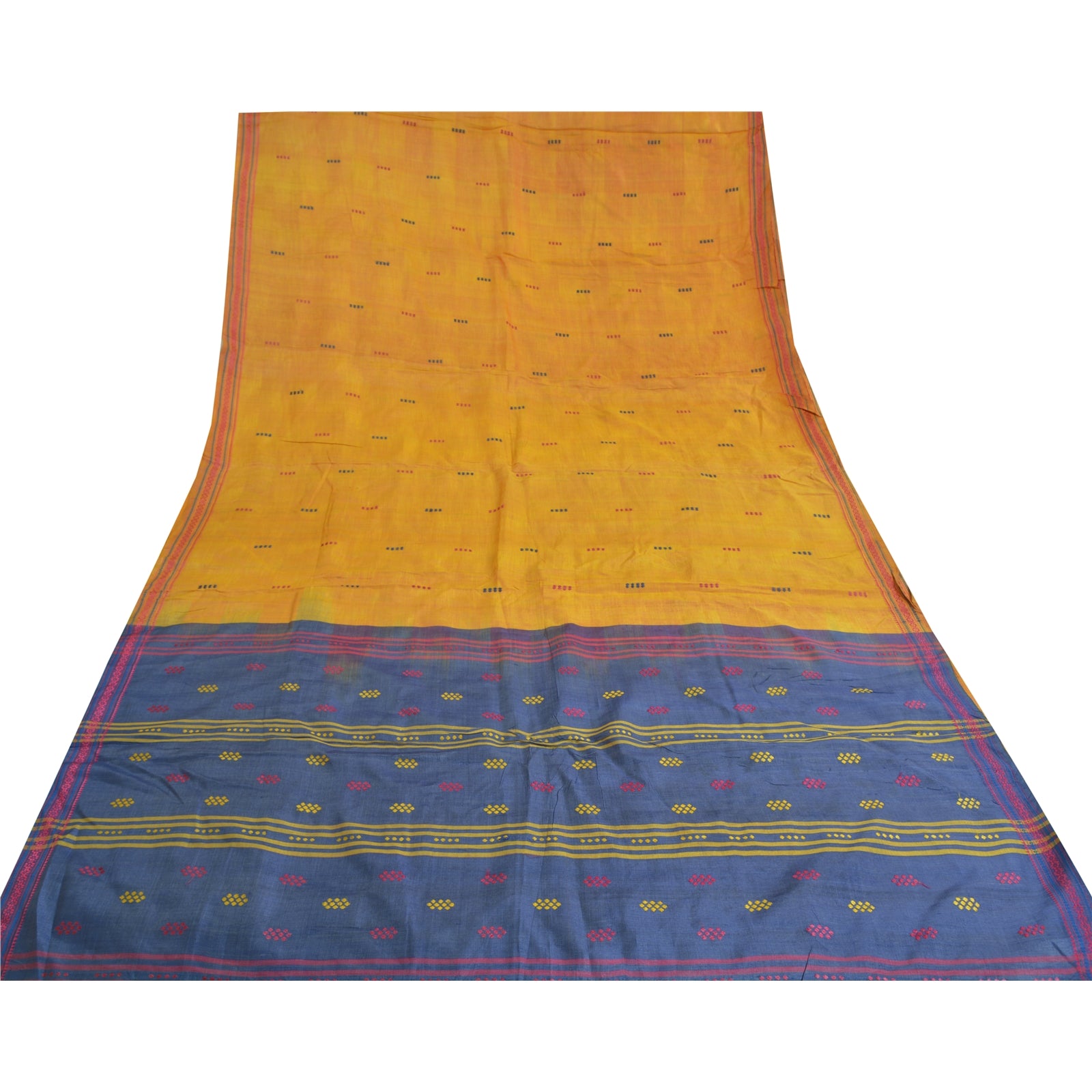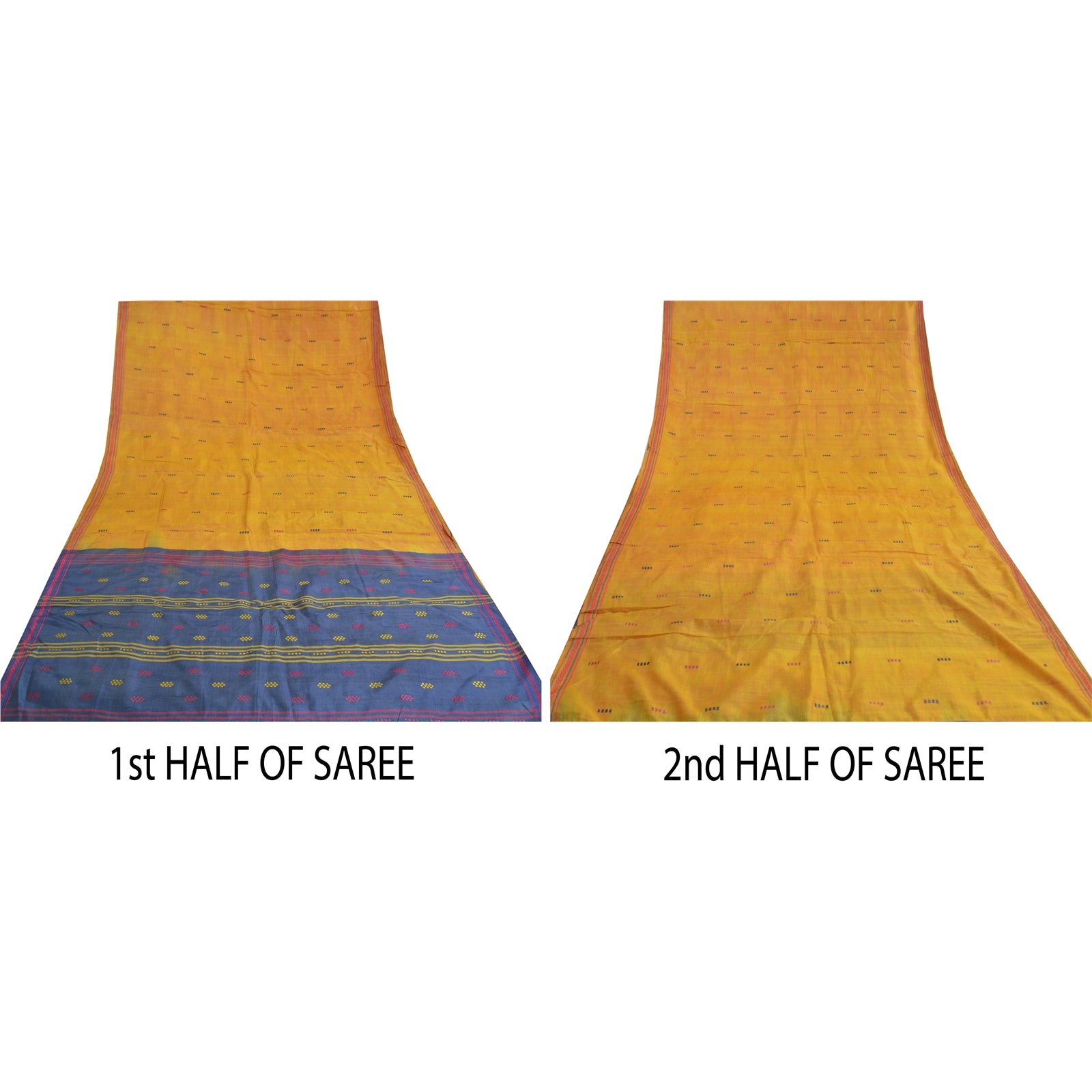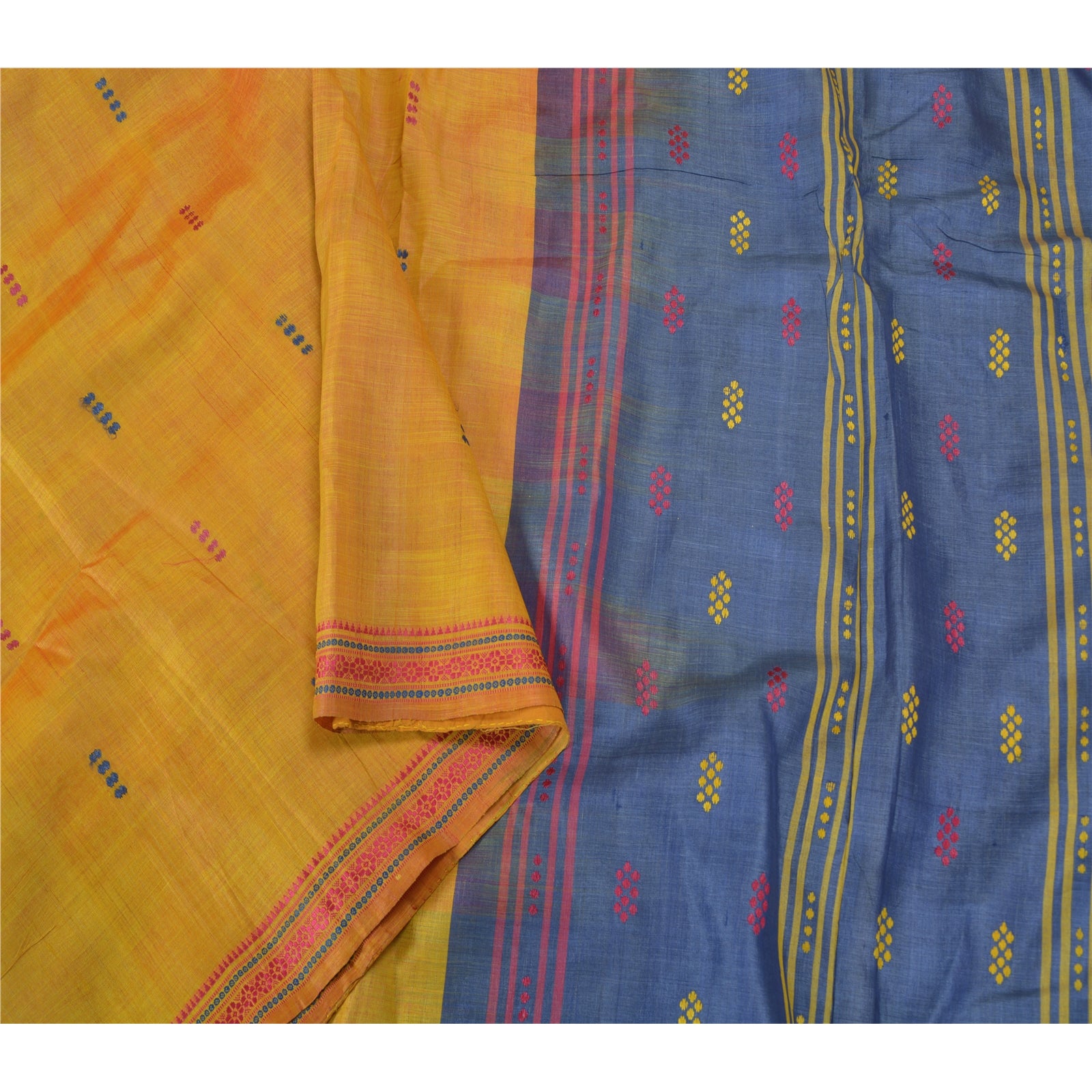Sanskriti Vintage Safran Tunge Indiske Sarier Ren Silke Håndvævet Sari Bæredygtigt Stof