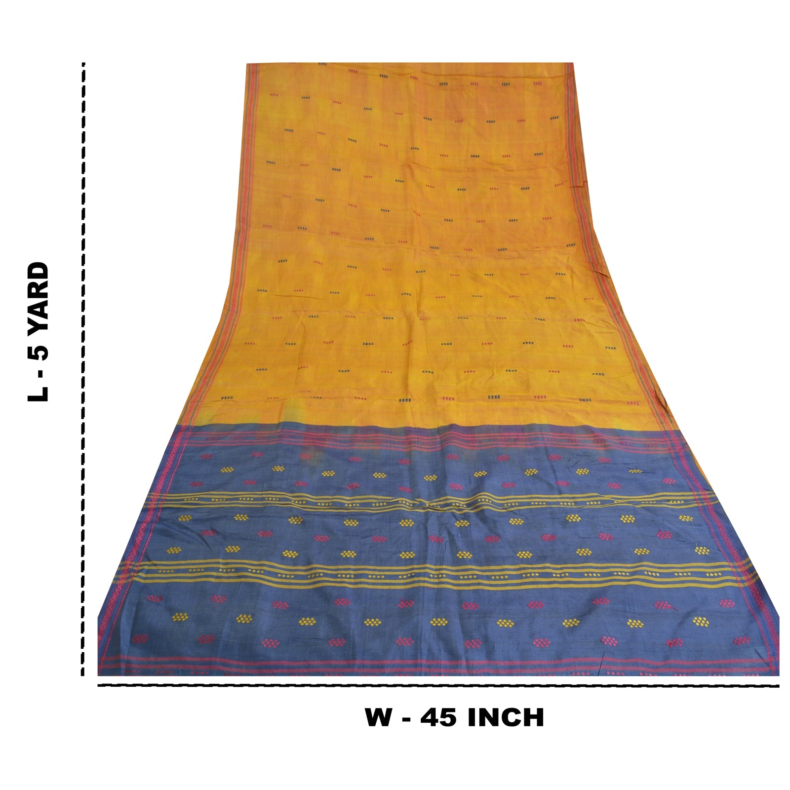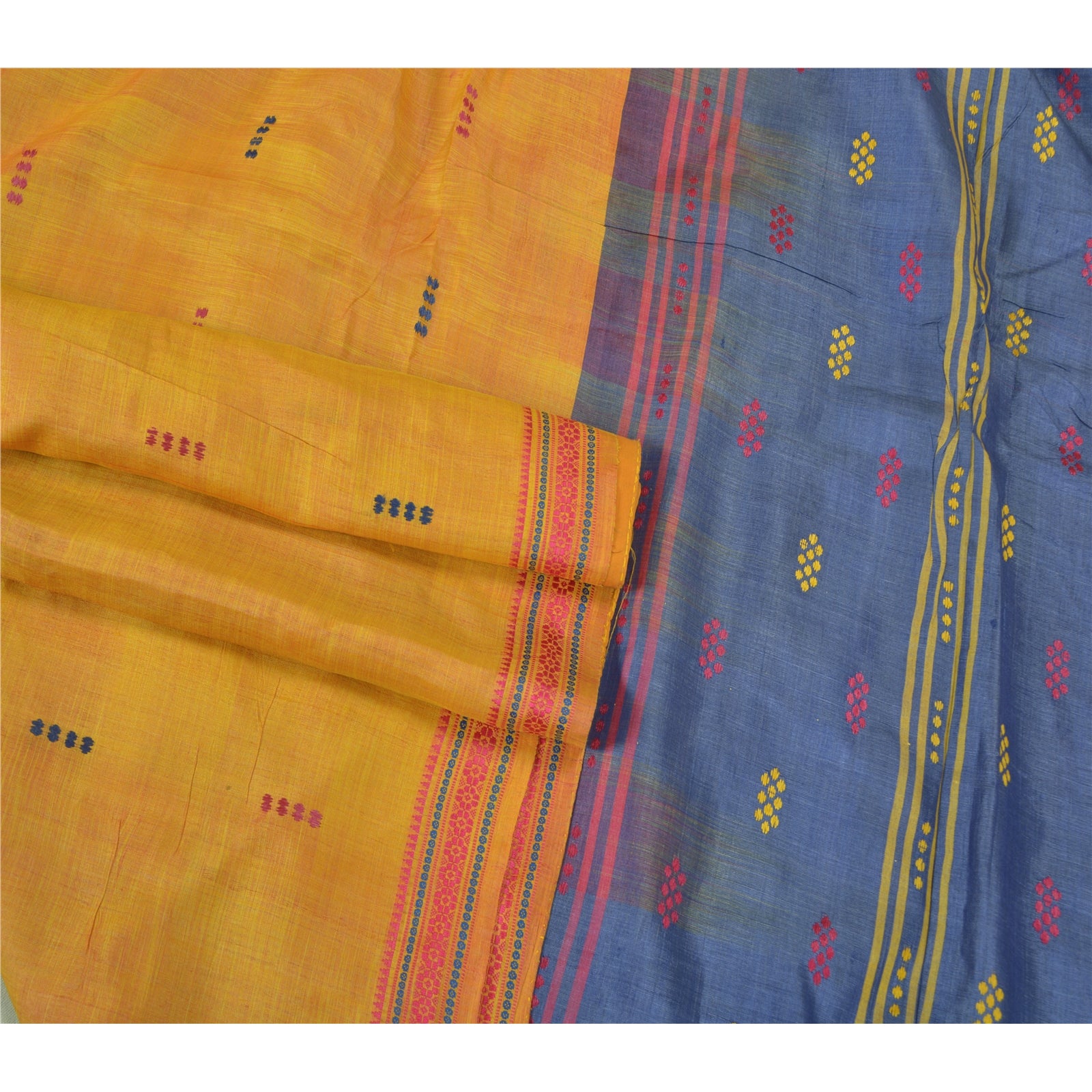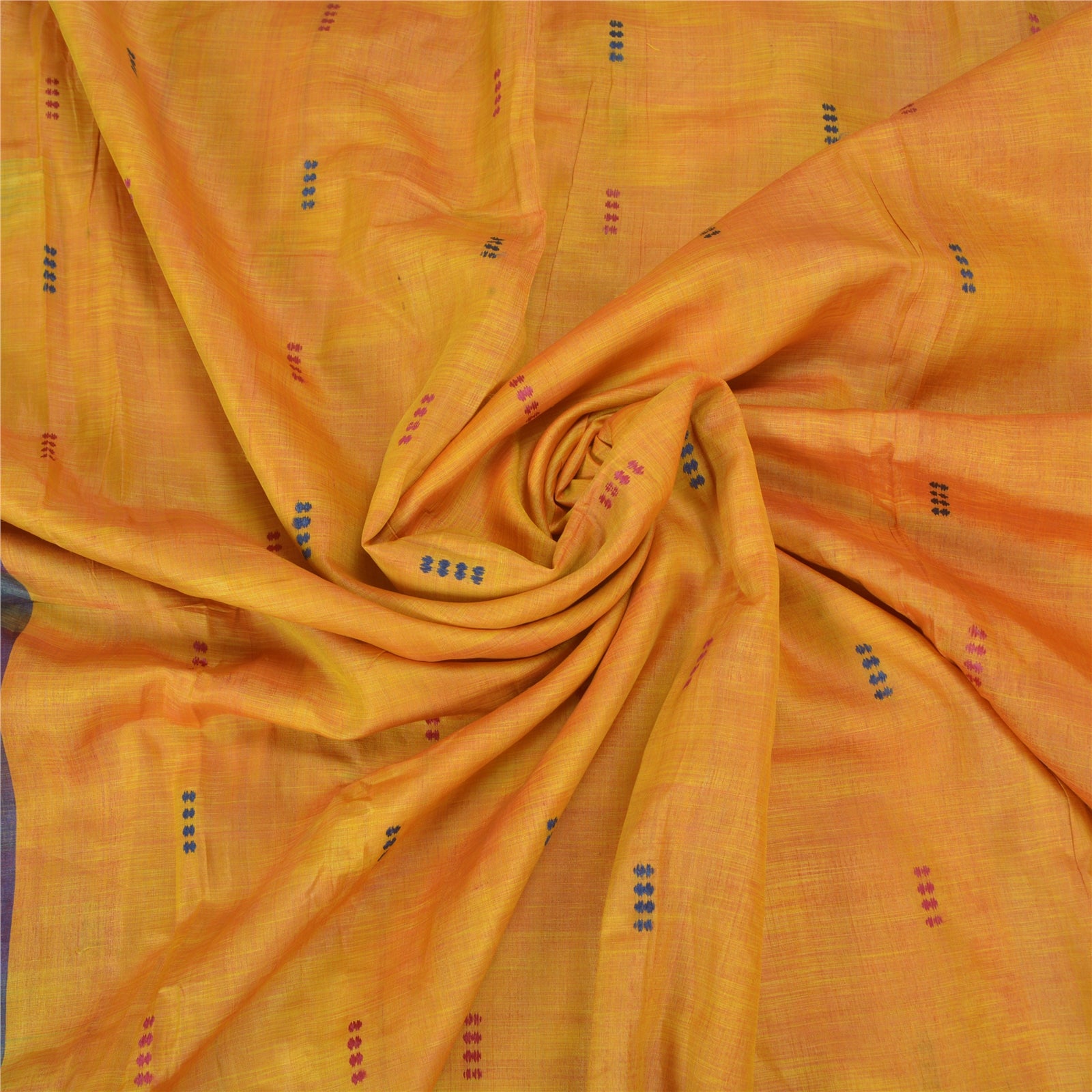 Sanskriti Vintage Safran Tunge Indiske Sarier Ren Silke Håndvævet Sari Bæredygtigt Stof