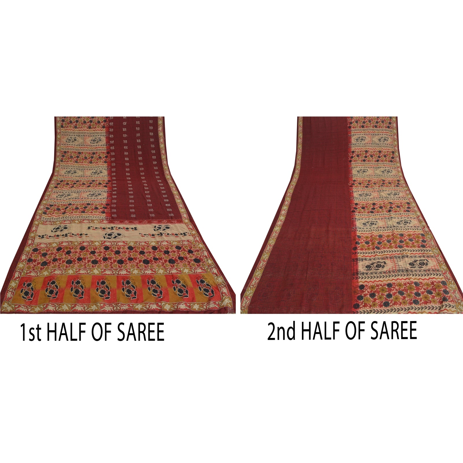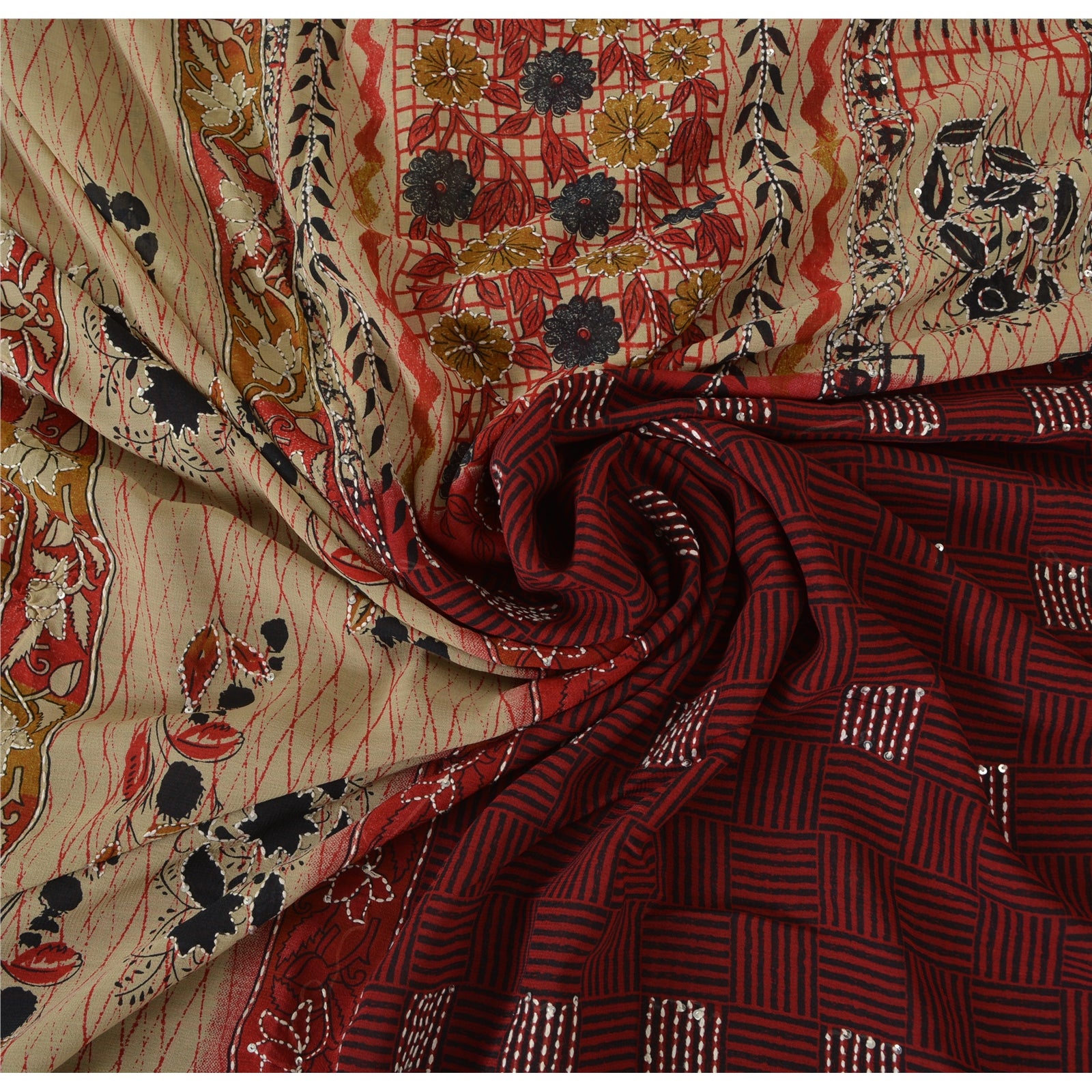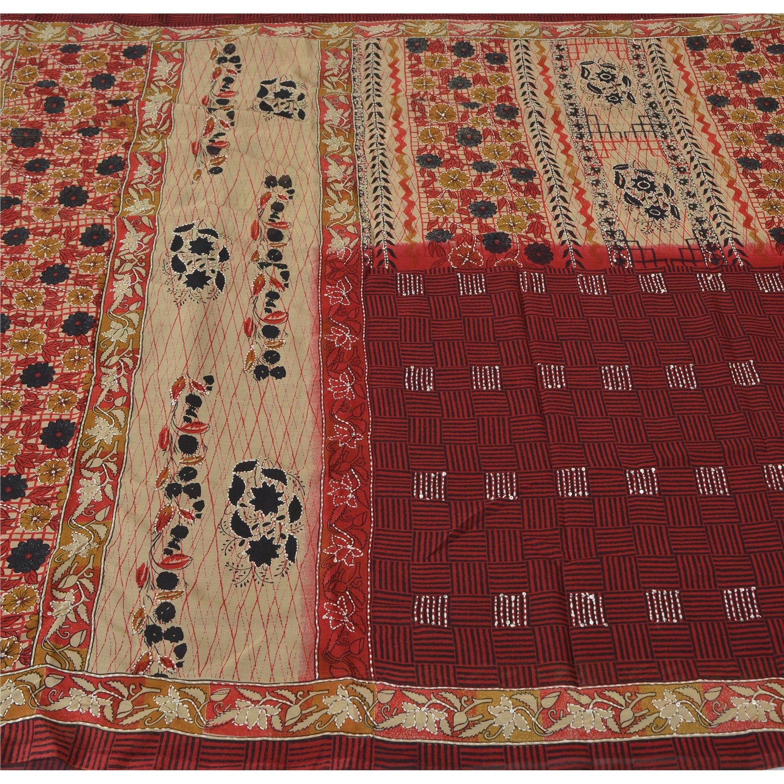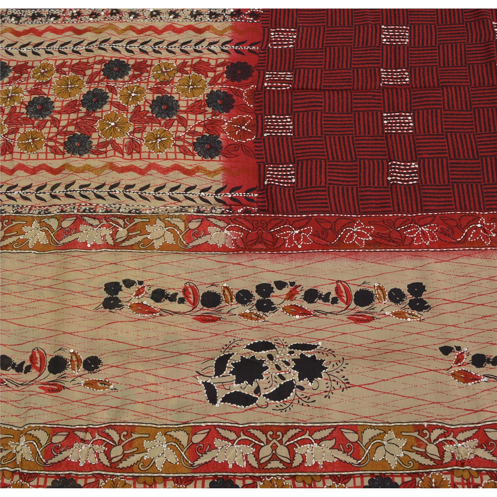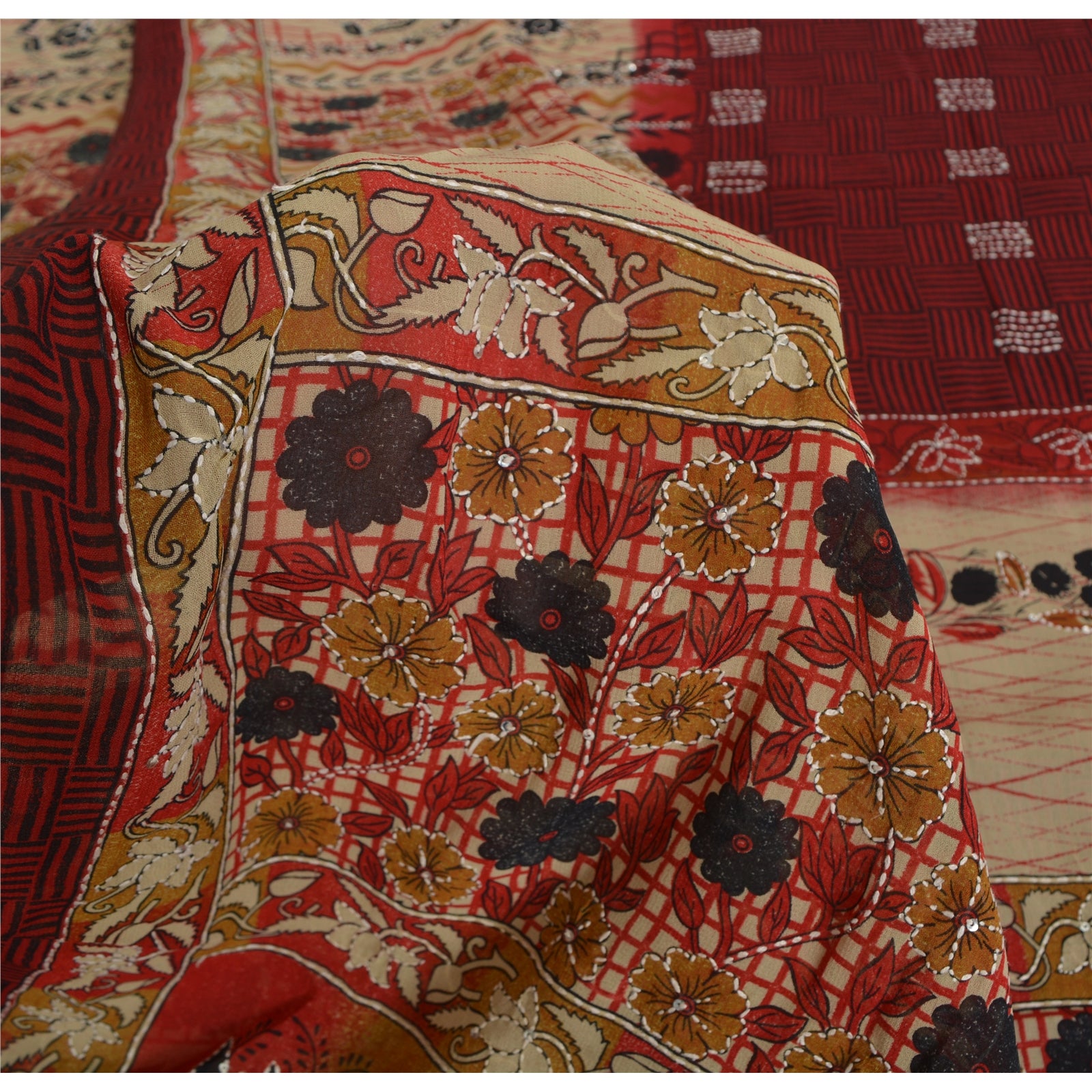 Sanskriti Vintage Sarees Art Silk Hand Beaded Kantha Premium Sari Craft Fabric