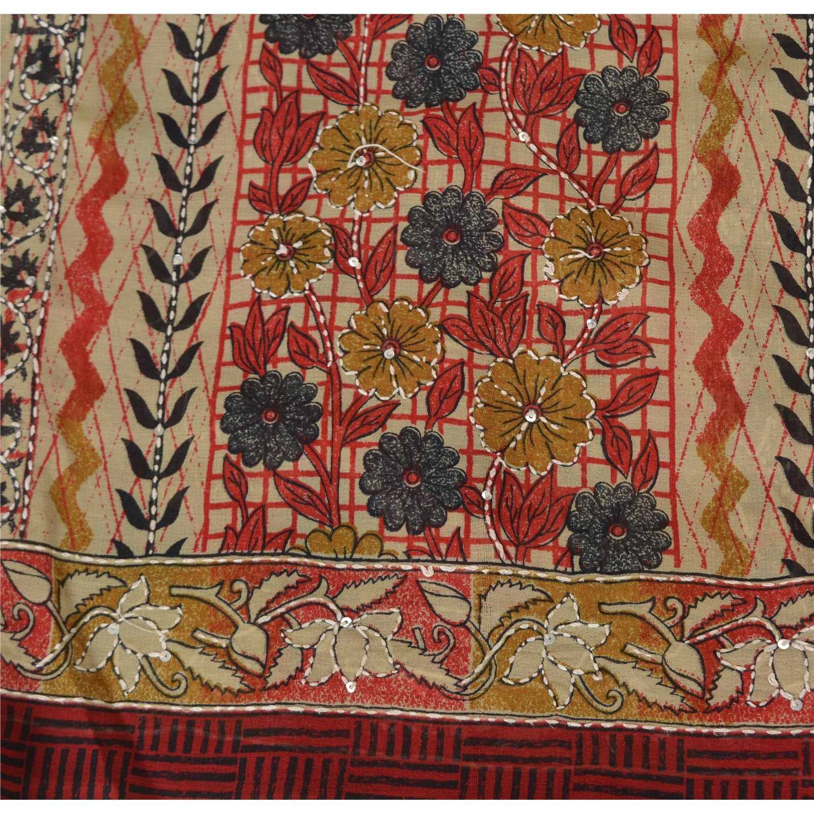 THE ITEM COLOR OR SHADE MAY BE DARKER OR LIGHTER THAN THE PICTURE.' • Beautiful multi colored hand embroidered printed art silk kantha sari • Pallu & Border features floral design embellished with cream thread work & silver sequins work. • There are floral motifs with similar work in center part of sari. Shining silver sequins work with floral pattern on multi color base fabric is really enhancing the beauty of the saree. This unique vintage saree can be used for various crafting ideas even if you don't want to use it as a sari. Design a dress, use it as a throw, as window dressing, upholstery, sarongs, table linen and much more. Let your creative juices flow and use this decorated fabric in multiple fashion. Shipping note: International buyers please note: Import duties, taxes, and charges are not included in the item price or postage cost. These charges are the buyer's responsibility. Please check with your country's customs office to determine what these additional costs will be prior to bidding or buying. Buyer will pay custom duty/tax. It is calculated and charged differently by every country. As a seller I do not have any control over it. VAT or sales tax is calculated by the platform at the time of checkout. Customs charge is payable at the time of delivery.