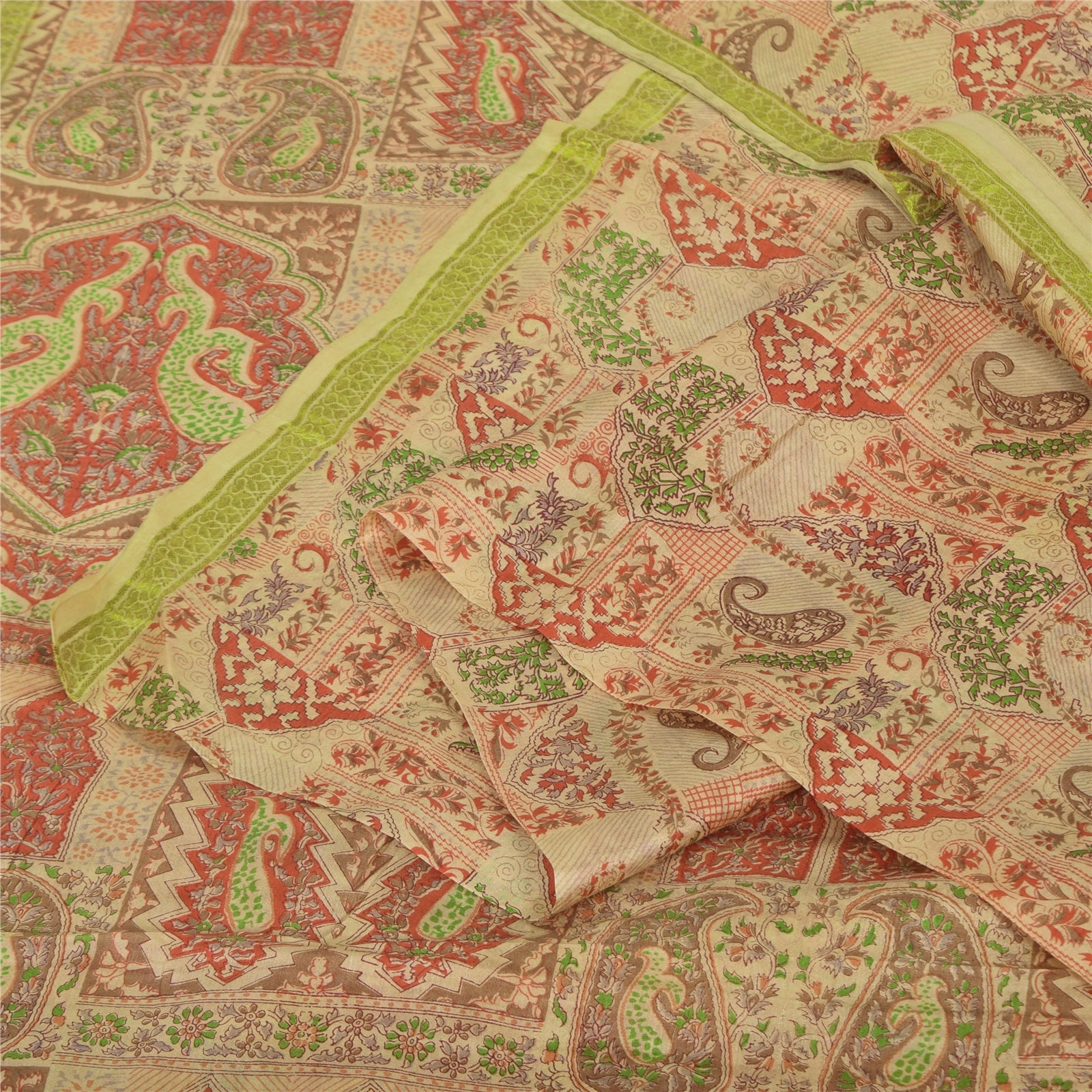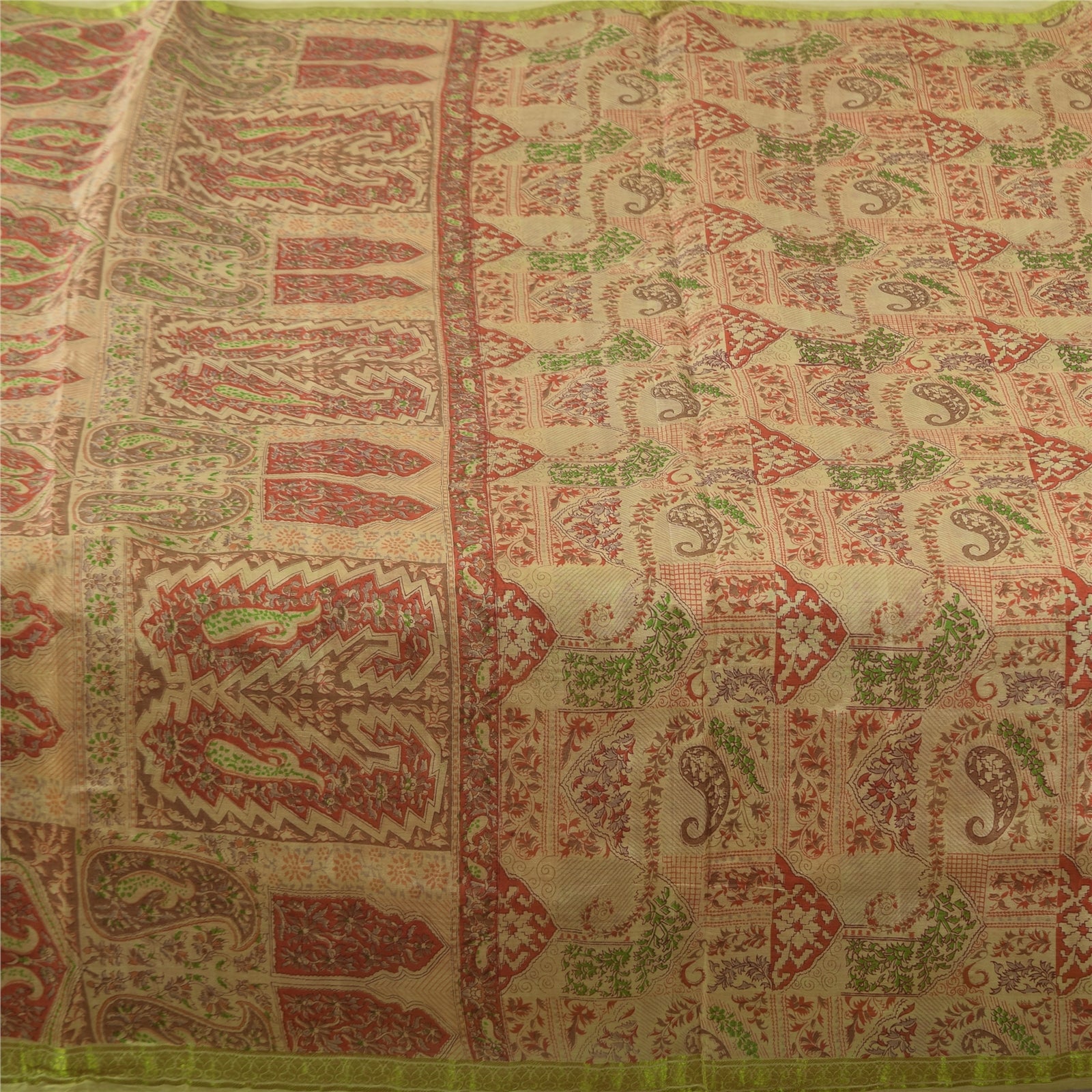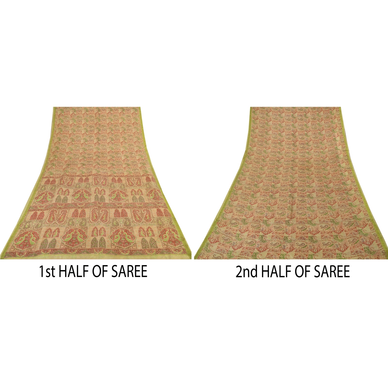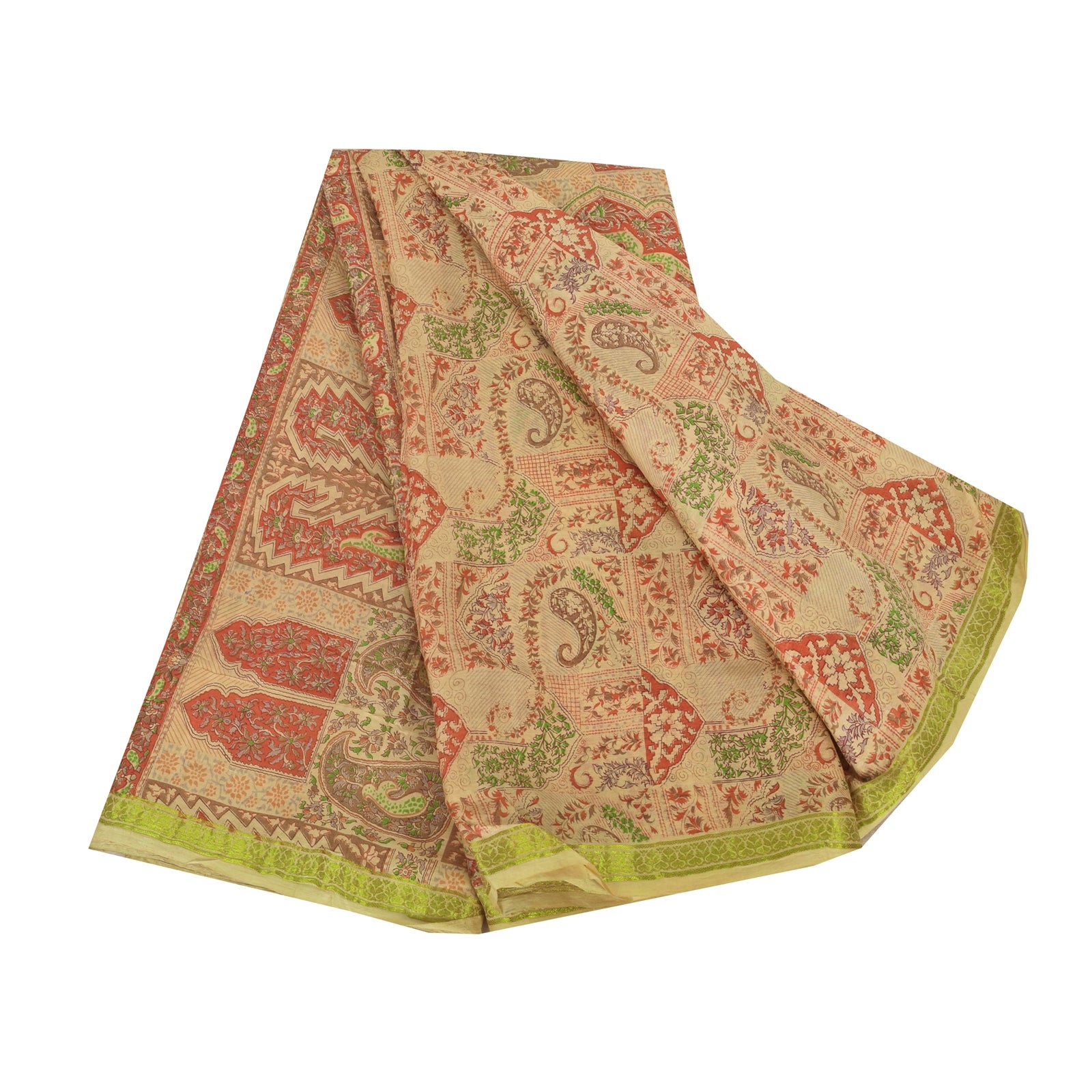 Sanskriti Vintage Sarees Beige Indisk Ren Silke Trykt Sari 6+ yard Håndværk Bæredygtigt Stoff