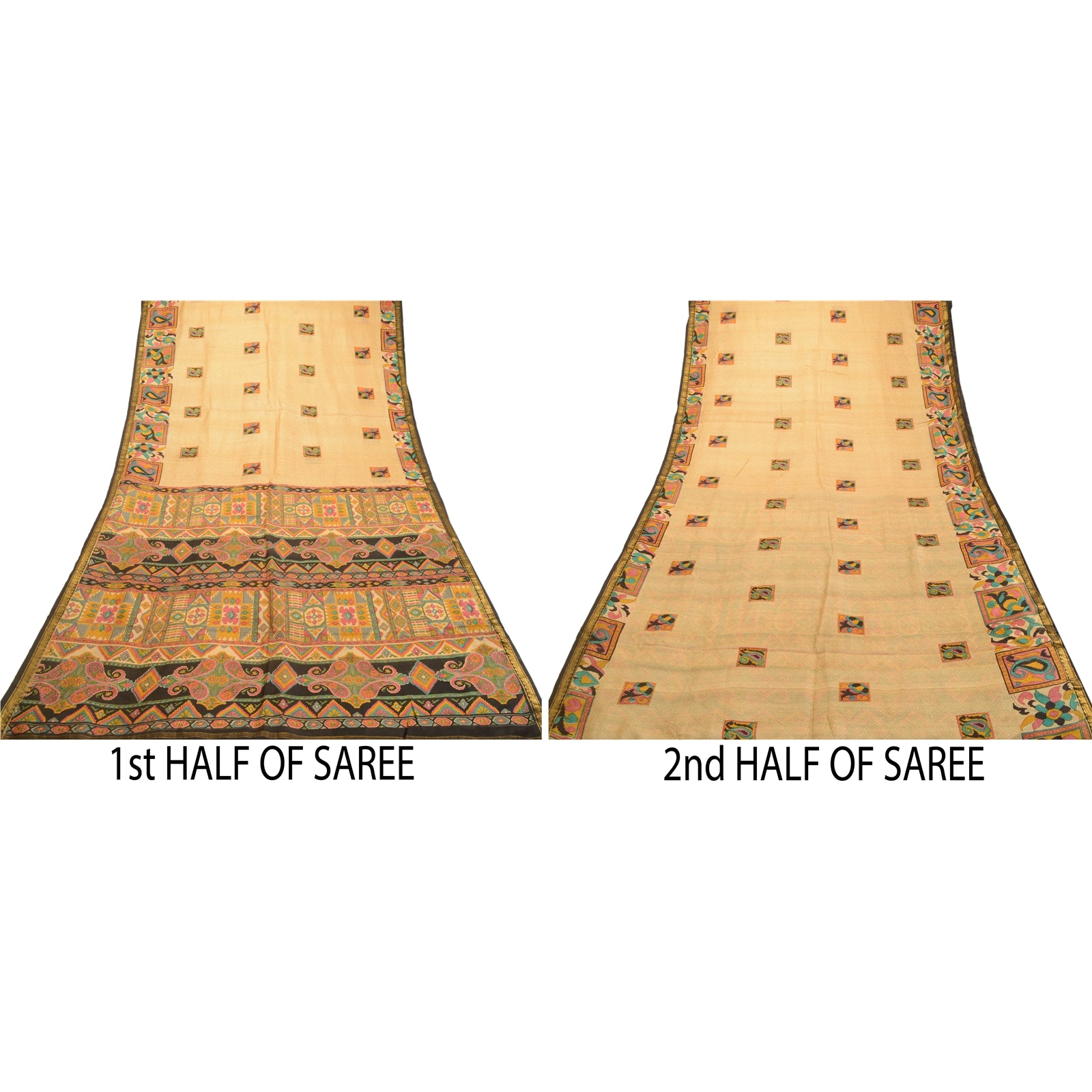VARENS FARVE ELLER NUANCE KAN VÆRE MØRKERE ELLER LYSERE END BILLEDET.' Smuk beigefarvet sari med rent silketryk. Pallu & Border har trykt blomstermønster, geometrisk design og gyldent zari-vævet arbejde. Lignende design i midten af sarien. Sarien har en mild plettet farve. Hvad er det specielle ved denne sari? Det fantastiske design fremhæver virkelig sariens skønhed. Denne unikke vintage sari kan bruges til forskellige kreative ideer, selvom du ikke ønsker at bruge den som sari. Design en kjole, brug den som vinduesbeklædning, pynt, polstring, saronger, tæppe, syning af kjoler og bordlinned og meget mere. Lad dine kreative safter flyde, og brug dette dekorerede bæredygtige stof på flere måder. Internationale købere bemærk venligst: Importafgifter, skatter og gebyrer er ikke inkluderet i varens pris eller portoomkostninger. Disse gebyrer er købers ansvar. Kontakt venligst dit lands toldkontor for at bestemme, hvad disse ekstra omkostninger vil være, før du byder eller køber. Køber betaler told/skat. Det beregnes og opkræves forskelligt fra land til land. Som sælger har jeg ingen kontrol over det. Moms eller salgsafgift beregnes af platformen ved kassen. Toldgebyr skal betales ved levering.