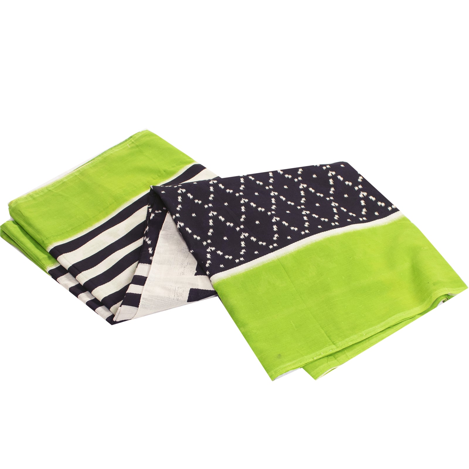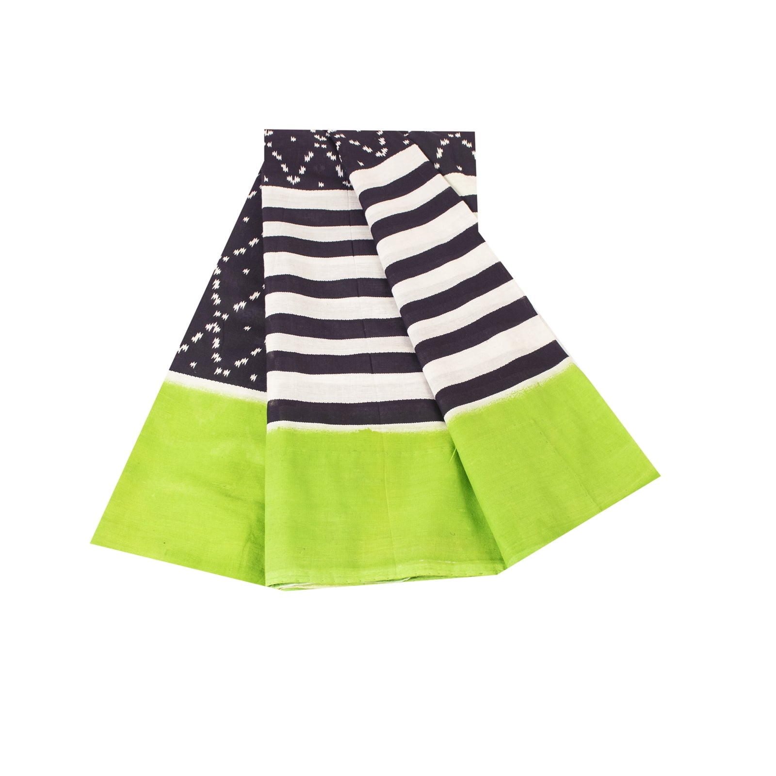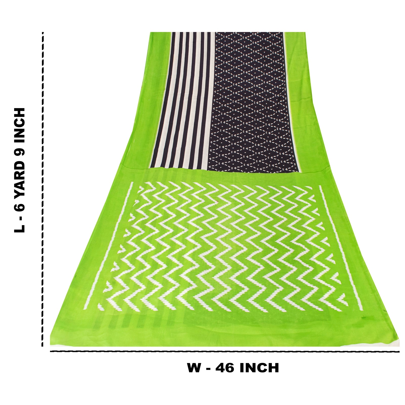 Sanskriti Vintage Sarees Black & Green Pure Cotton Print Sari 6+yd Craft Fabric