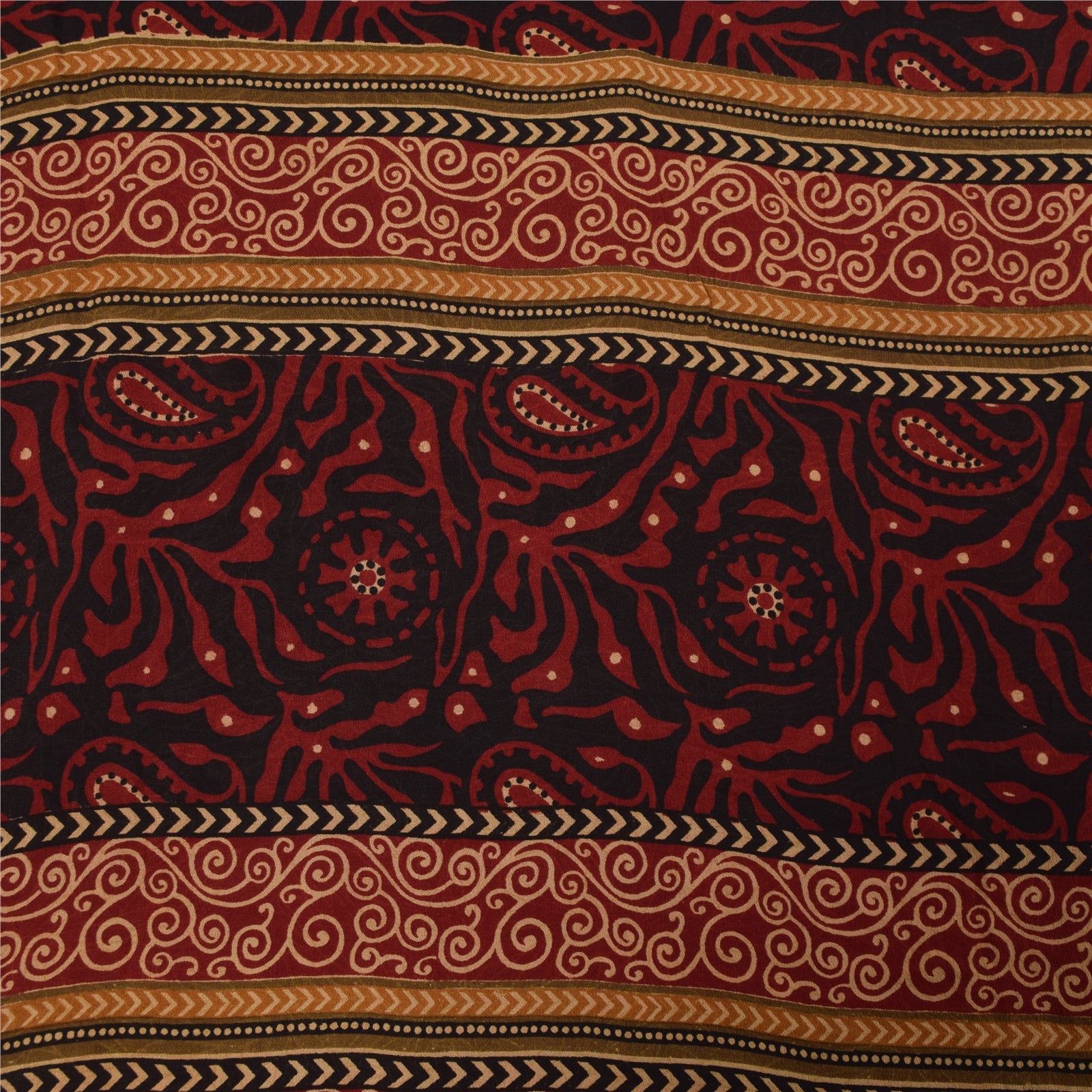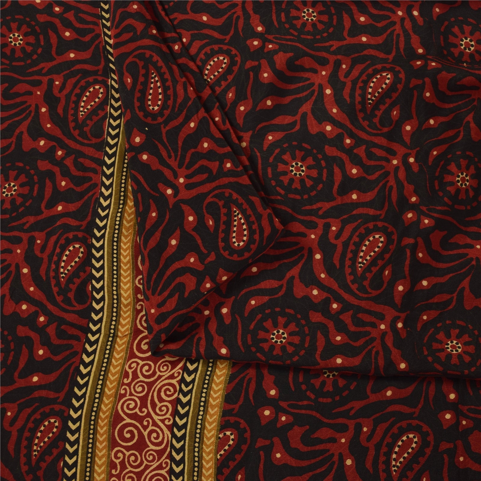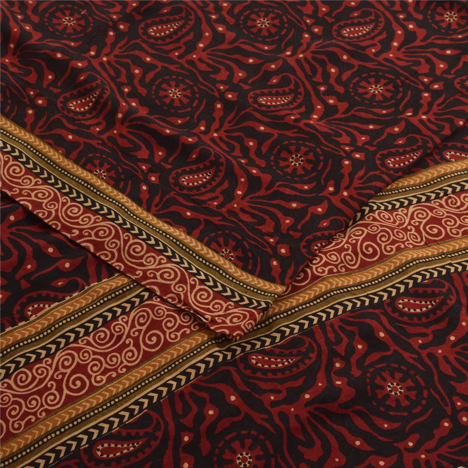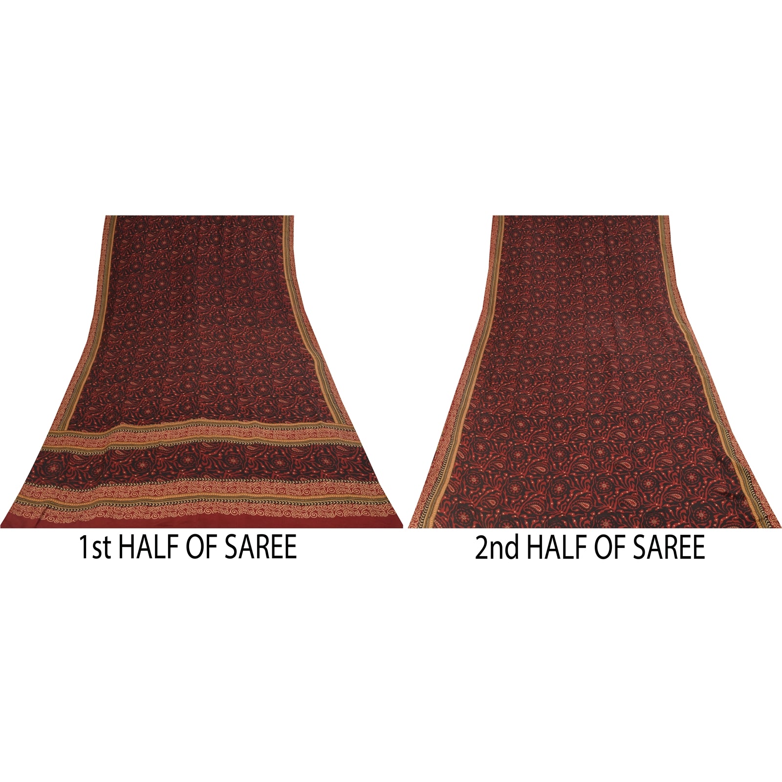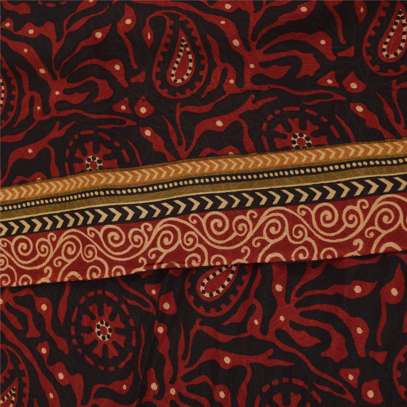 Sanskriti Vintage Sarier Sort & Orange Ren Crepe Print Sari 5+ yards Håndværksstof