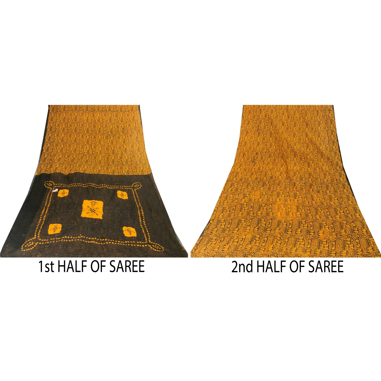 Sanskriti Vintage Sarees Black & Yellow Pure Cotton Print Sari 5+yd Craft Fabric
