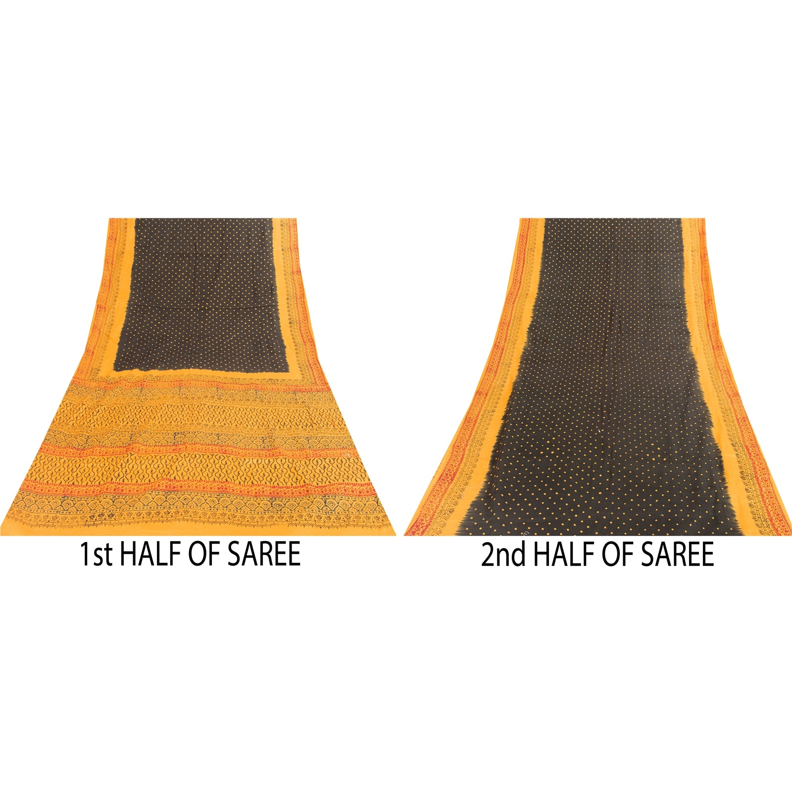 Sanskriti Vintage Sarees Black & Yellow Pure Cotton Print Sari 5+yd Craft Fabric