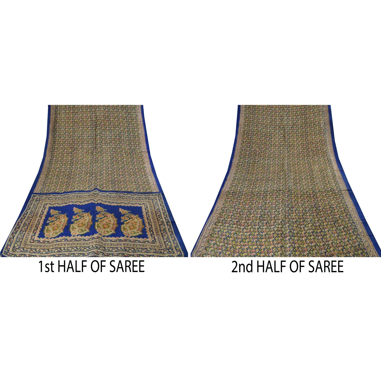 Sanskriti Vintage Sarees Blå Indisk Ren Silke Trykt Sari 5+ yard Håndværksstof