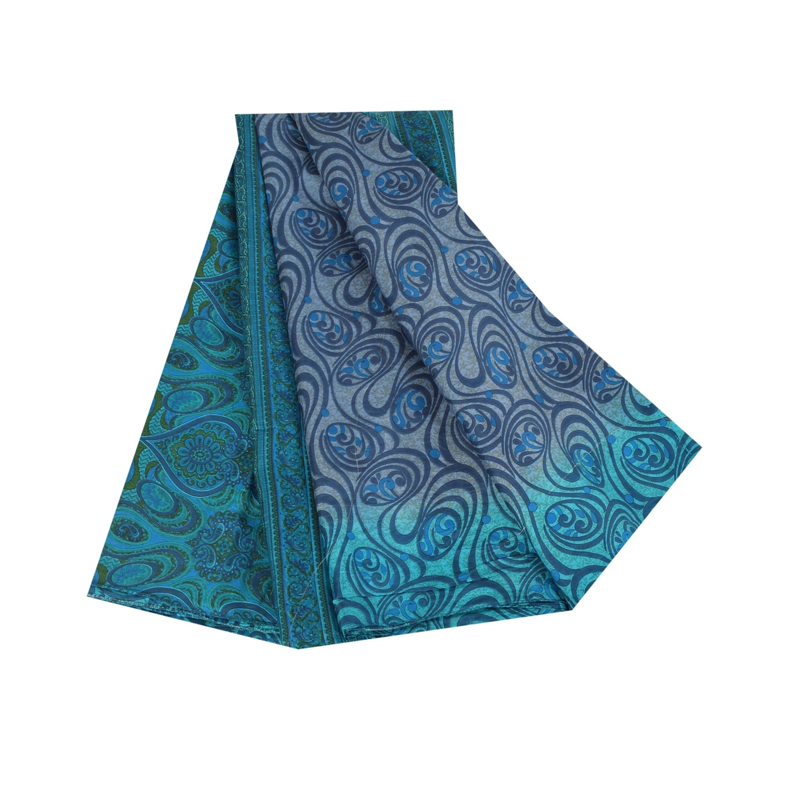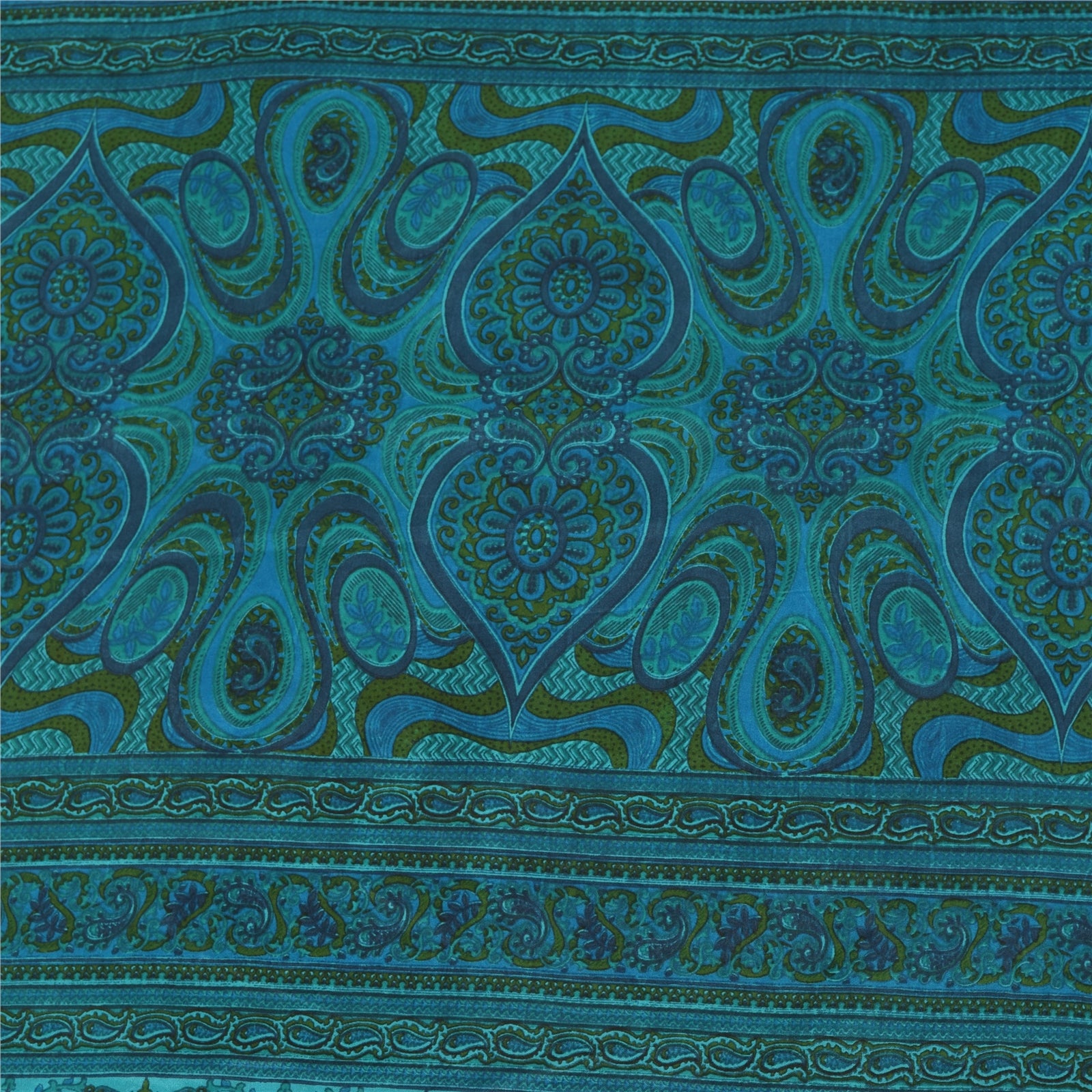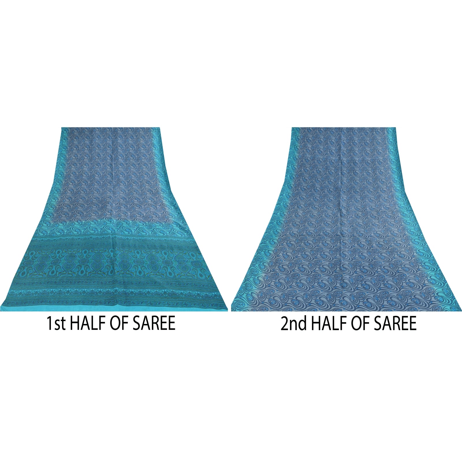 Sanskriti Vintage Sarees Blå Indisk Ren Silke Trykt Sari 5+ yard Håndværksstof