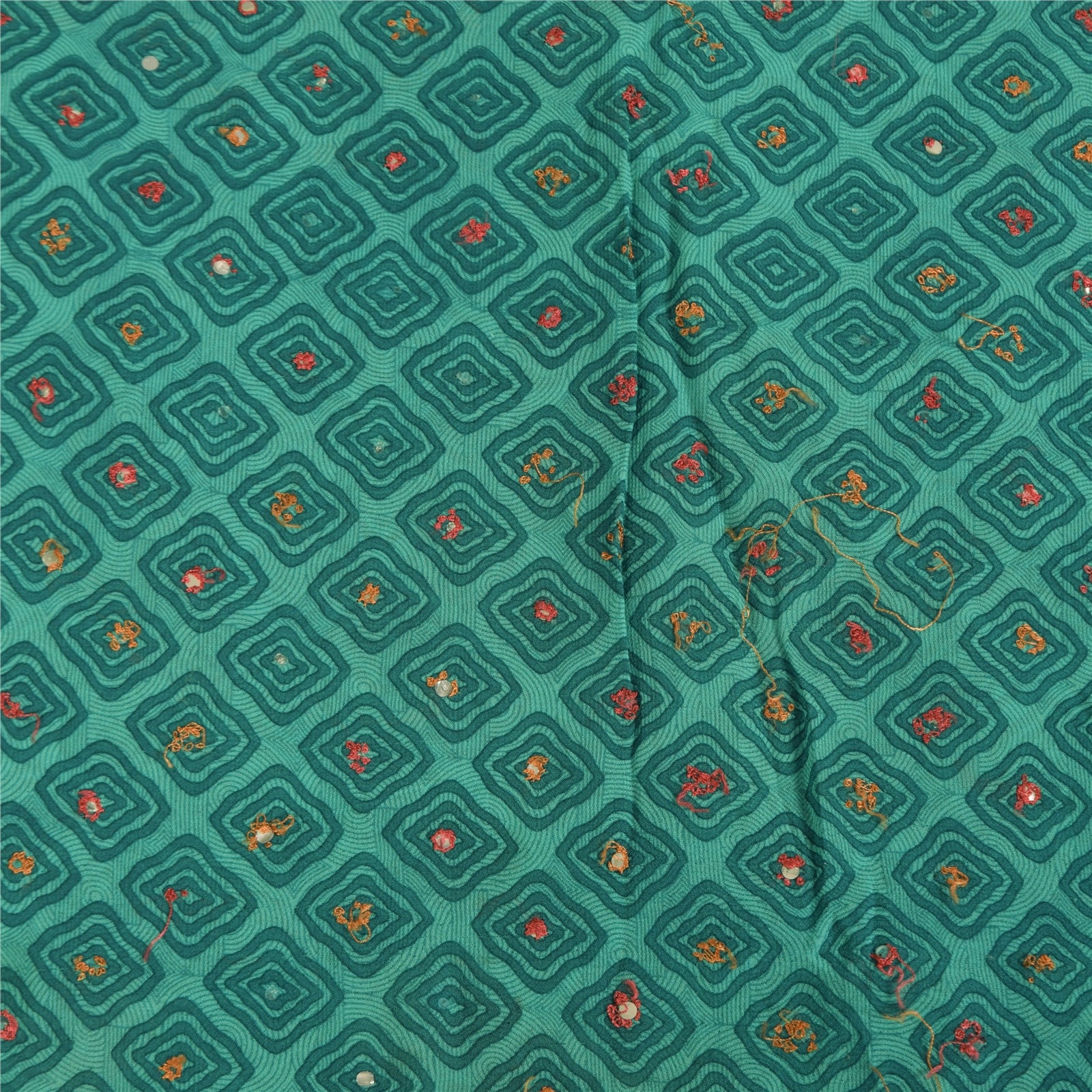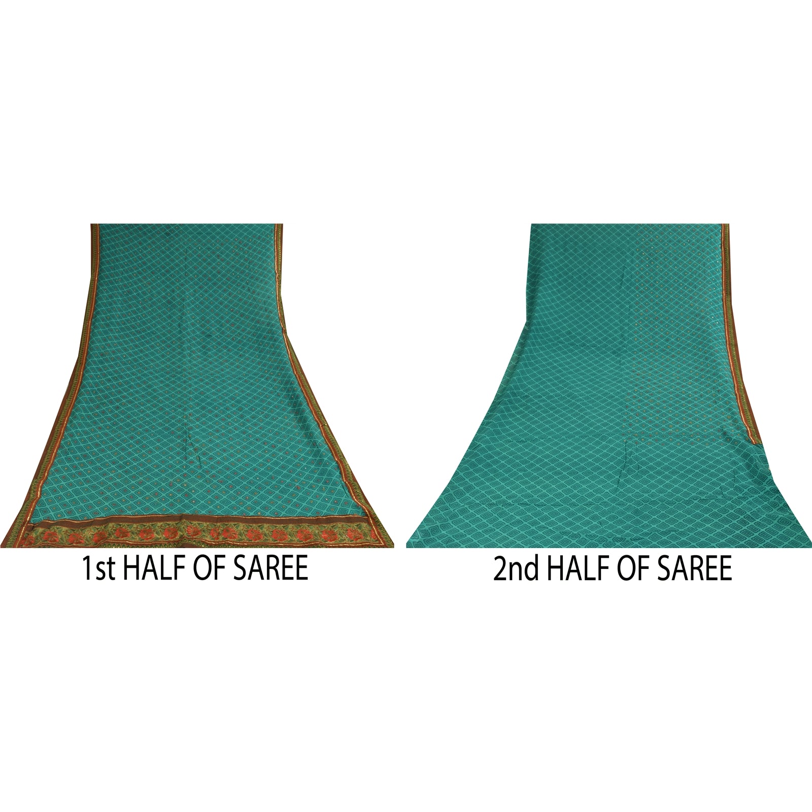 Sanskriti Vintage Sarees Blue Pure Georgette Embroidered Print Sari 5+yd Fabric