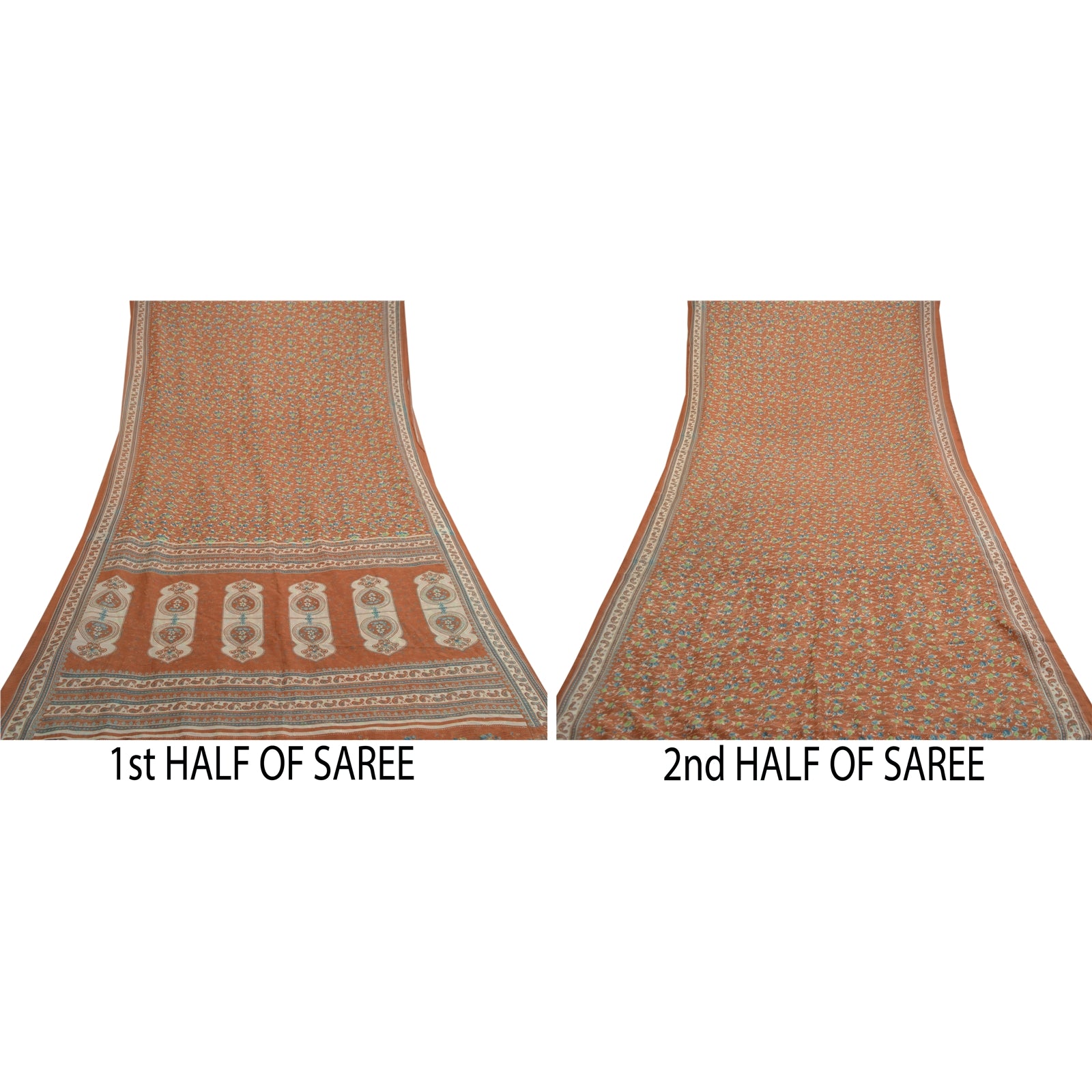 Smuk brunfarvet kota-vævet sari med kunstsilketryk (kunstsilke). Pallu & Border har et trykt blomsterdesign. Lignende design i midten af sarien. Hvad er det særlige ved denne sari? Det fantastiske design fremhæver virkelig sariens skønhed. Denne unikke vintage-sari kan bruges til forskellige kreative ideer, selvom du ikke ønsker at bruge den som sari. Design en kjole, brug den som vinduesdekoration, bordpynt, polstring, saronger, tæppe, syning af kjoler og bordlinned og meget mere. Lad dine kreative safter flyde, og brug dette dekorerede bæredygtige stof på flere måder.