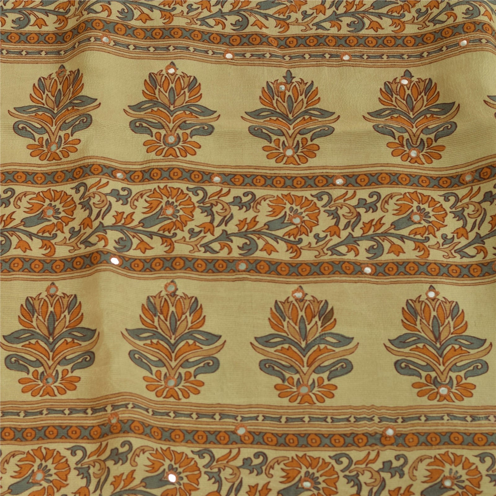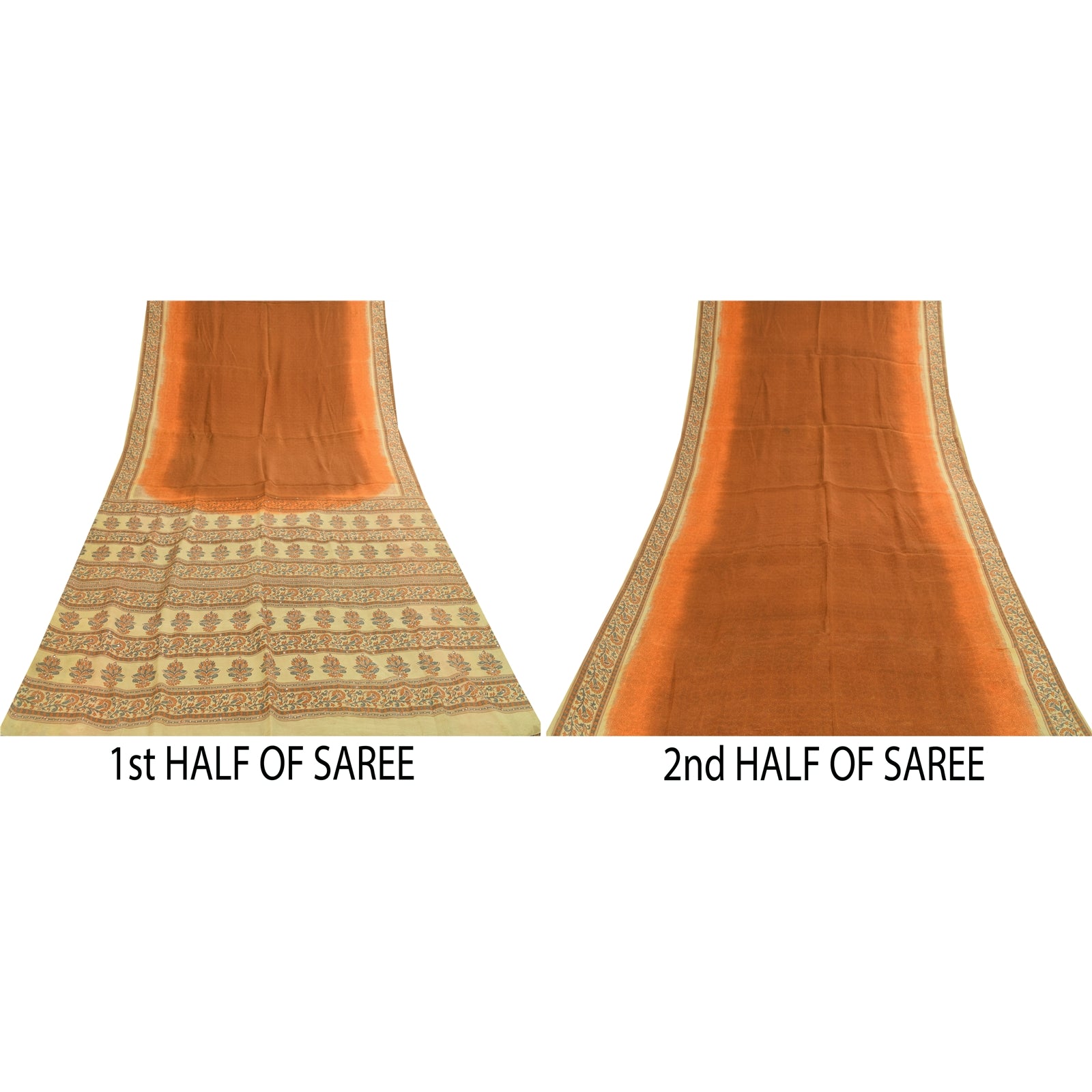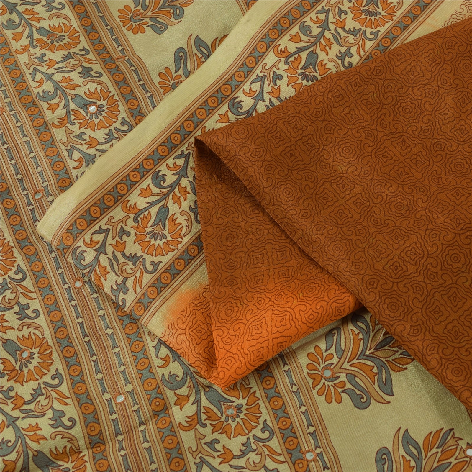 Sanskriti Vintage Sarier Brun Ren Silke Blomsterprintet Sari 5+ yard Håndværksstof