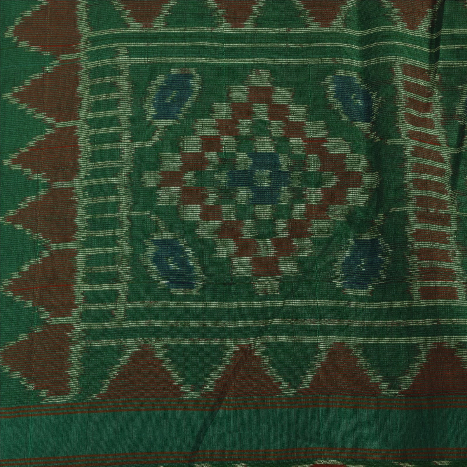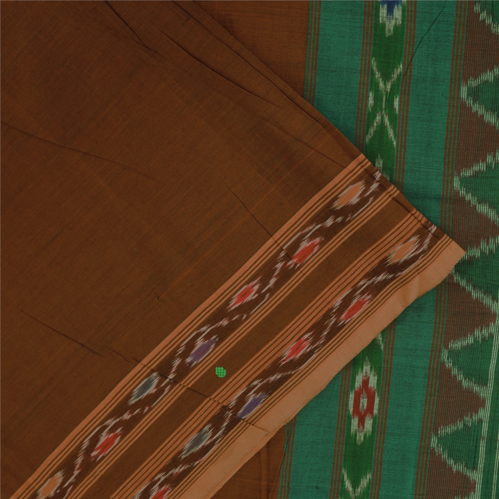Sanskriti Vintage Sarees BrownIkat Handwoven Odisha BlendCotton Sari 7+yd Fabric